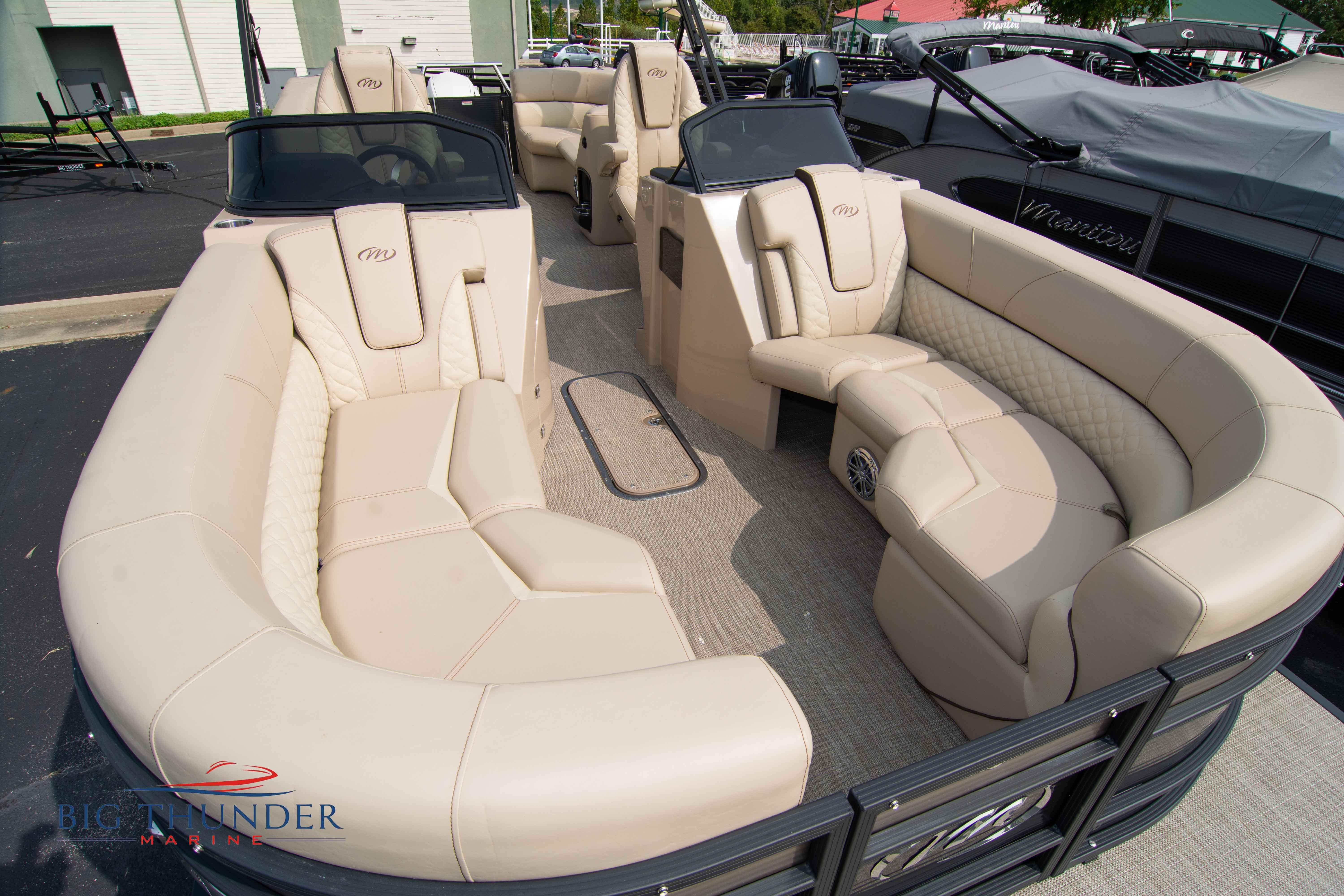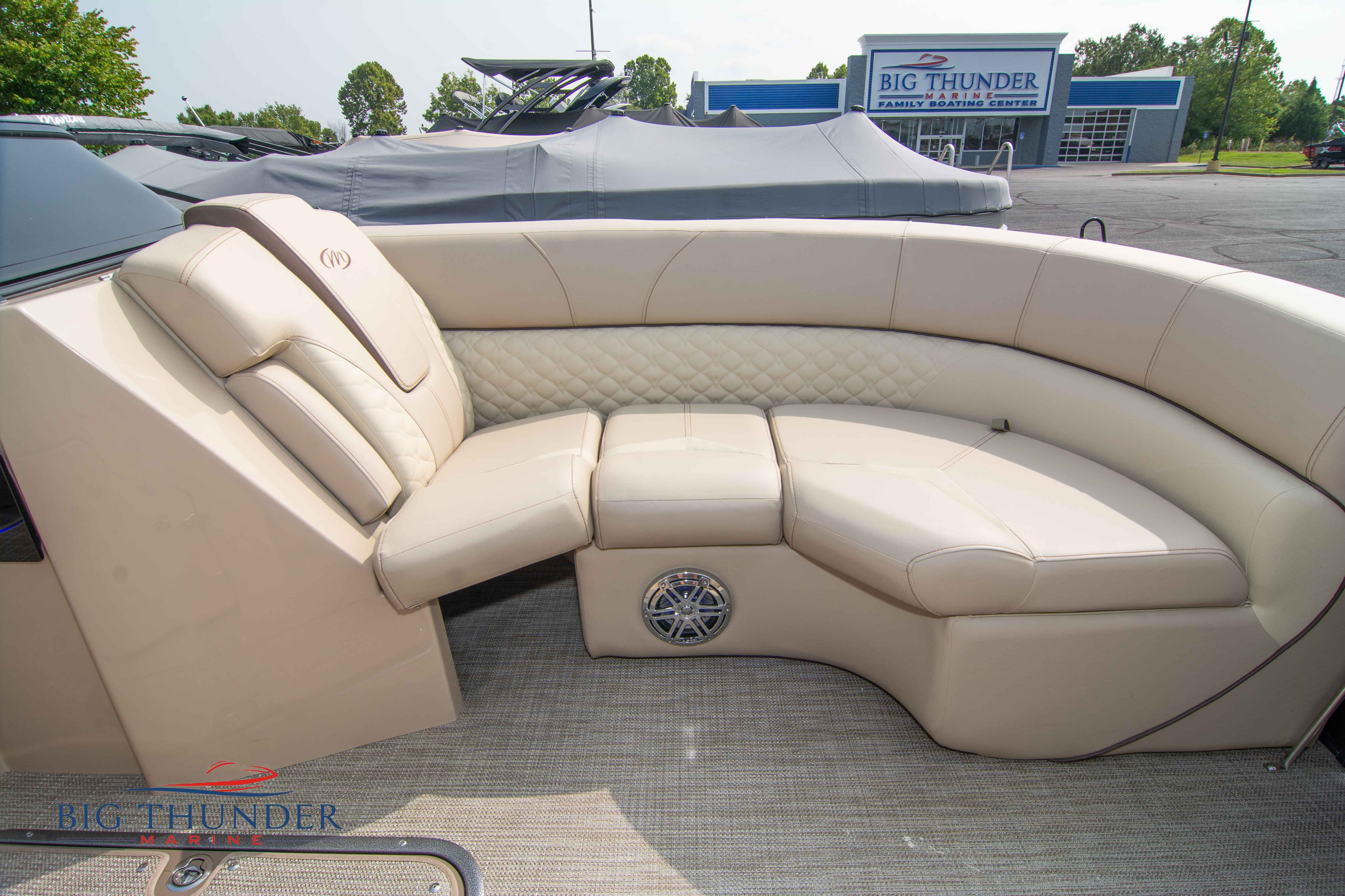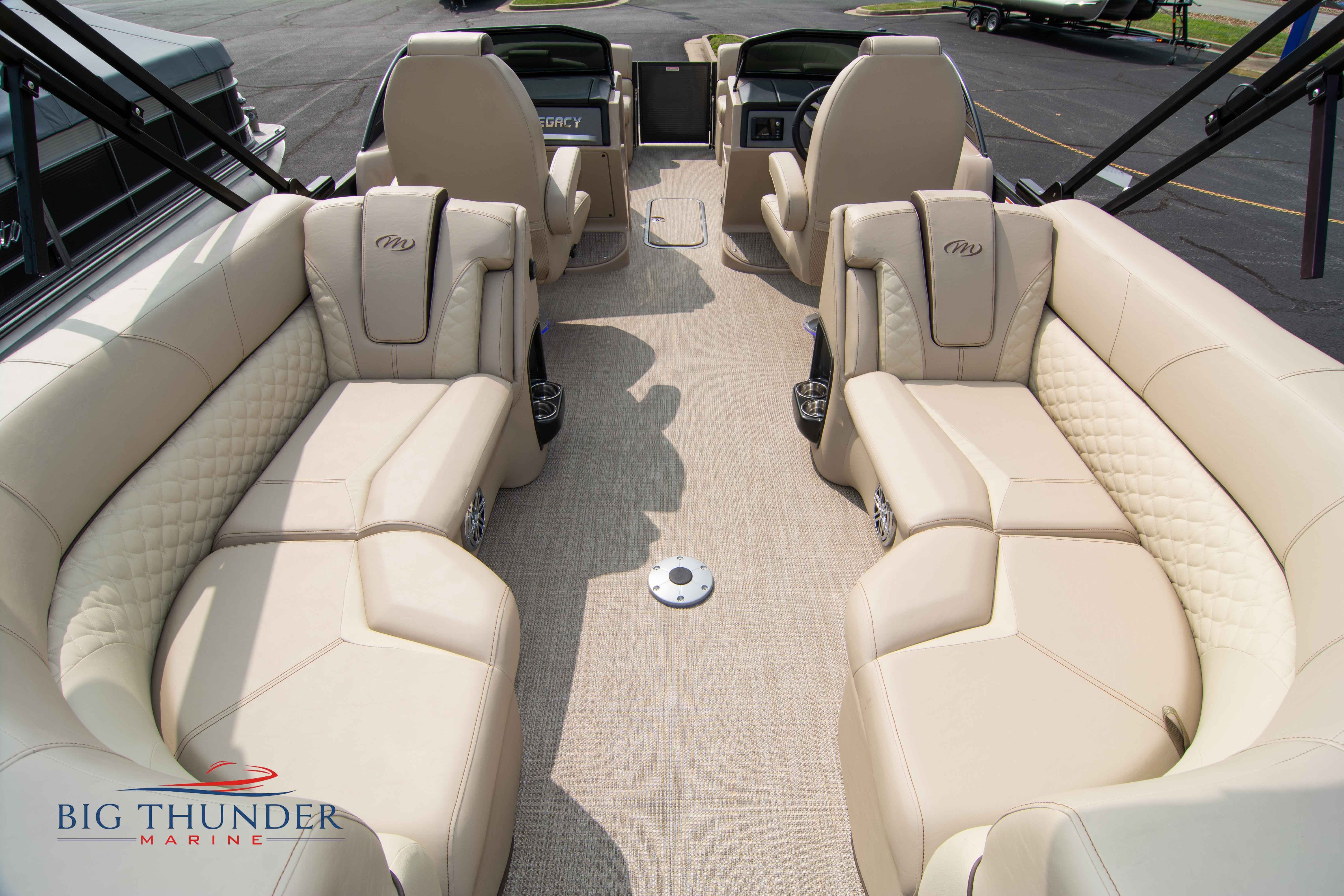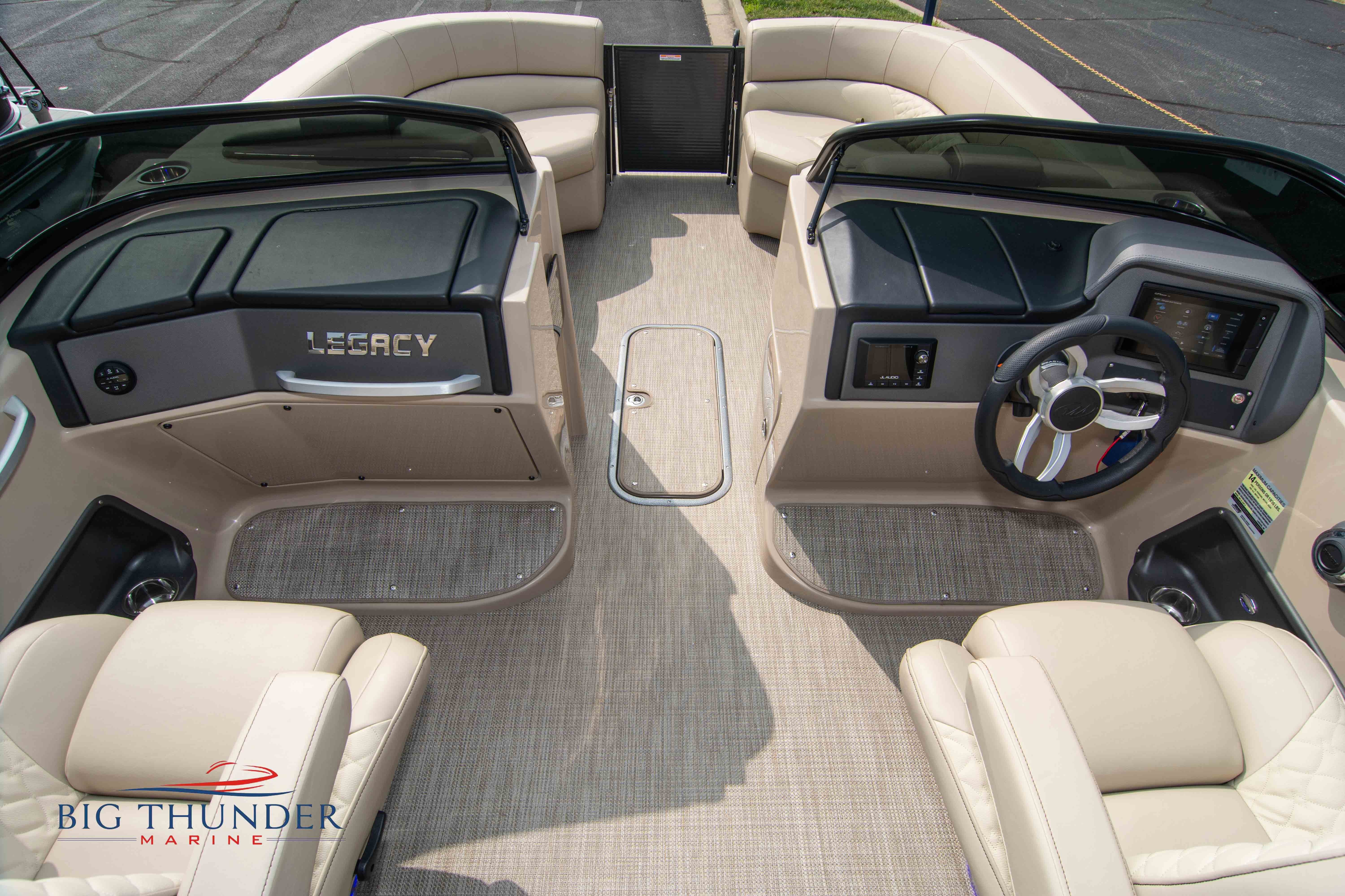 2020 Manitou 25 Legacy RFW SHP If you want the ultimate all aluminum tritoon package tricked out to perfection, this Legacy is the toon for you. Loaded with the most modern luxury features to cruise and entertain in style, with a classic pontoon profile. The RFW floorplan offers a dual windshield design with forward and rear lounge seating. Some of the many great features on this model include: