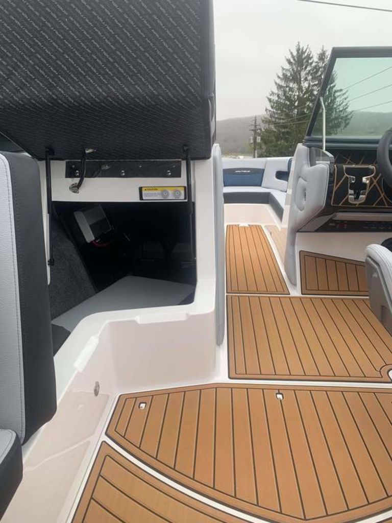 WRAP-AROUND LOUNGESpending time in the boat is a social affair and the well-appointed lounge on the 230 was designed with that in mind. The open layout allows for friends and family to easily interact when the boat is at the dock, idling down the lake or while underway.