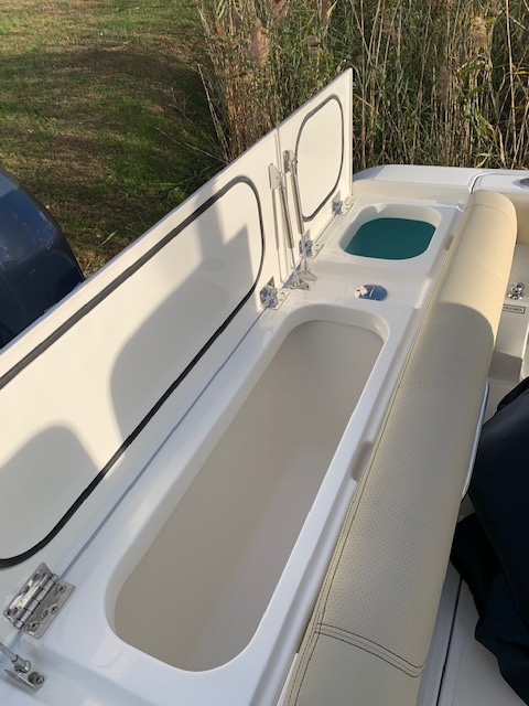 All molded hatches throughout the boat are finished inside and out. Interior highlights include bow storage port and starboard, an optional thru-hull windlass system in the bow, forward opening head access and a custom surfboard styled, vacuum-infused hardtop.