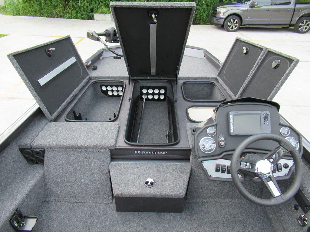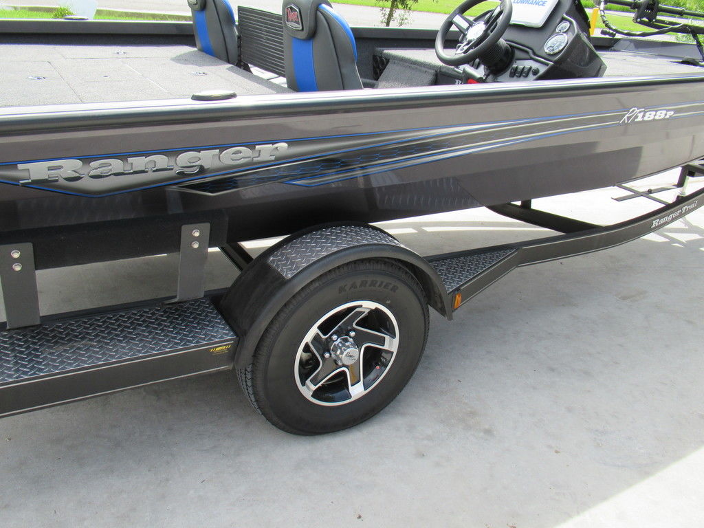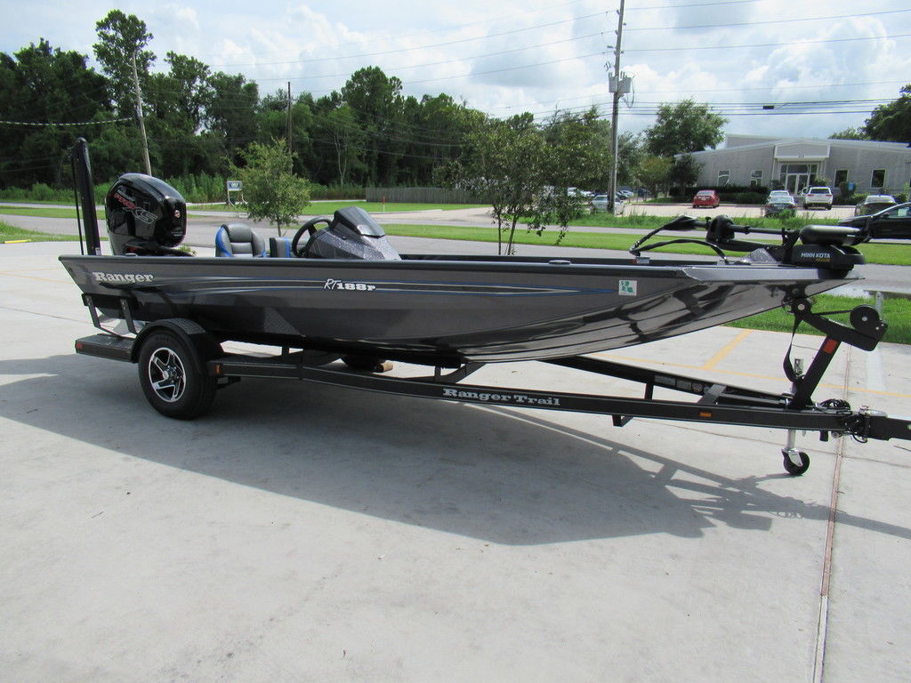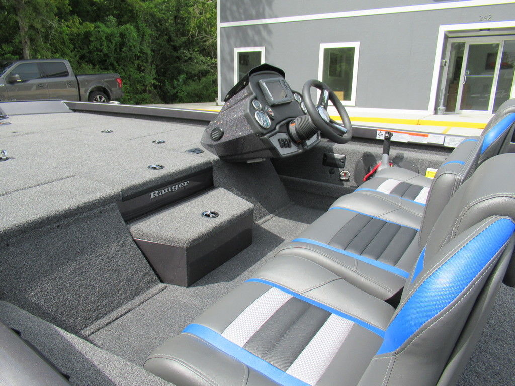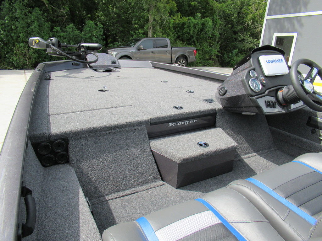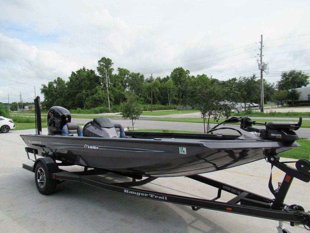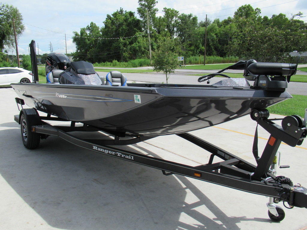 For 2020, we've taken one of the best-selling and best-performing aluminum bass rigs and added even more tournament-ready capability. An all-new pad-bottom hull delivers greater performance and handling in conjunction with an offset transom that accepts dual Power-Poles with a jackplate. Plus, an all-new keel design delivers greater strength and rigidity than ever. The front deck is ripe with new features but retains the same extra-wide design that delivers superior stability and space for anglers and gear. Other, more narrow designs are cramped and have you stepping on rods all day. Also added to this proven platform is a new fiberglass bow panel that flush-mounts electronics up to 9" front and center, which lies at the perfect angle for easy viewing. A new port side rod box holds sticks up to 7' while the center stow carries rods up to 8' 6". An insulated cooler rides in front of the console and just aft of a lockable storage box. The underside of every lid features foam insulation. The cockpit gained twin footboards and a storage step to the front deck, while the gas tank has been moved under the seats, freeing up more space in the bilge for pumps, props and batteries. Storage boxes in the rear deck have been enlarged to carry more gear than ever. Finally, the Ranger Trail™ trailer gained diamond plate panels for rugged good looks and extra traction. The all-new RT188p is nothing short of Next-Generation Domination.
