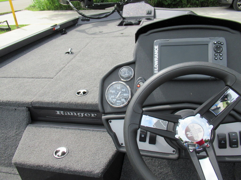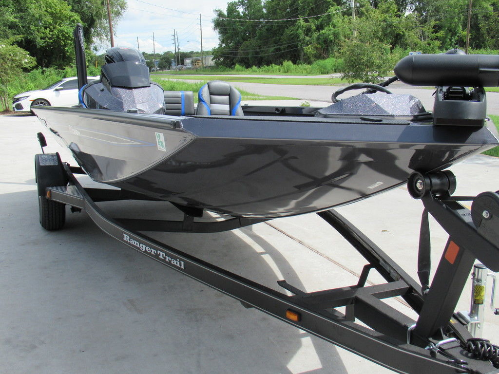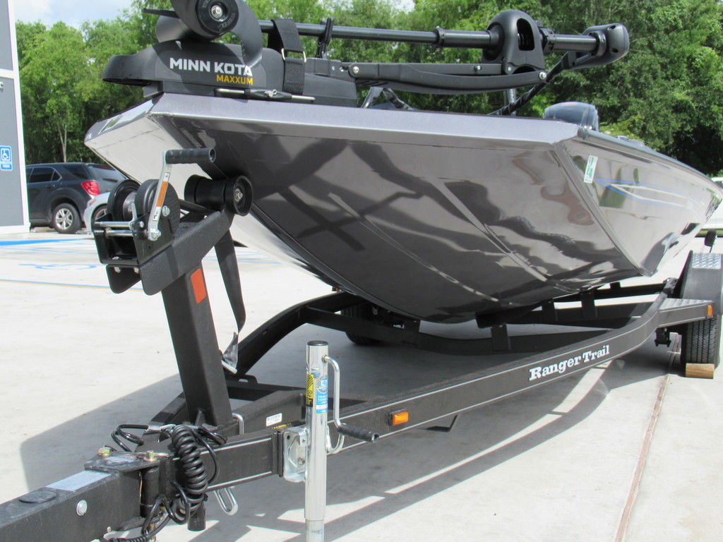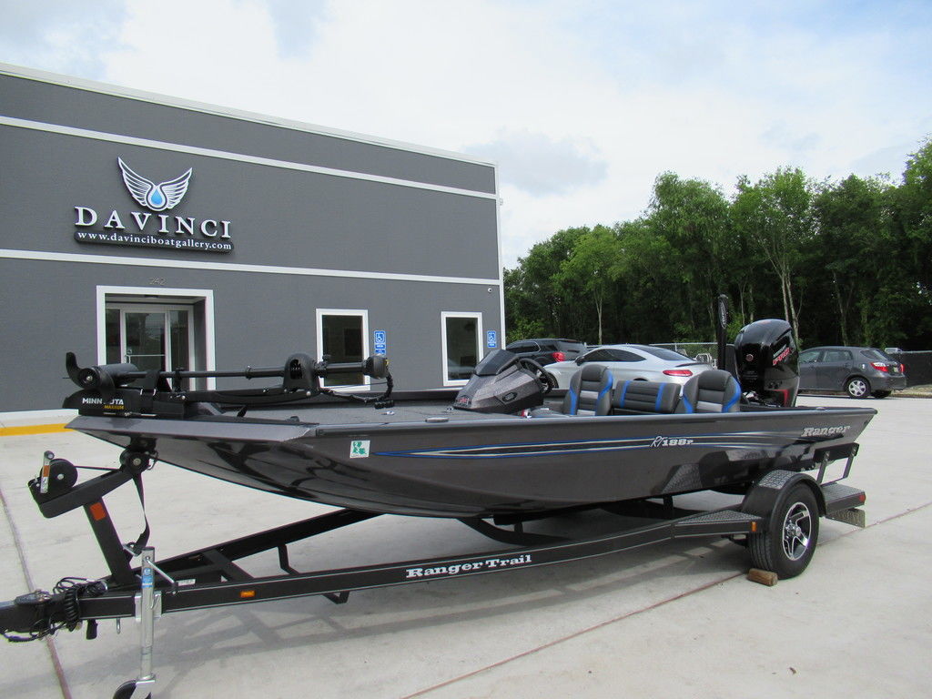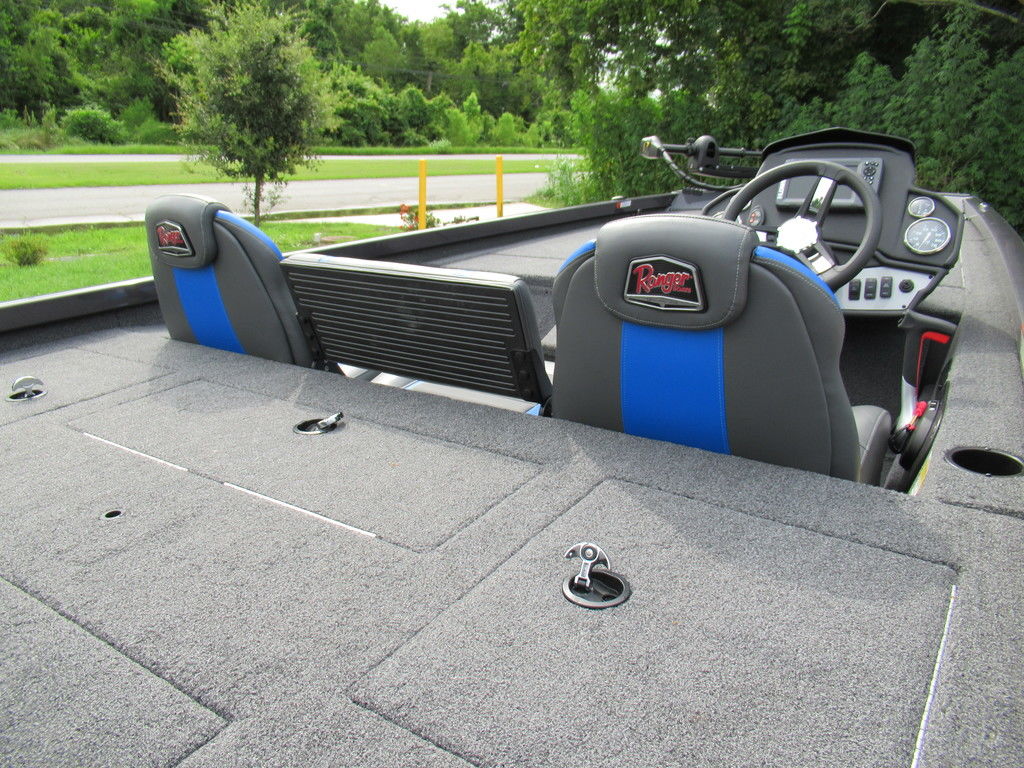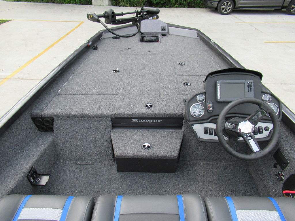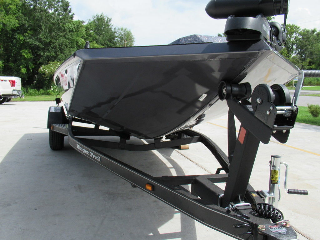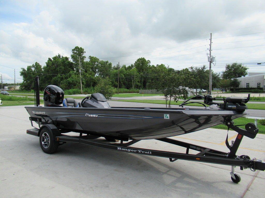 For 2020, we've taken one of the best-selling and best-performing aluminum bass rigs and added even more tournament-ready capability. An all-new pad-bottom hull delivers greater performance and handling in conjunction with an offset transom that accepts dual Power-Poles with a jackplate. Plus, an all-new keel design delivers greater strength and rigidity than ever. The front deck is ripe with new features but retains the same extra-wide design that delivers superior stability and space for anglers and gear. Other, more narrow designs are cramped and have you stepping on rods all day. Also added to this proven platform is a new fiberglass bow panel that flush-mounts electronics up to 9" front and center, which lies at the perfect angle for easy viewing. A new port side rod box holds sticks up to 7' while the center stow carries rods up to 8' 6". An insulated cooler rides in front of the console and just aft of a lockable storage box. The underside of every lid features foam insulation. The cockpit gained twin footboards and a storage step to the front deck, while the gas tank has been moved under the seats, freeing up more space in the bilge for pumps, props and batteries. Storage boxes in the rear deck have been enlarged to carry more gear than ever. Finally, the Ranger Trail™ trailer gained diamond plate panels for rugged good looks and extra traction. The all-new RT188p is nothing short of Next-Generation Domination.