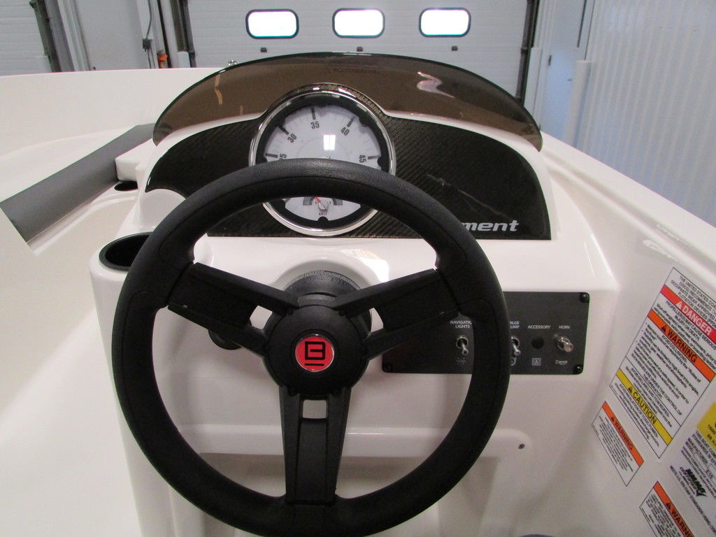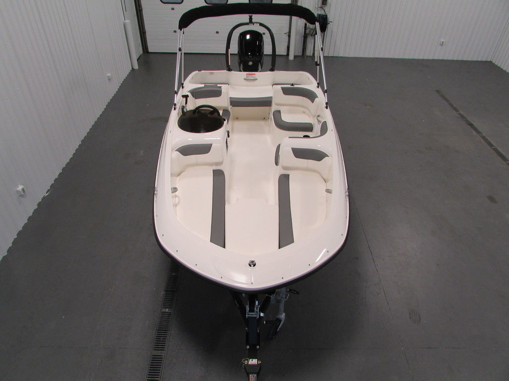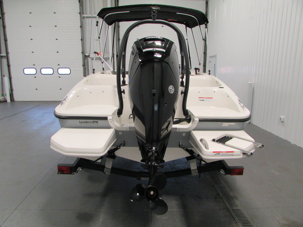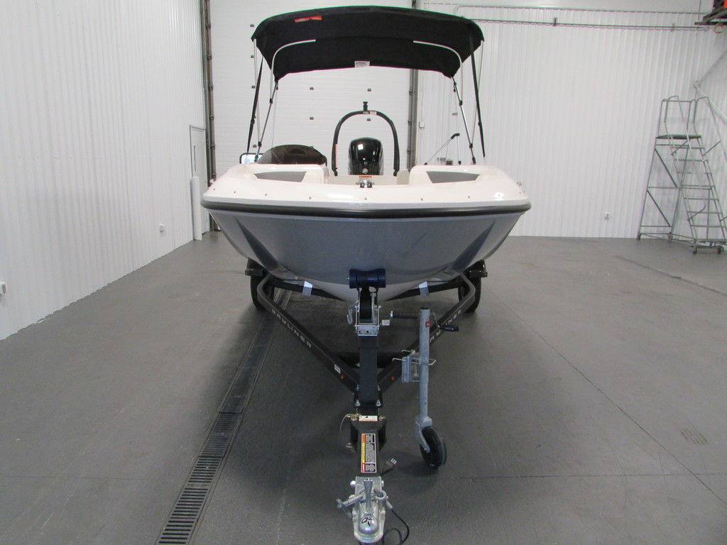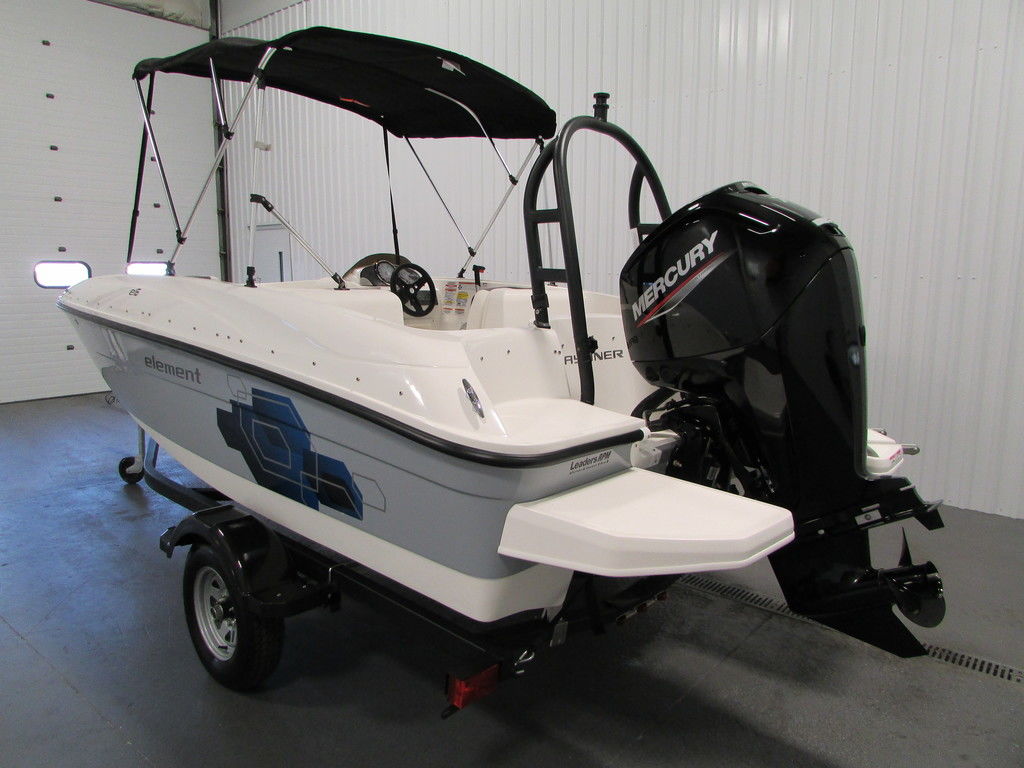 2021 BAYLINER ELEMENT E16 DECKBOAT! A 75 hp Mercury 4-stroke EFI outboard w/power trim powers this affordable fiberglass deckboat. A limited lifetime hull warranty and a 3-year factory engine warranty are included. Optional equipment includes: factory installed snap-on mooring cover, Jensen AM/FM bluetooth stereo w/AUX and USB inputs, removable bimini top w/storage boot, sports ski/tow arch, auto bilge pump, and graphite interior. Features include: starboard side helm w/removable windscreen, Faria 7” dual purpose gauge w/speedometer and voltmeter, bilge pump, electric horn, navigation/anchor lights, under seat storage, U-shaped bow seating, opposing port side seating, stern port/starboard seats, driver’s seat w/under storage, stern filler cushion for sun pad, extended driver backrest pad, passenger safety handles, beverage holders, extended fiberglass swim platforms w/3-step telescoping boarding ladder, fiberglass non-slip floor, (4) mooring cleats, fire extinguisher, marine cranking battery, 12-gallon fuel tank, and 6 person carrying capacity. Also included is a Karavan bunk trailer including; swing tongue, 13” wheels, composite fenders w/steps, bearing buddies, tie down straps, and swivel jack. Trades will be considered and delivery is available. Competitive financing rates and terms are also available. Approximate payment is $219/mo. for 120 mo. with 20% down (WAC). Leaders RPM is one of the largest marine and powersports dealers in the Midwest with over 70,000 sq ft of showroom, parts, and service under one roof located in Kalamazoo, MI. Price is plus freight, prep, sales tax/fees and is subject to change without notice. All rebates to dealer. Contact Us with questions or to request more information.