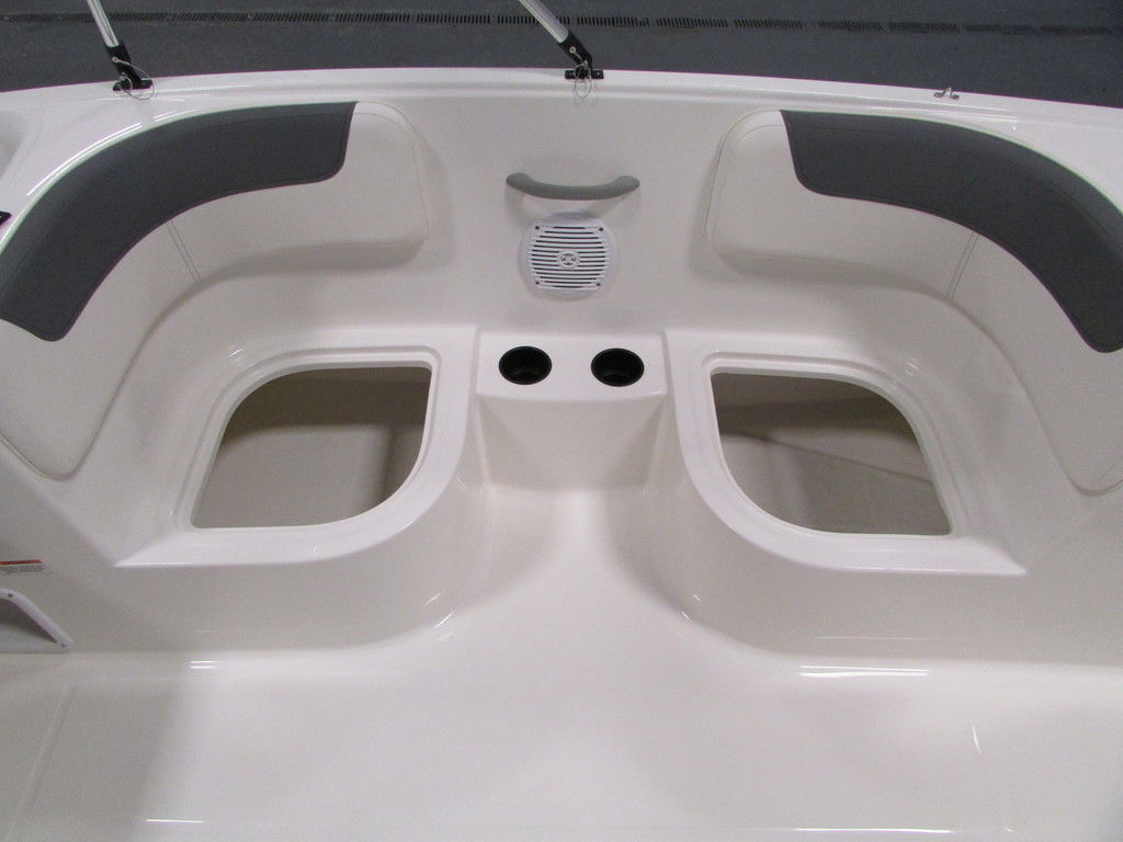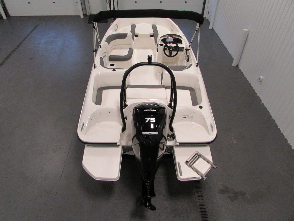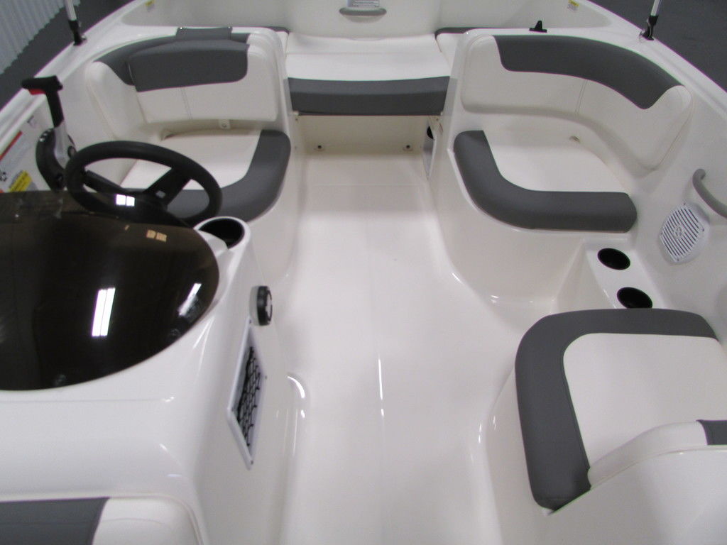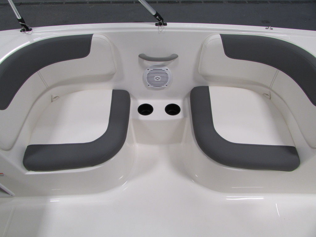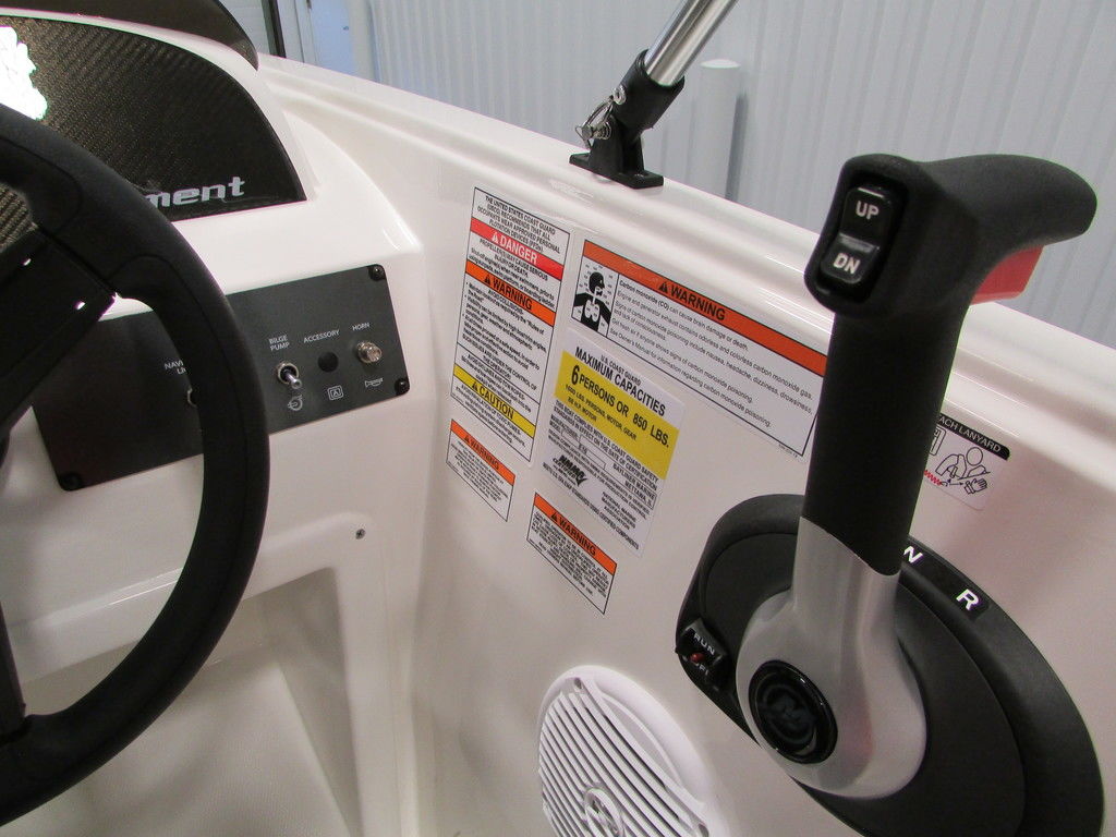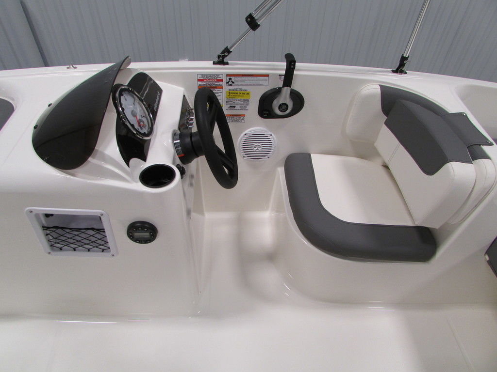 2021 BAYLINER ELEMENT E16 DECKBOAT! A 75 hp Mercury 4-stroke EFI outboard w/power trim powers this affordable fiberglass deckboat. A limited lifetime hull warranty and a 3-year factory engine warranty are included. Optional equipment includes: factory installed snap-on mooring cover, Jensen AM/FM bluetooth stereo w/AUX and USB inputs, removable bimini top w/storage boot, sports ski/tow arch, auto bilge pump, and graphite interior. Features include: starboard side helm w/removable windscreen, Faria 7” dual purpose gauge w/speedometer and voltmeter, bilge pump, electric horn, navigation/anchor lights, under seat storage, U-shaped bow seating, opposing port side seating, stern port/starboard seats, driver’s seat w/under storage, stern filler cushion for sun pad, extended driver backrest pad, passenger safety handles, beverage holders, extended fiberglass swim platforms w/3-step telescoping boarding ladder, fiberglass non-slip floor, (4) mooring cleats, fire extinguisher, marine cranking battery, 12-gallon fuel tank, and 6 person carrying capacity. Also included is a Karavan bunk trailer including; swing tongue, 13” wheels, composite fenders w/steps, bearing buddies, tie down straps, and swivel jack. Trades will be considered and delivery is available. Competitive financing rates and terms are also available. Approximate payment is $219/mo. for 120 mo. with 20% down (WAC). Leaders RPM is one of the largest marine and powersports dealers in the Midwest with over 70,000 sq ft of showroom, parts, and service under one roof located in Kalamazoo, MI. Price is plus freight, prep, sales tax/fees and is subject to change without notice. All rebates to dealer. Contact Us with questions or to request more information.