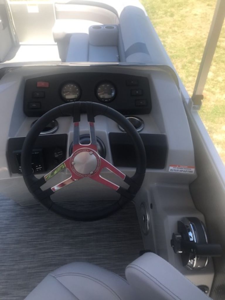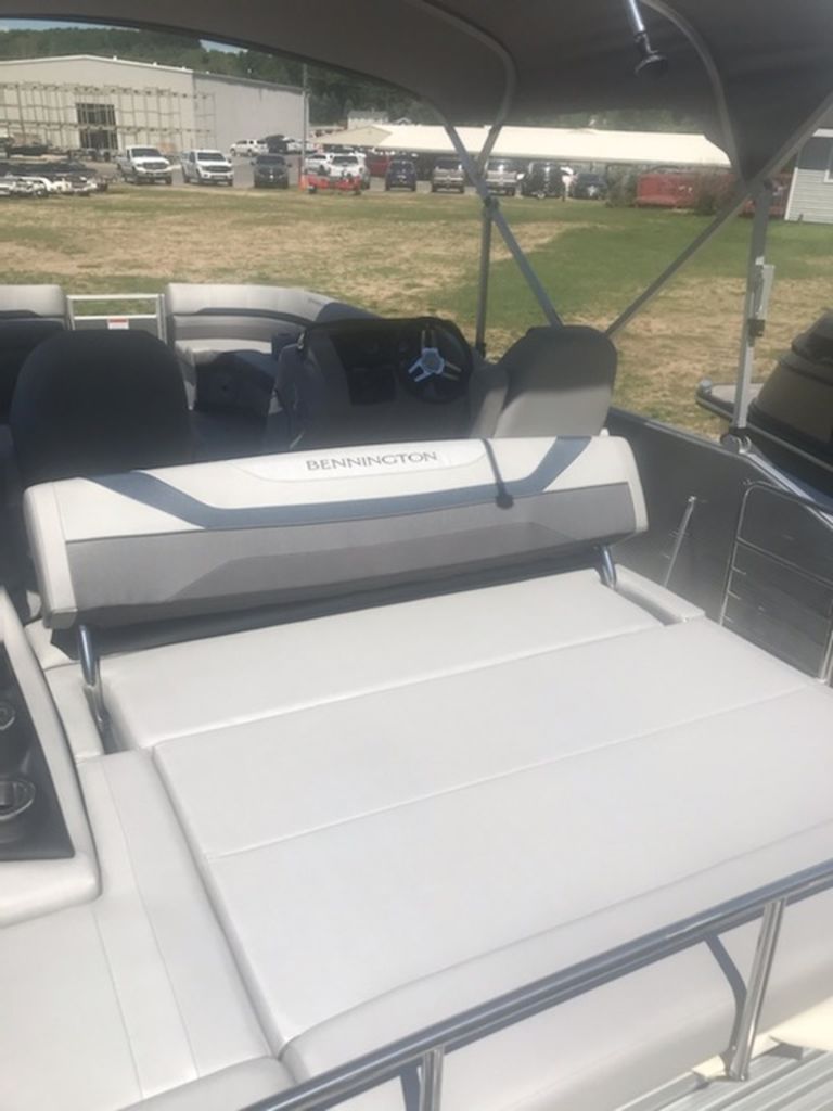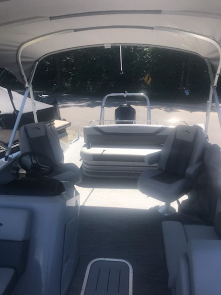 Here is a 2021 Bennington 23SSBX with a powerful 200hp Mercury motor on the back. This has the sought after swing back option for those who like to relax and lounge in the sun. Features include: Kicker speaker upgrade, portable cup holders, bow gate seat, wave tamer bow, in floor storage, pop up cleats, privacy chaise, ski tow bar, and much more. Stop by the sales office and check it out! CL59832DM2574