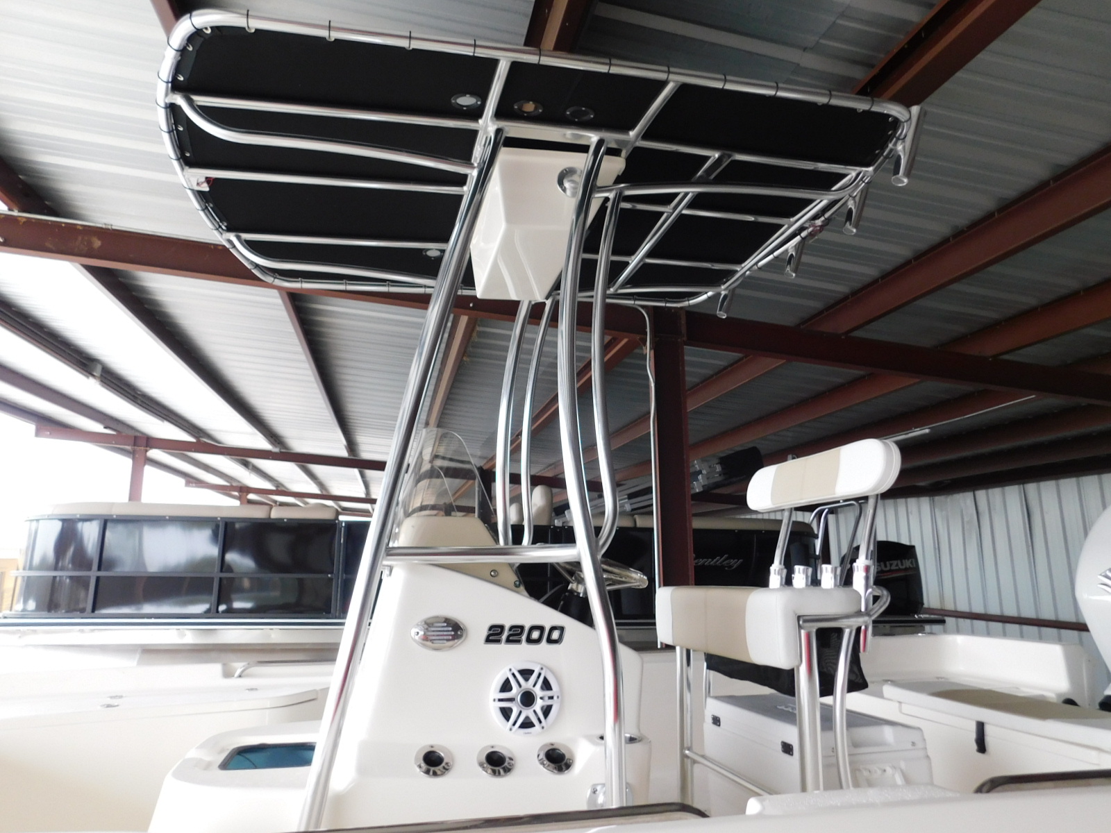 2021 Bulls Bay 2200 powered by a 150 Suzuki 4 Stroke. Features include: T-TOP W/ RADIO BOX, SWIM PLATFORM PORT, STEREO, BATTERY SWITCH, BENCH SEAT W/ BACKREST.