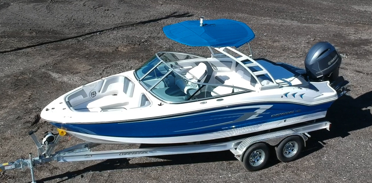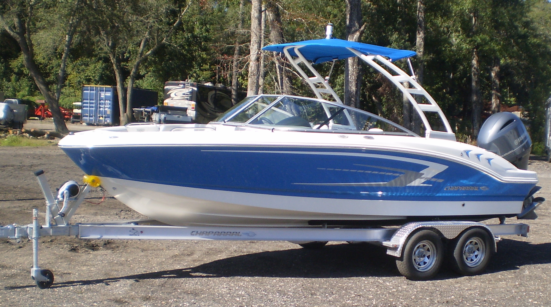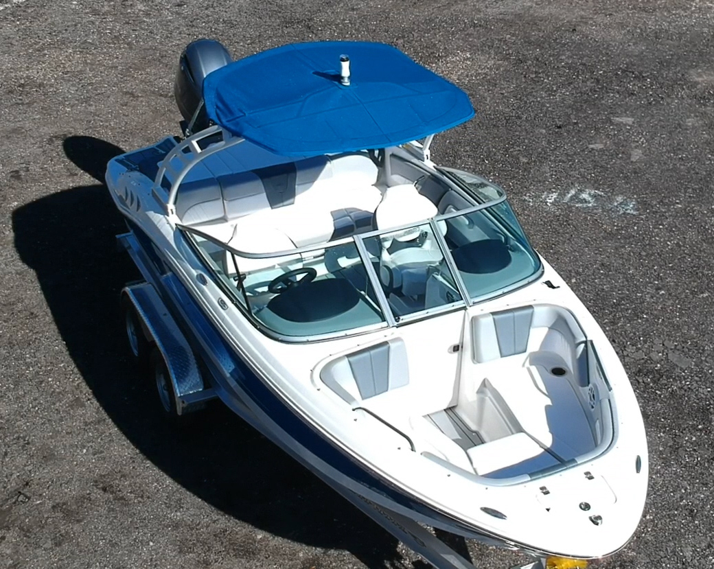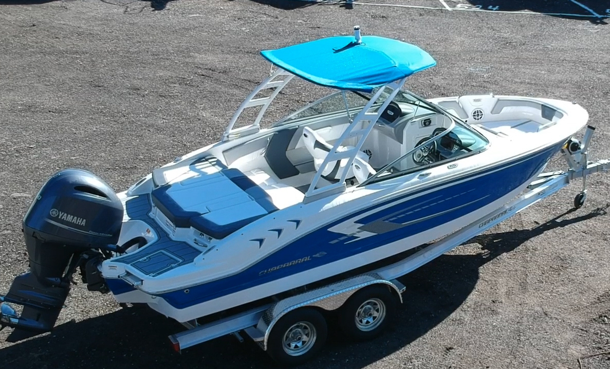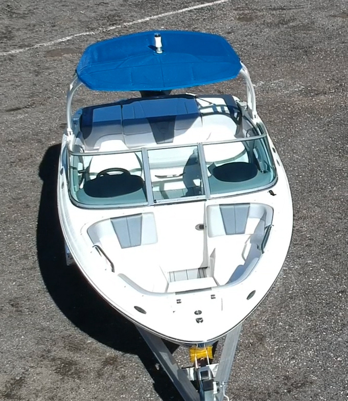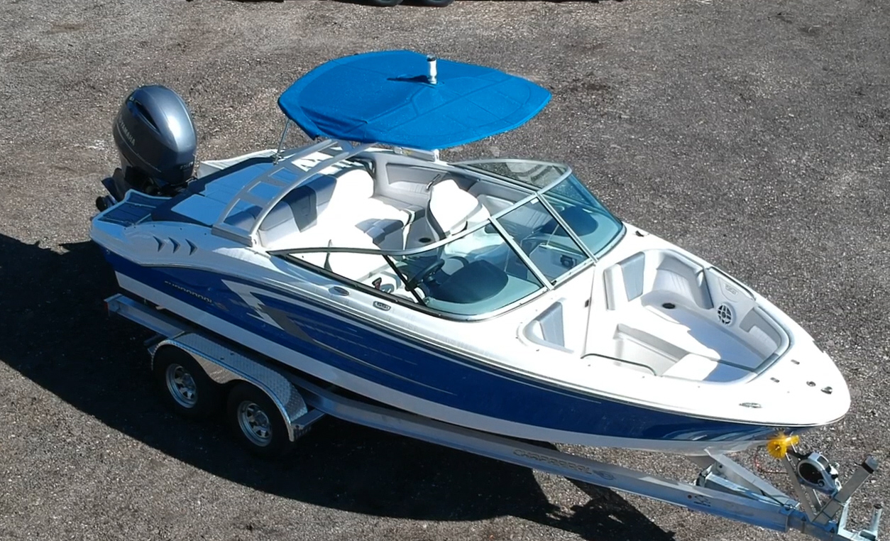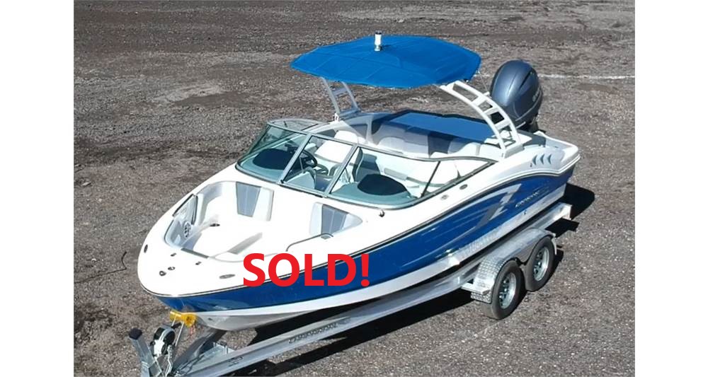 Complete with: Folding Velocity Arch Tower with Canvas, Cockpit and Bow Covers, Simrad G07 GPS, Bow Walk Thru Door, Swim Platform, Clarion Stereo and a Dual Axle Aluminum Trailer.