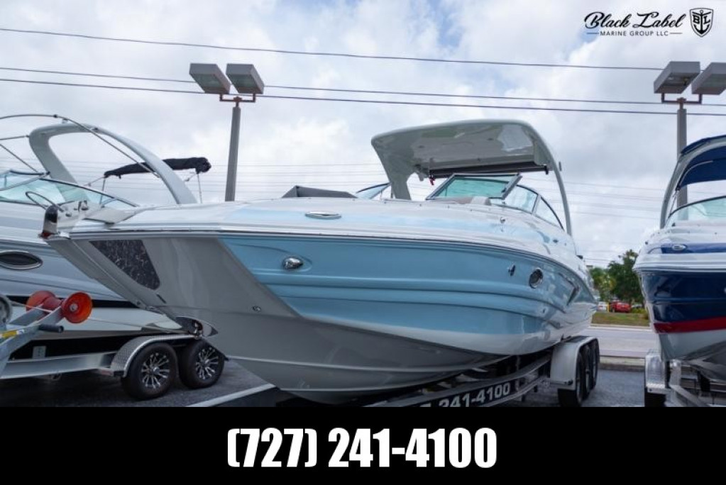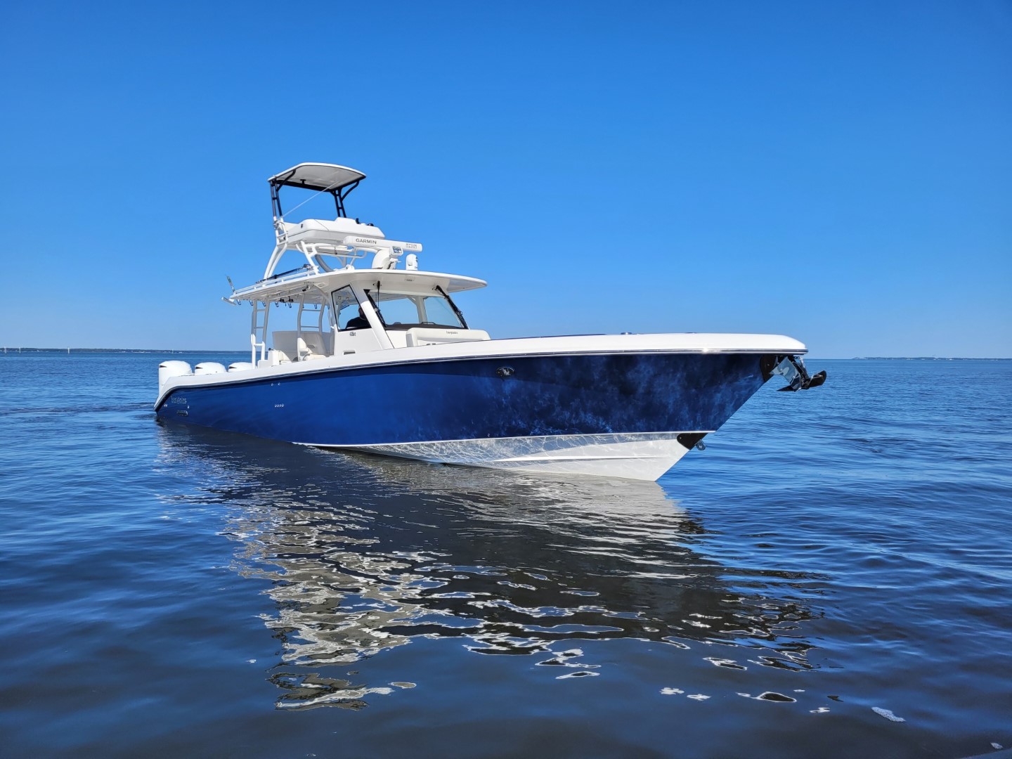 The 28 Launch GT has a wide captain’s chair that puts you in control behind gleaming gauges and a rich, mahogany steering wheel. The luxurious wave-pattern stitching is complemented by a thick stainless steel bar. And a thigh bolster brings added height and visibility. Schedule a showing today! For more information give us a call at 410-286-1350.