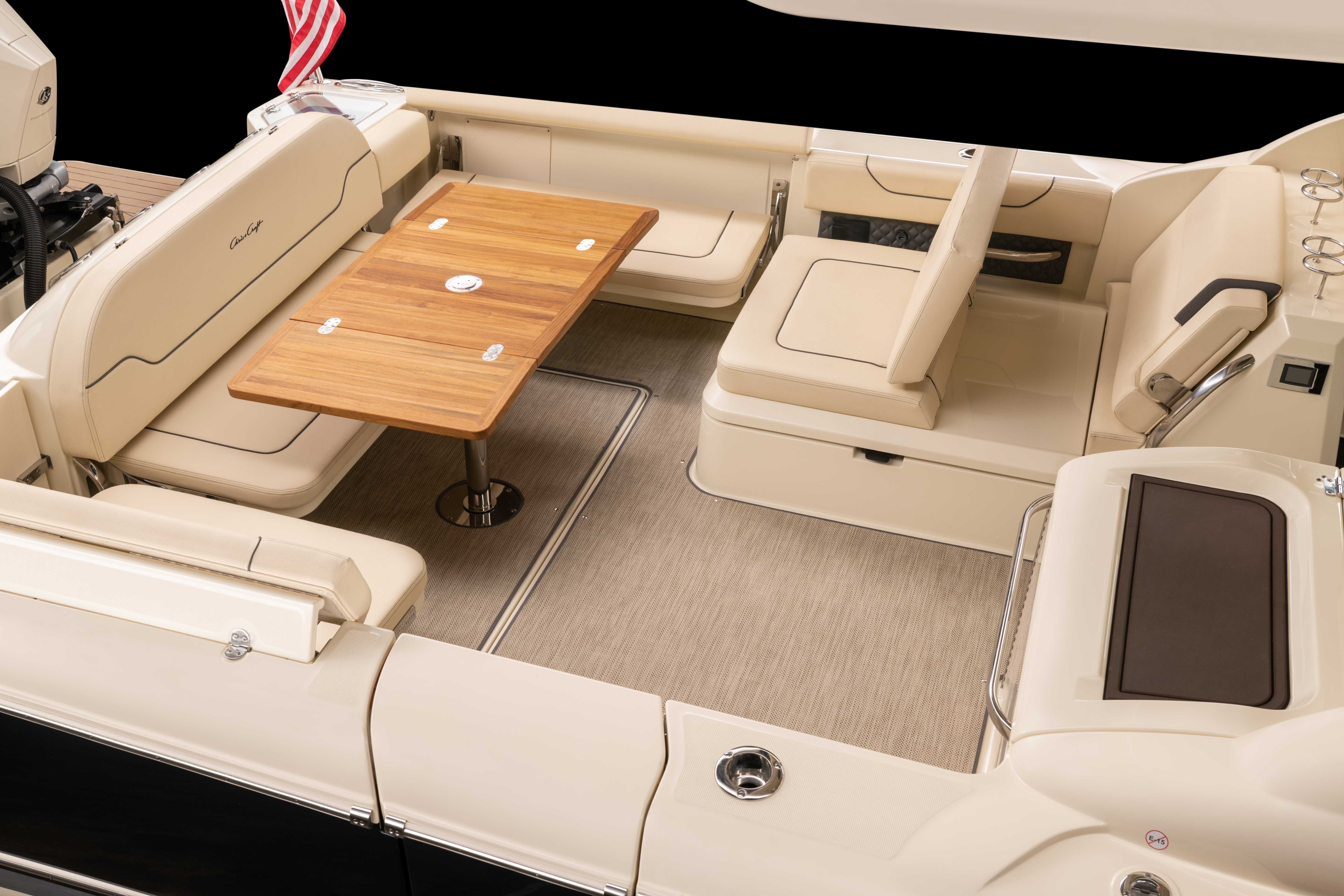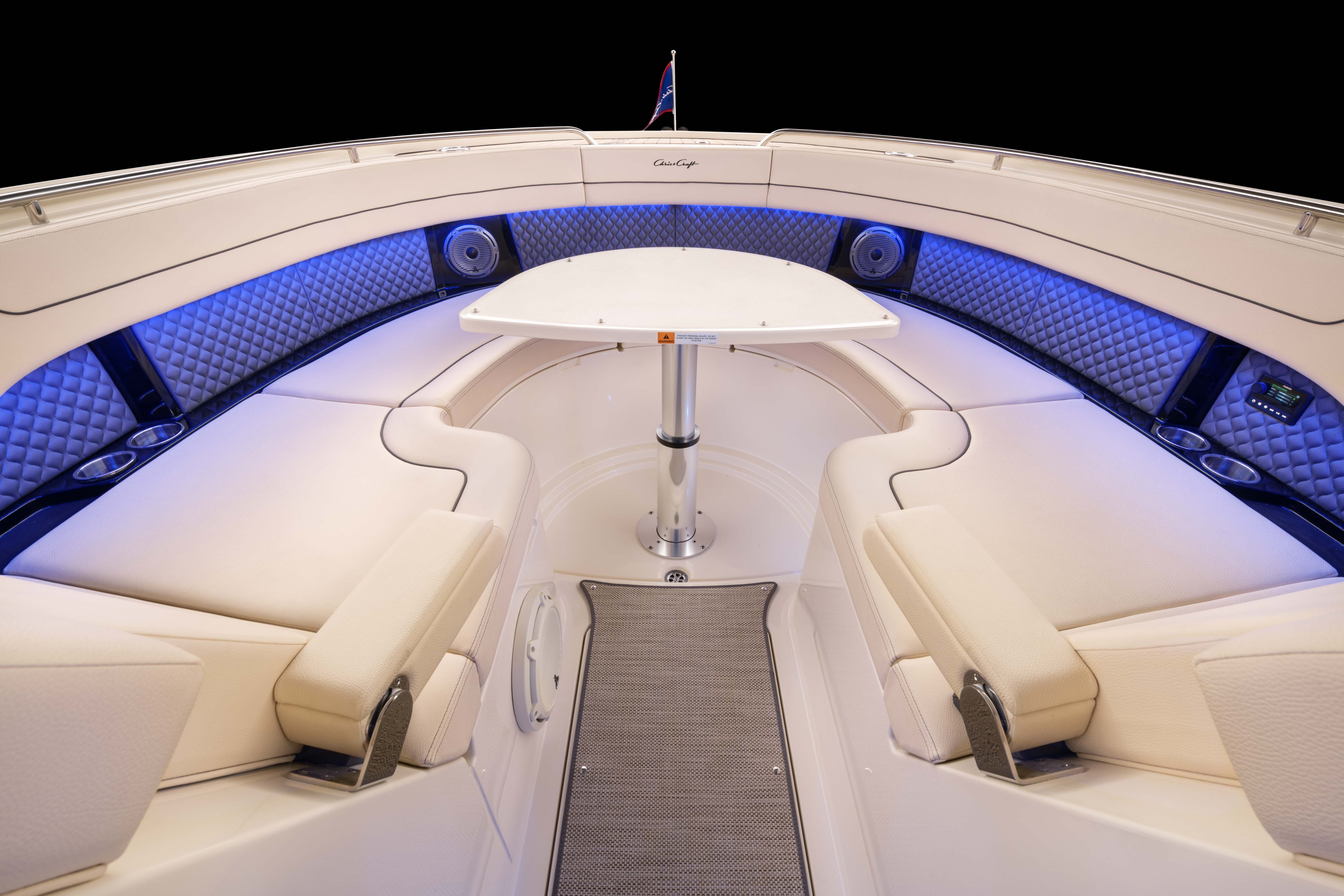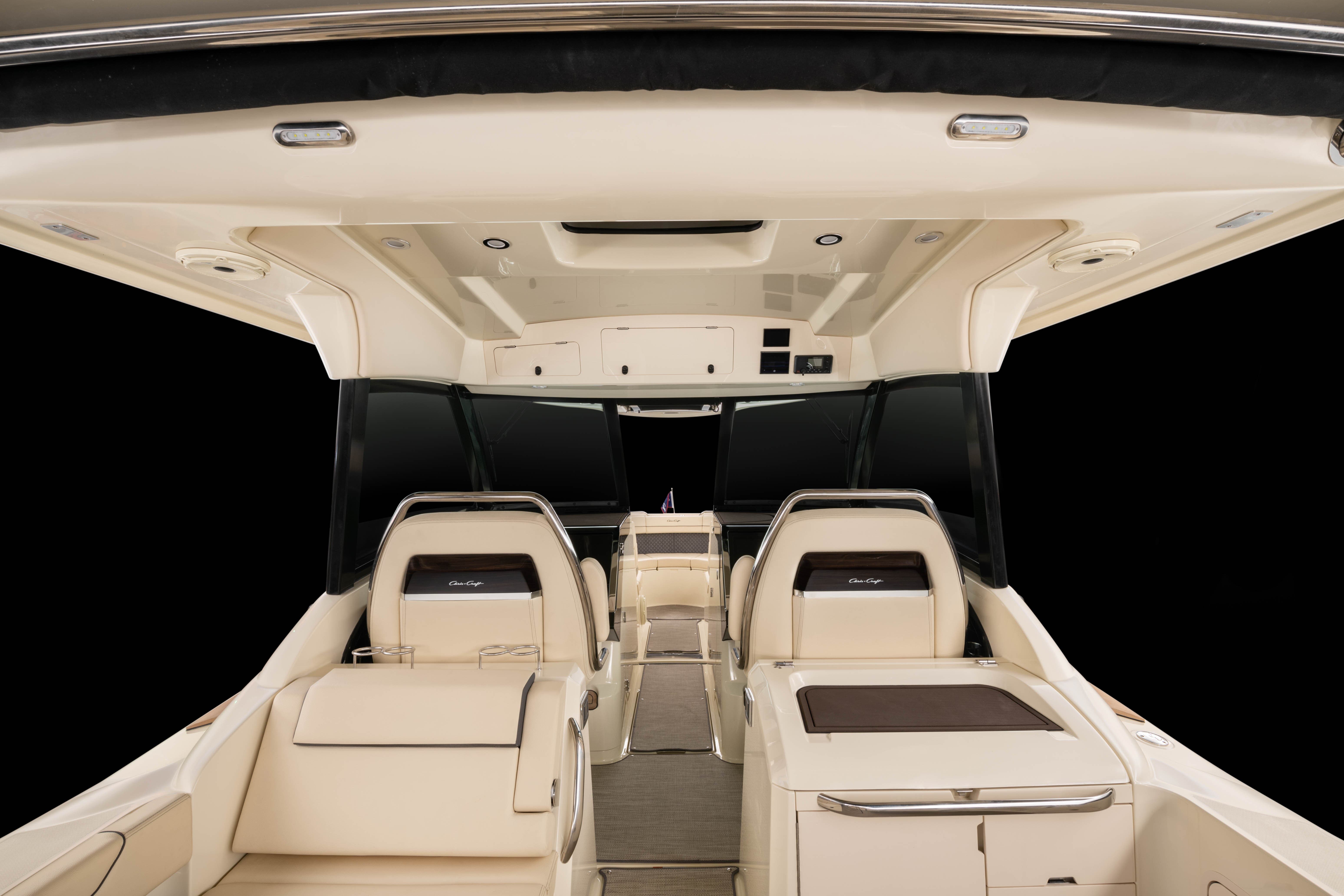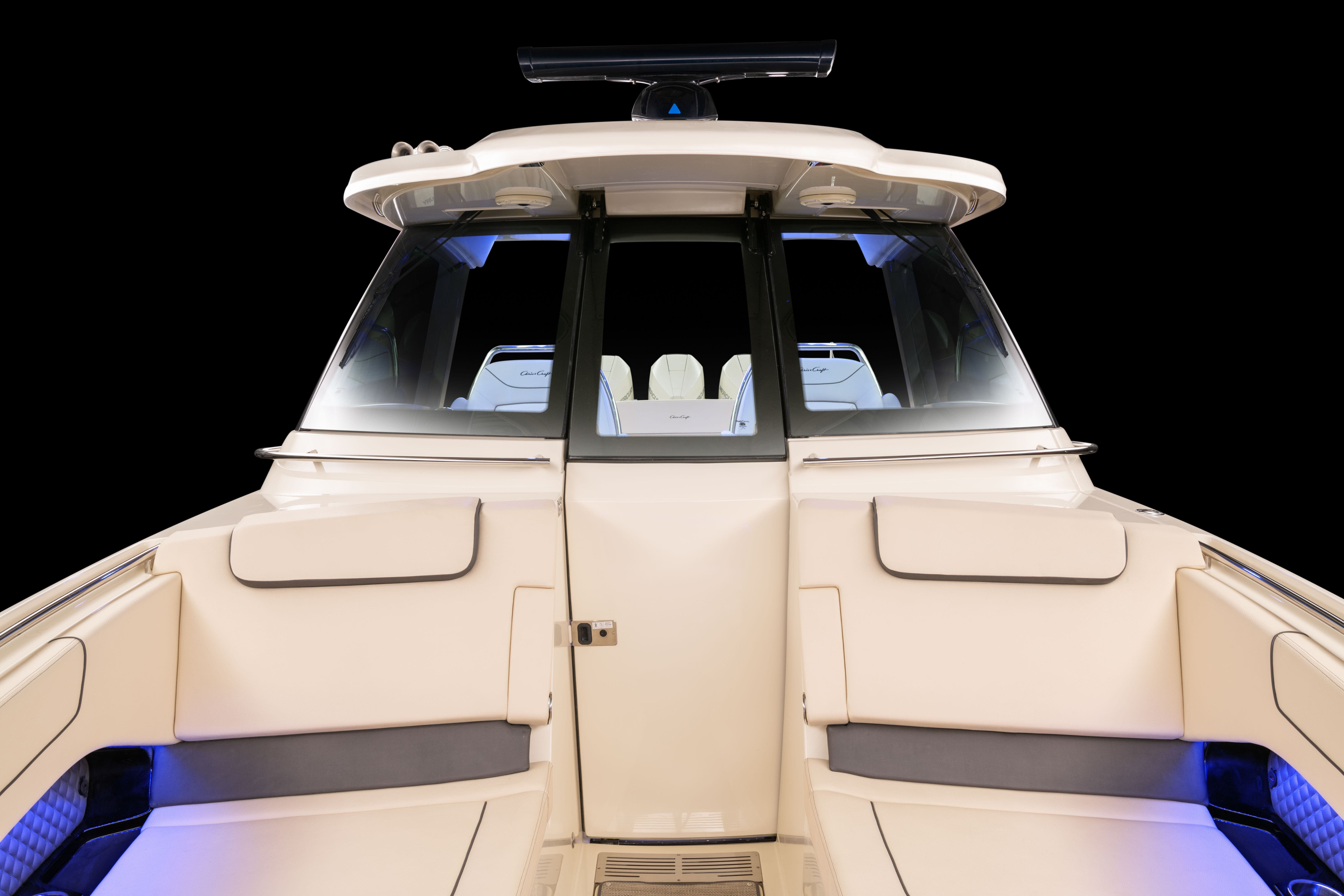 2021 Chris Craft Calypso 35 CP ON ORDER FULL LISTING PHOTO SHOOT COMING SOON The latest offering in the prestigious Chris Craft lineup, the Calypso 35 features a new fully enclosed windshield with a power actuated center walk-through and sliding wind door. When the windshield opens, it encloses into the hard top, creating unobstructed views through both driver and passenger sides. Some of the many great features on this model include:
