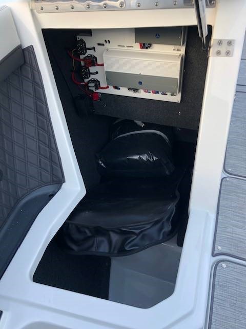 This boat has plenty of storage for all of your watersports needs and a great sound system.