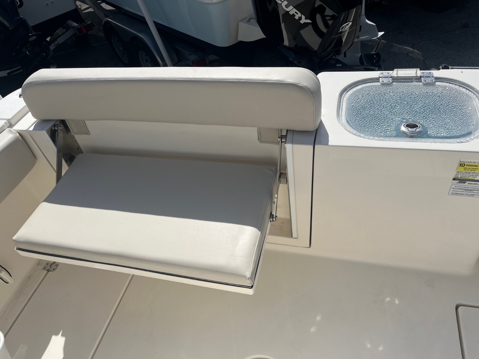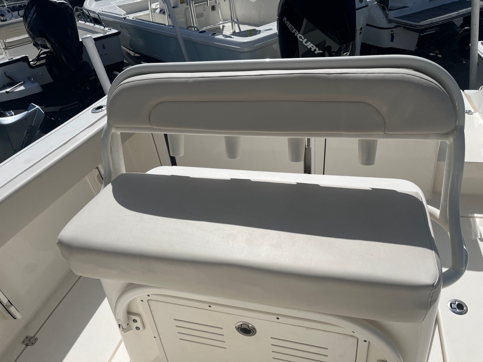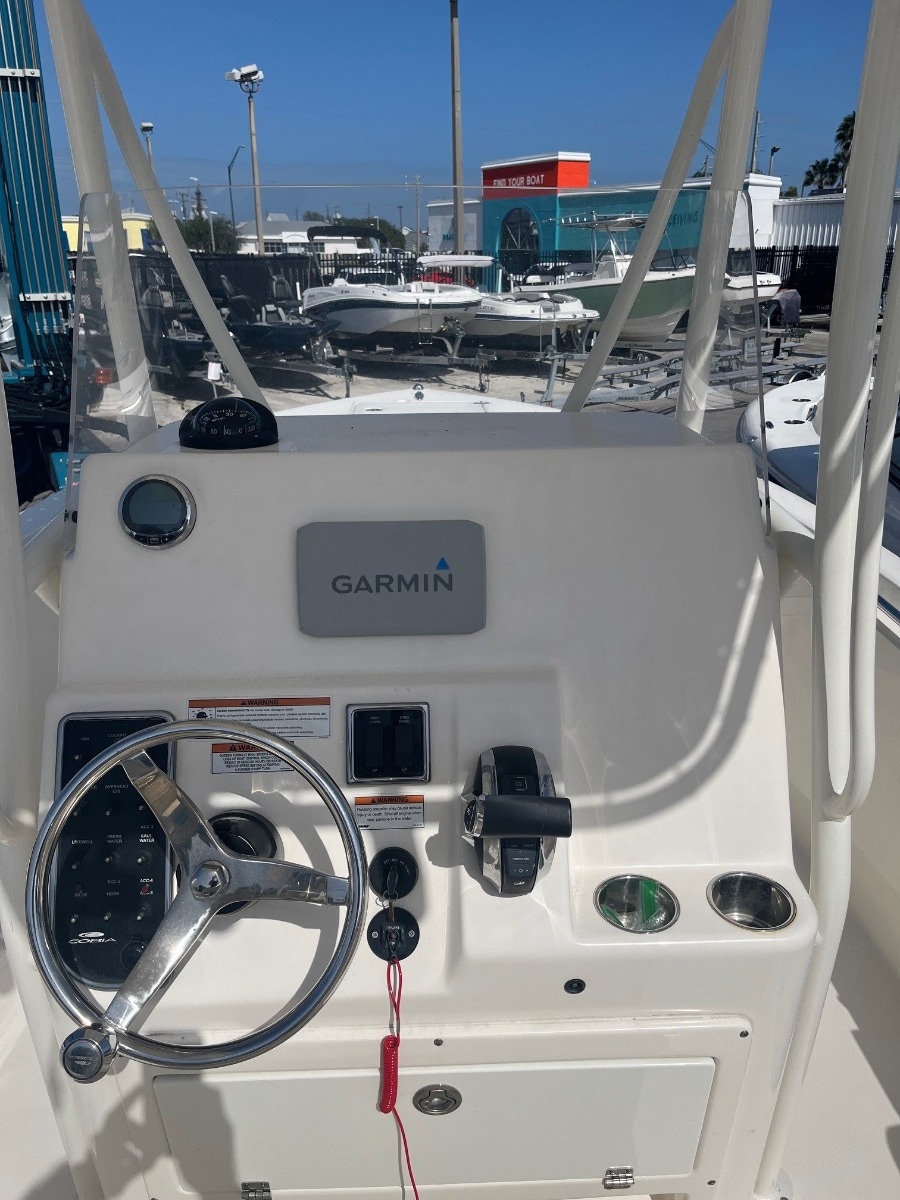 This certified pre-owned Cobia 237 CC is eligible for Boateka's limited-time financing offer! Secure this center console today with financing as low as 4.99% APR* now through August 8. Use promo code "FINANCE25" to claim at your local Boateka dealership.  Tried and true, the venerable 237 CC gives you all you need in fishability and family cruising comfort. A stem to stern level deck, flush mount hardware, recessed bow rail, and hideaway aft bench seating provide a roomy and uncluttered fishing platform. Add to that standard features like an aerated 28 gallon livewell and two, in-deck 40 gallon fish boxes and this boat comes tournament ready. The 237 CC’s smart layout makes it just as comfortable as it is fishy. Whether sandbar hopping or going for a sunset cruise, a perfect blend of seating, storage space, and cockpit room makes for a relaxing and enjoyable experience. And like all Cobias, the 237 CC is built to ABYC standards, the highest in the marine industry, so you can be confident that there’s no safer or better built boat on the water.