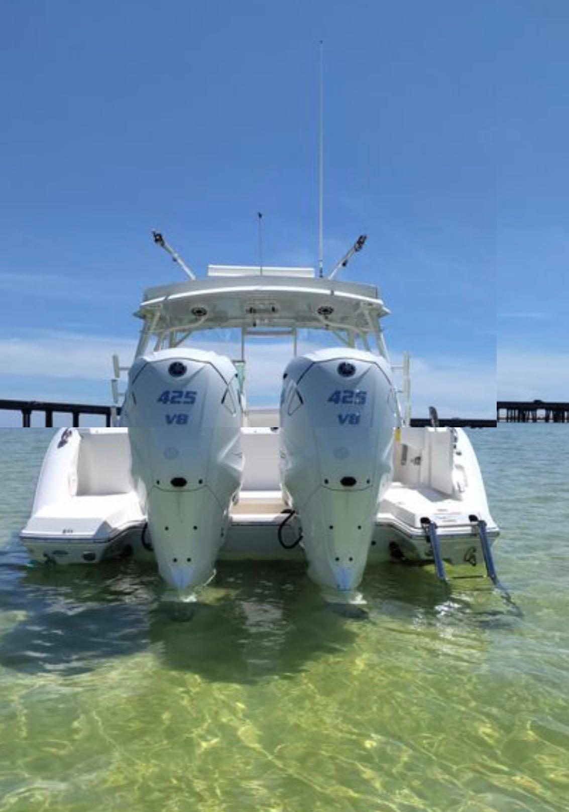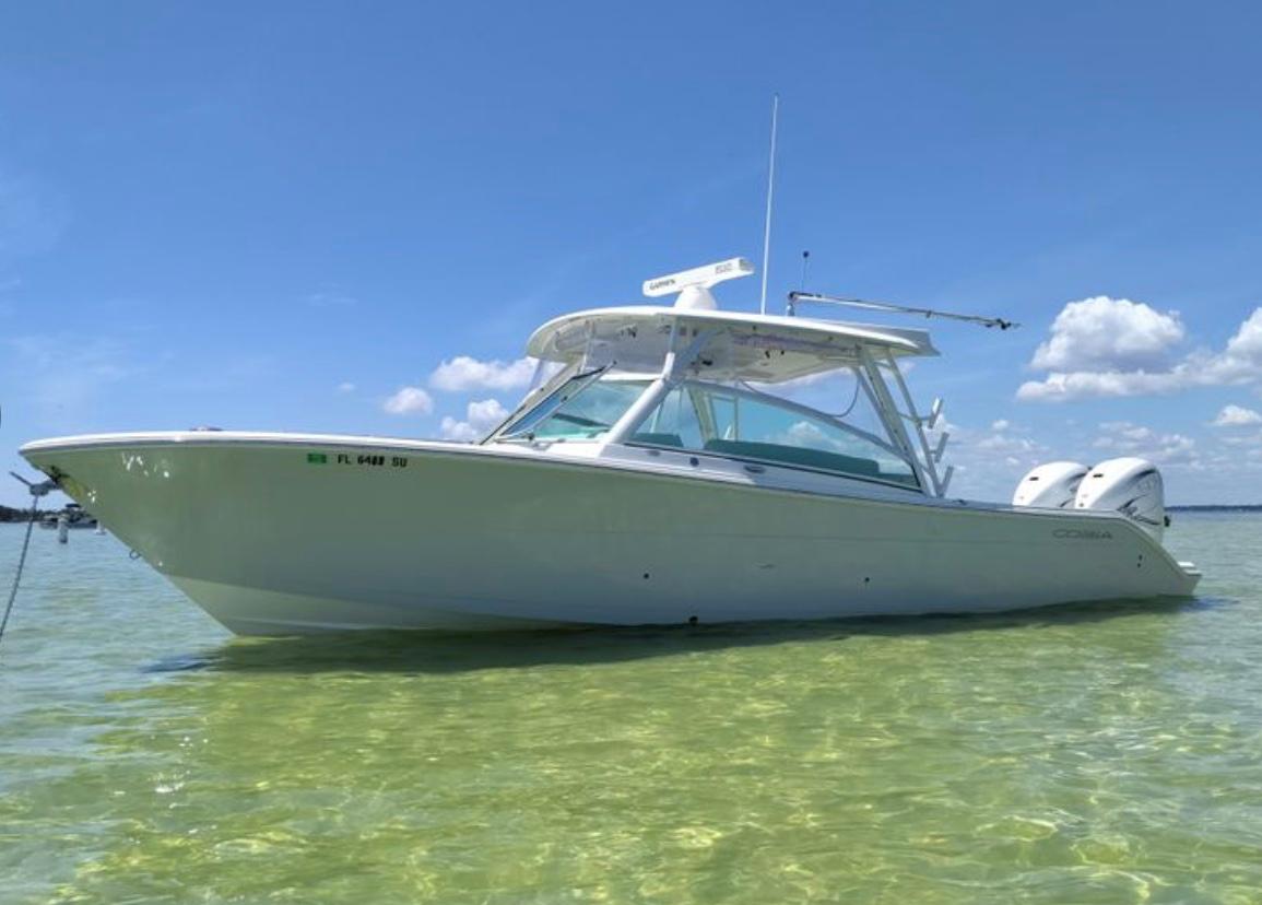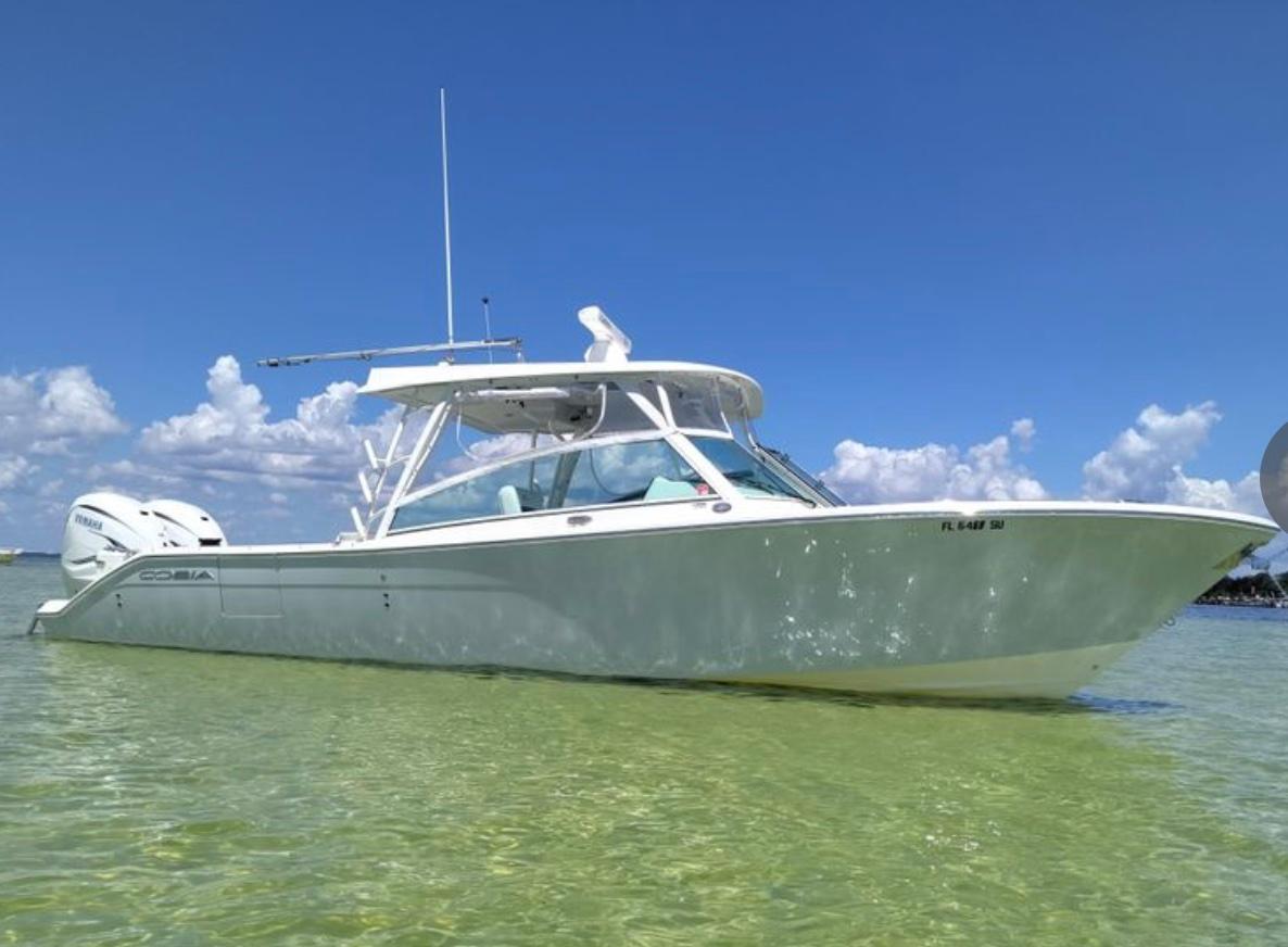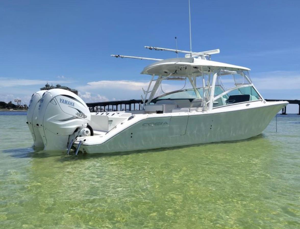 2021 Cobia 330 DC with Twin 425hp Yamahas with Yamaha Joystick. Garmin electronics with autopilot CHIRP Garmin XM weather antenna and radar. Upgaded JL stereo speakers and 2 Subs. Underwater lights, Electric windlass with remote. Full covers, isinglass. Electric reel hookup. Sink, refrigerator, extra rod holders. Fresh and salt water wash downs. Holds 275 gallons of fuel. All service has recently been done. Ceramic coating and dry stored. No bottom paint. Electric sureshade. Outriggers. Boat in excellent shape. Runs great.