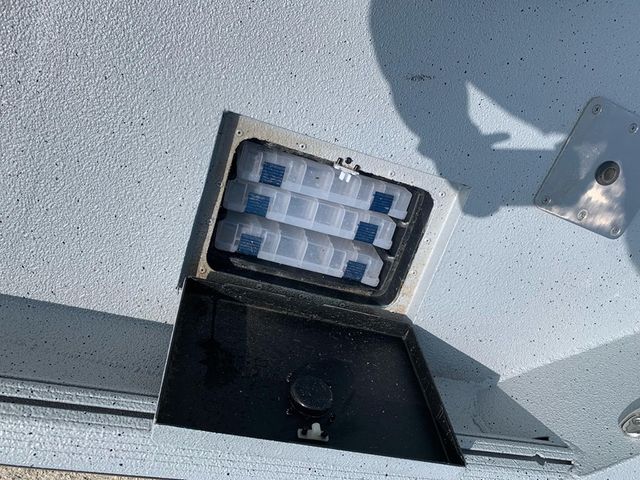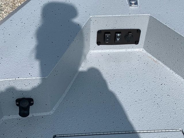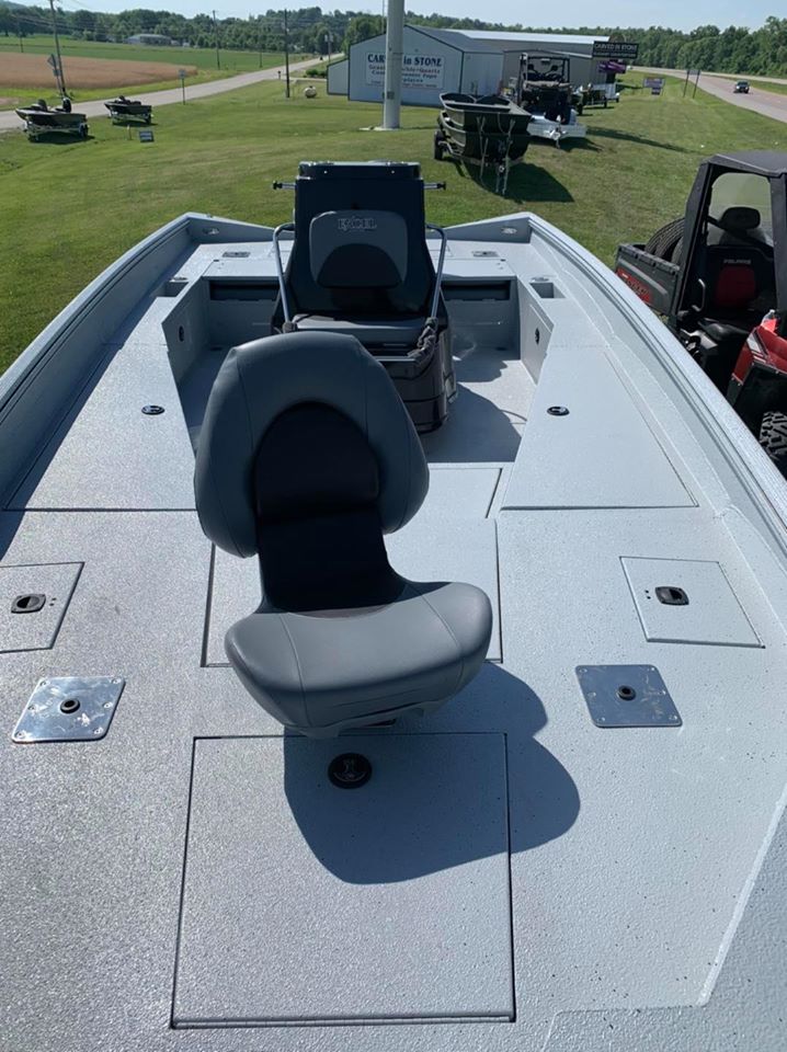 4 Bank Charger, 6" ATLAS Hydraulic Jack Plate, Stainless Package, Seastar Hydraulic Steering, Tilt Steering Helm 1.7, Centric Seat Upgrade, Leaning Post Backrest, Recirculating Baitwell, Suzuki Trim Gauge, 3-Step Ladder, Interior Light Package, and 26 Quart Orca cooler. The trailer is a Diamond City Tandem with aluminum wheel upgrade, spare. and side mount carrier.