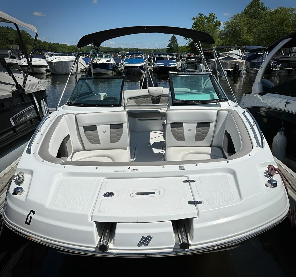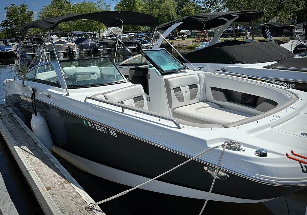 Features include black bimini top and cockpit cover, GPS plotter, docking lights, and more!