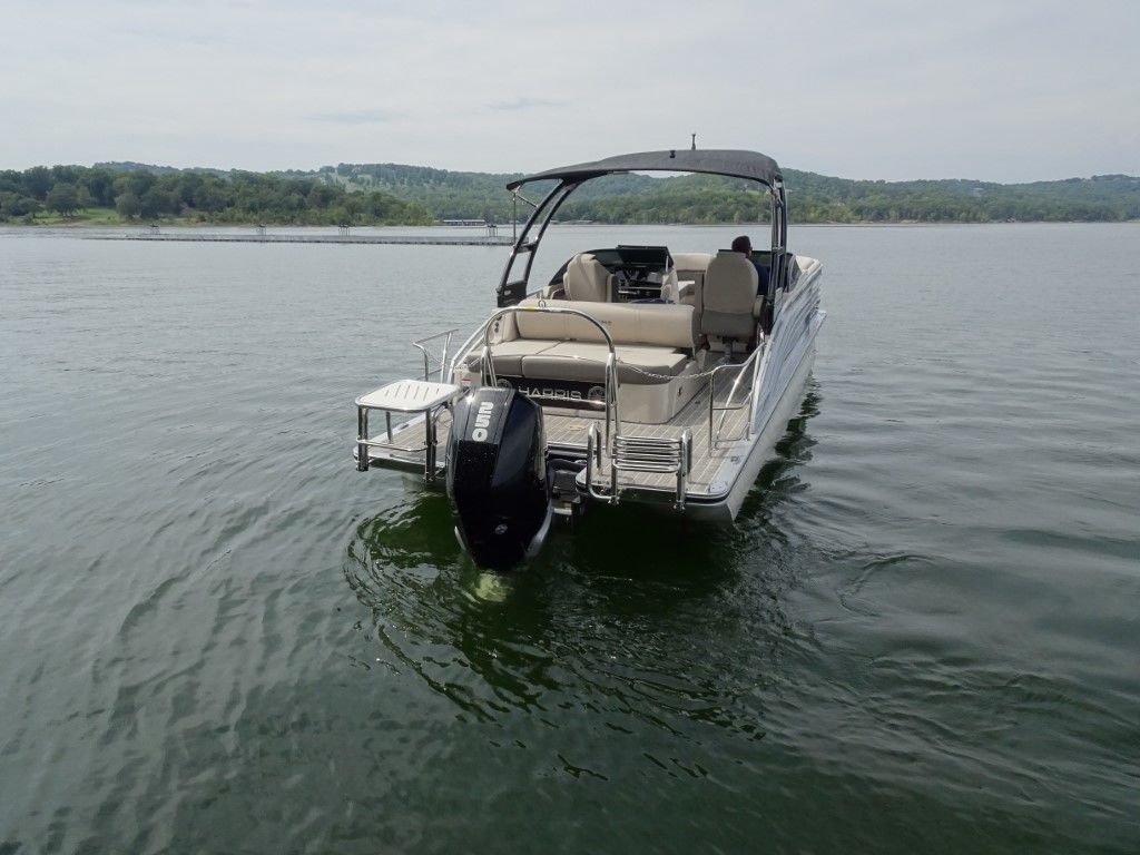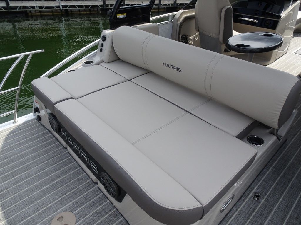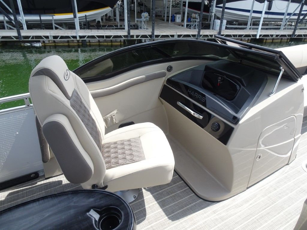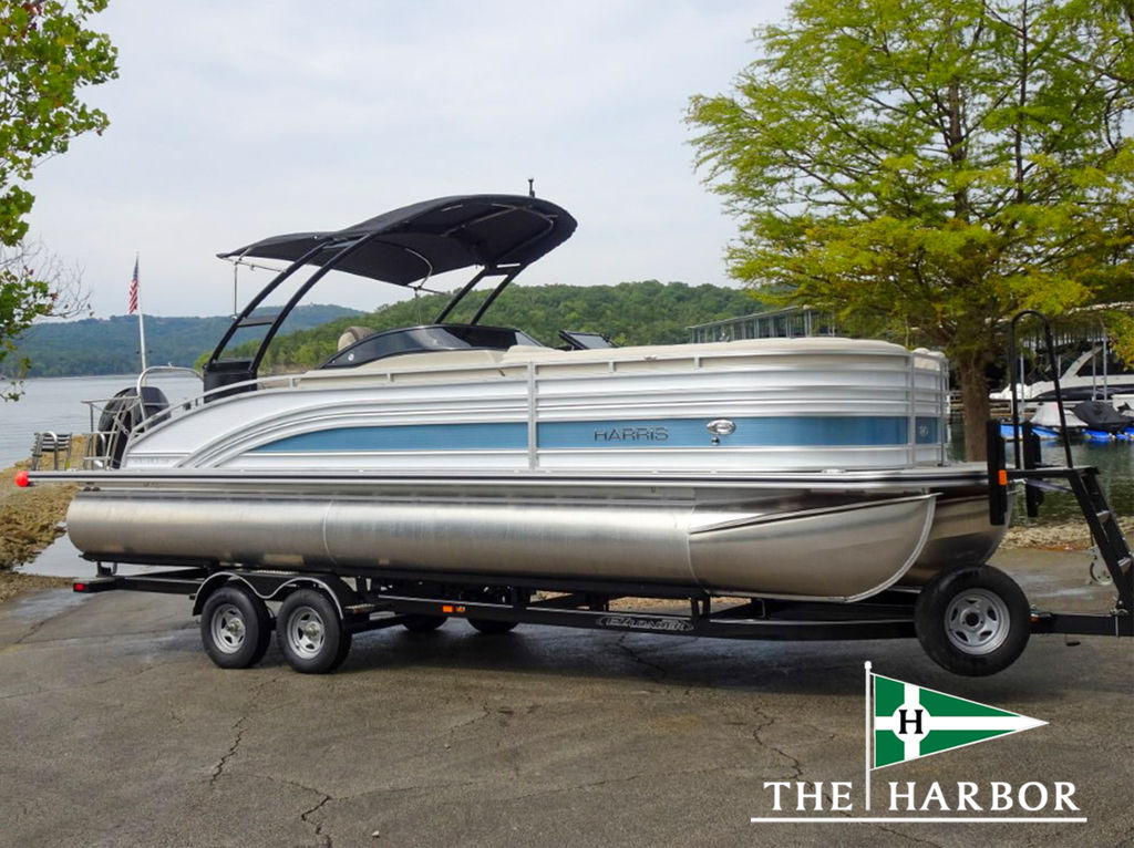 This is a brand new 2021 Harris Solstice DC 250 Tri-toon in White Diamond w/ Light Blue Metallic and powered by a Mercury 250hp Verado 4-Stroke. It also has the following upgrades: