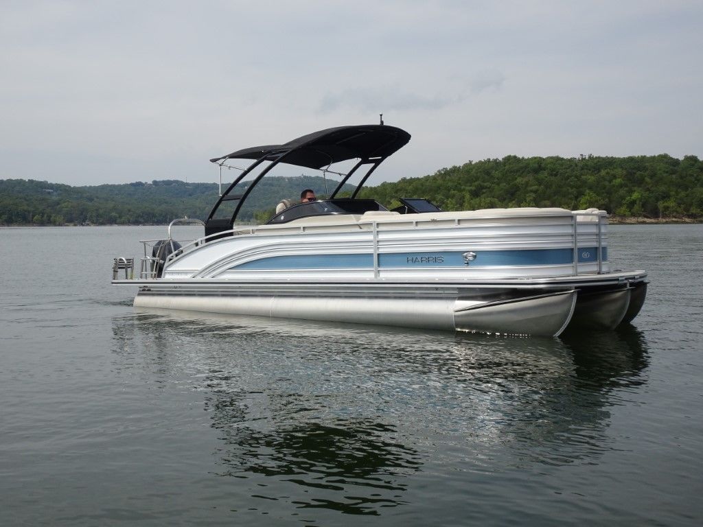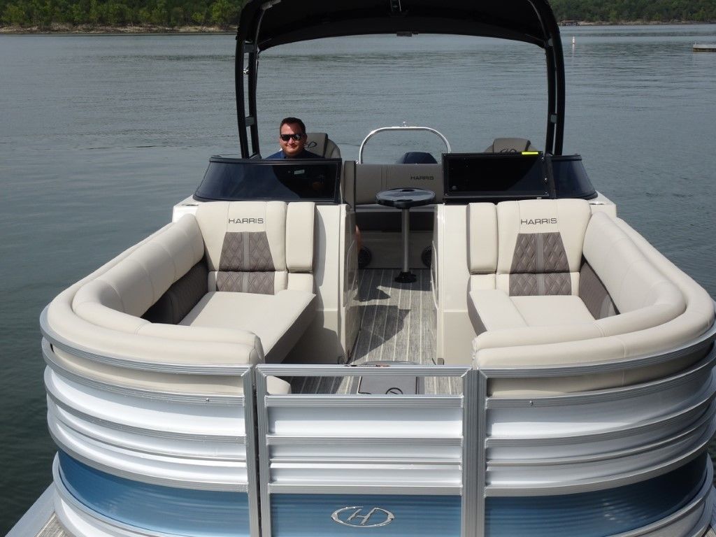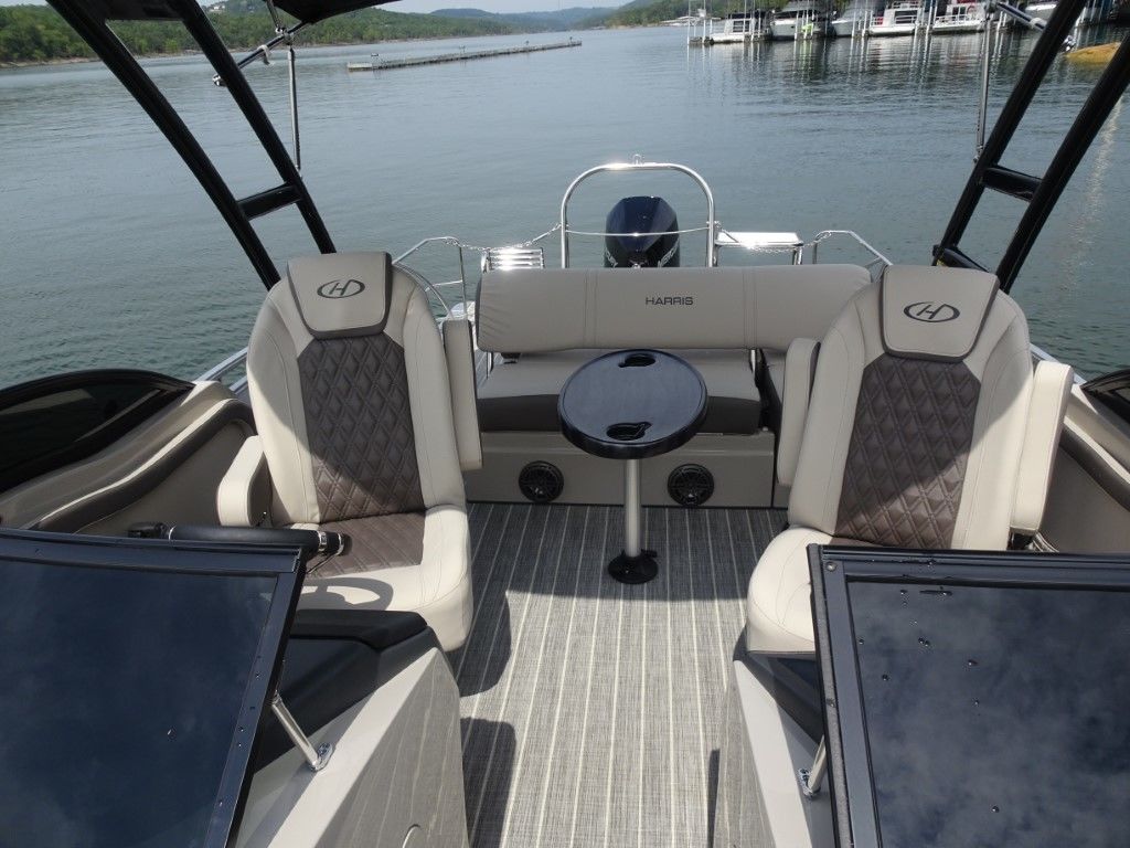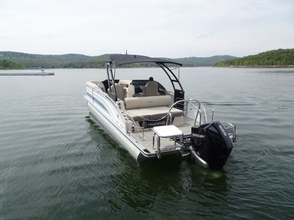 This is a brand new 2021 Harris Solstice DC 250 Tri-toon in White Diamond w/ Light Blue Metallic and powered by a Mercury 250hp Verado 4-Stroke. It also has the following upgrades: