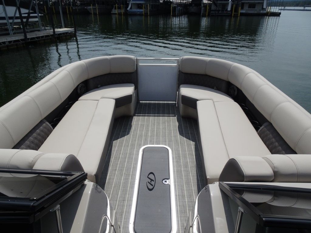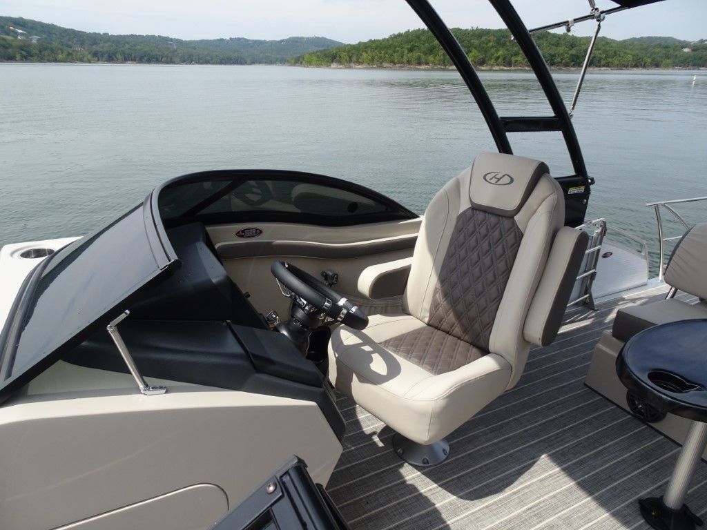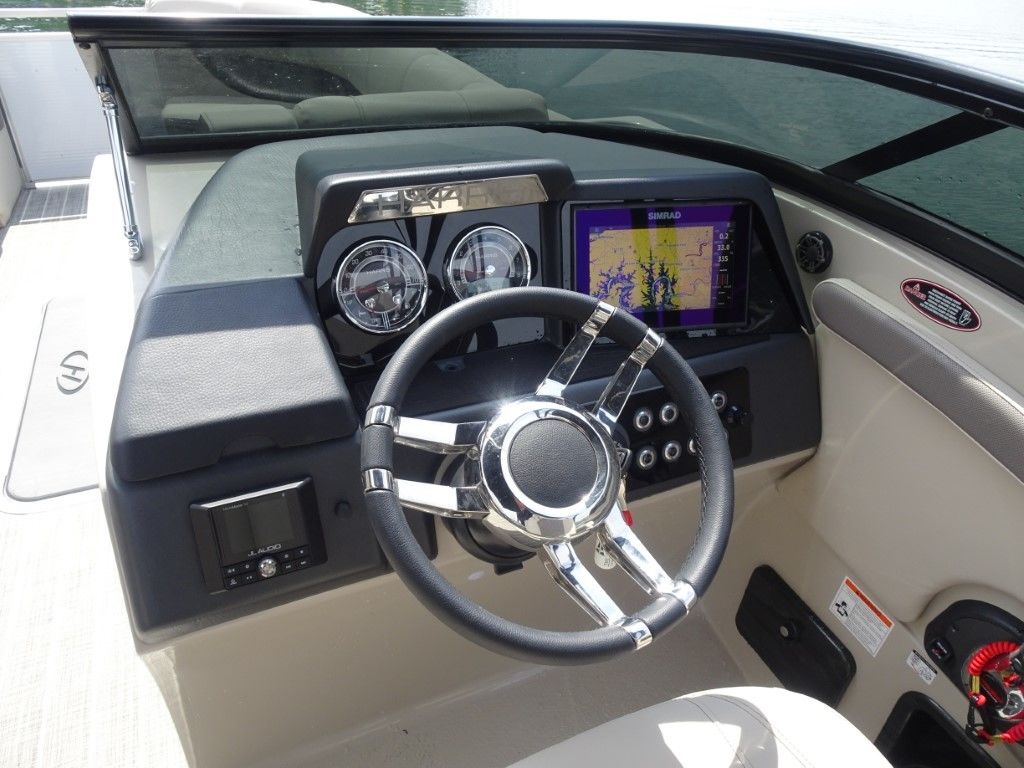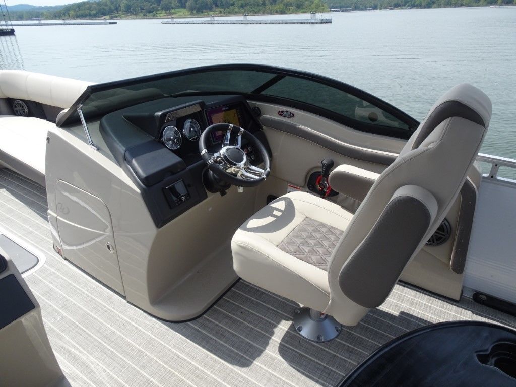 The Solstice DC 250 draws heavily upon sport-boat influences, blurring the line between a pontoon and fiberglass runabout boat. You have the choice between three popular floor-plan arrangements and the ability to extend the starboard bow lounge for additional seating. Featuring the smooth and stable Performance Package 2 or the optional Performance Package 2.5 and combined with a modern sport-boat inspired dual-console configuration, the Solstice DC 250 provides the sporty and familiar feel of a fiberglass boat with the stability and maximized usable space that comes with the pontoon boat platform. When equipped with the Tinted Low Profile Sport Windshield or the Clear High Profile Windshield, Six Speaker JL® Audio Sound System with Amp and Subwoofer, and the Evo Tower you’ll have one of the sharpest-looking pontoons on the water. Add the Total Lighting Package, which includes lighted cupholders, rope lighting around the seat bases, underwater LED lights, ladder LED lights, and LED underdeck lighting, for a dazzling display that will light up the night.