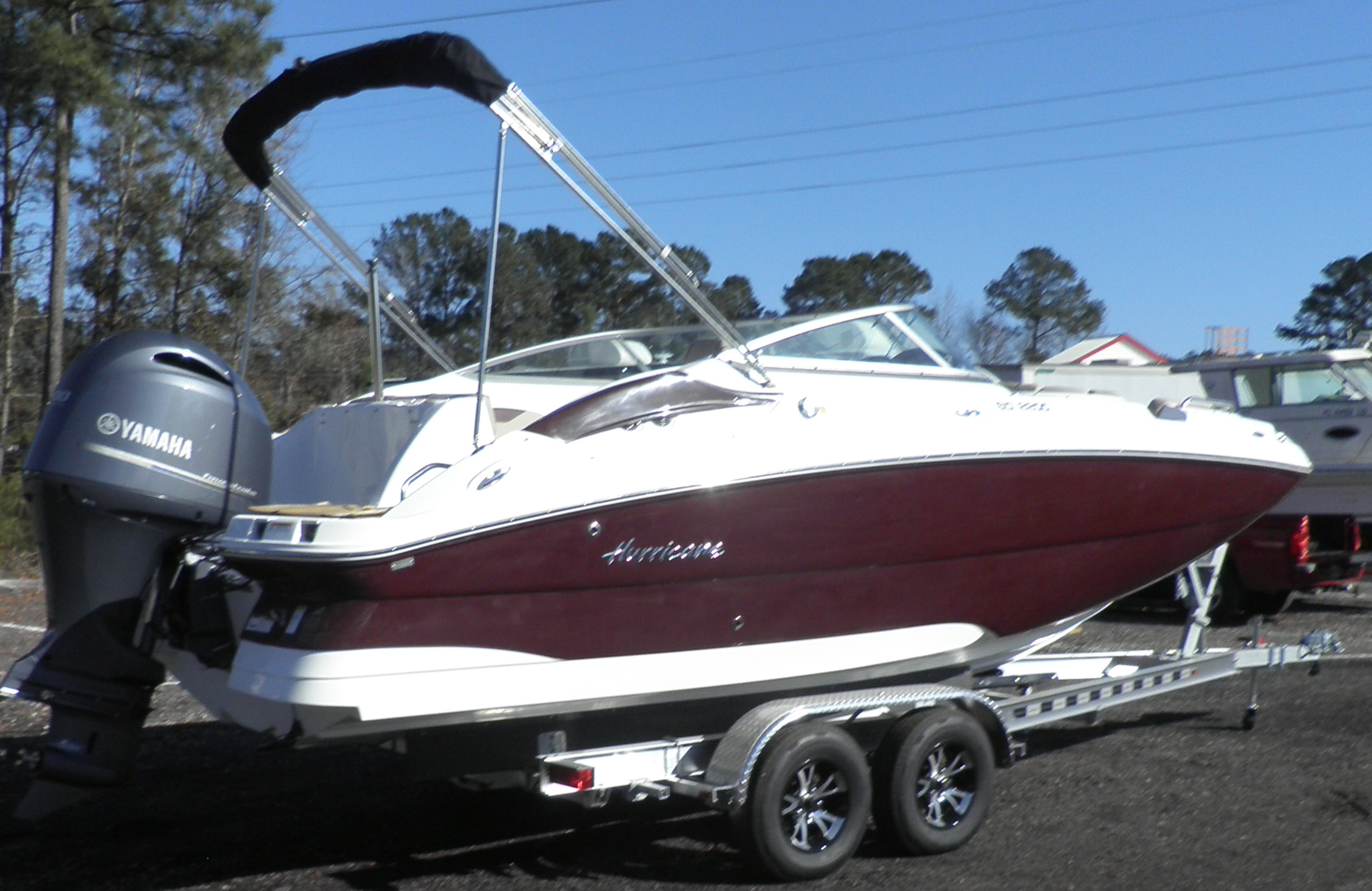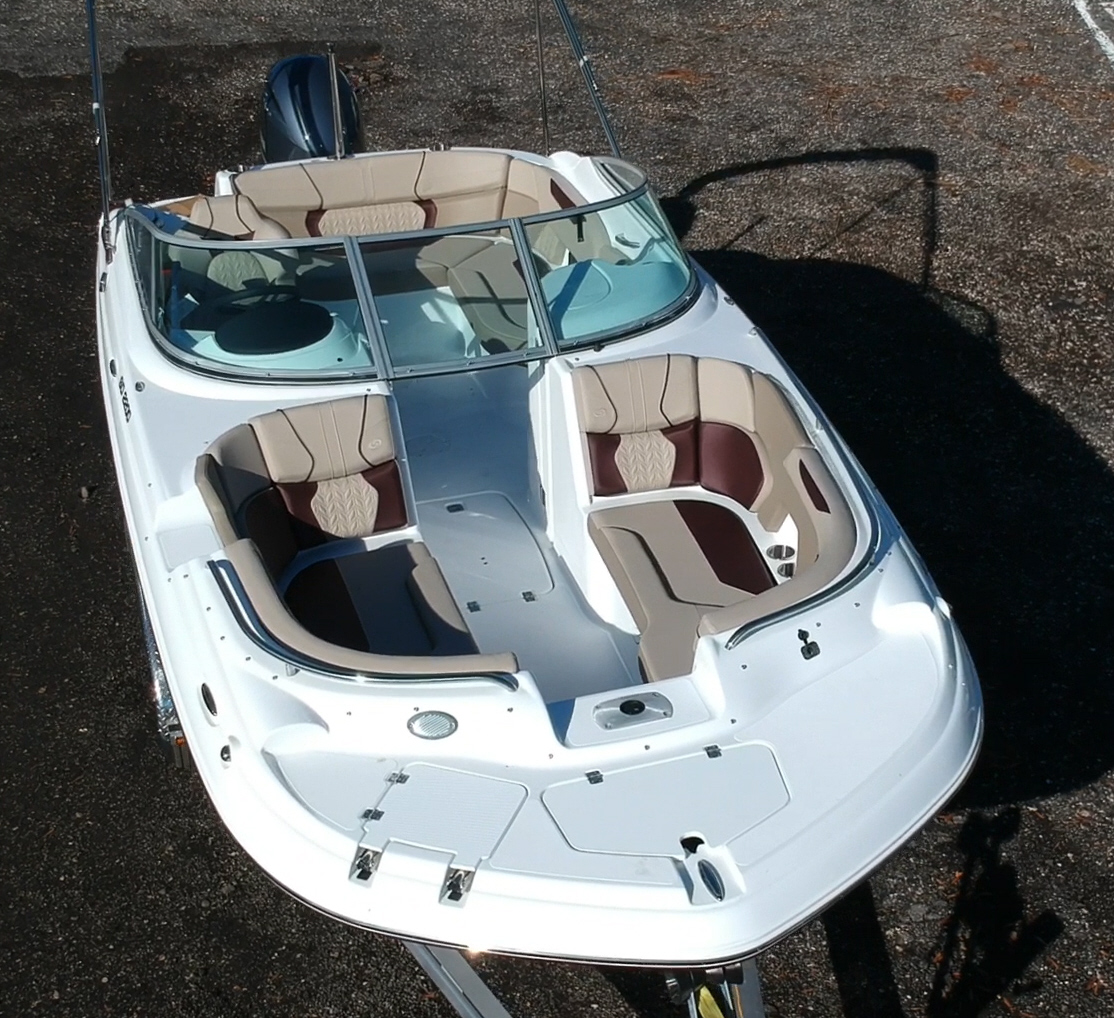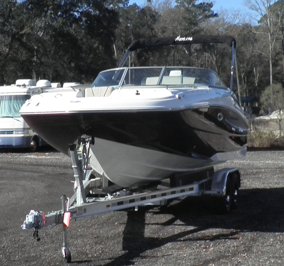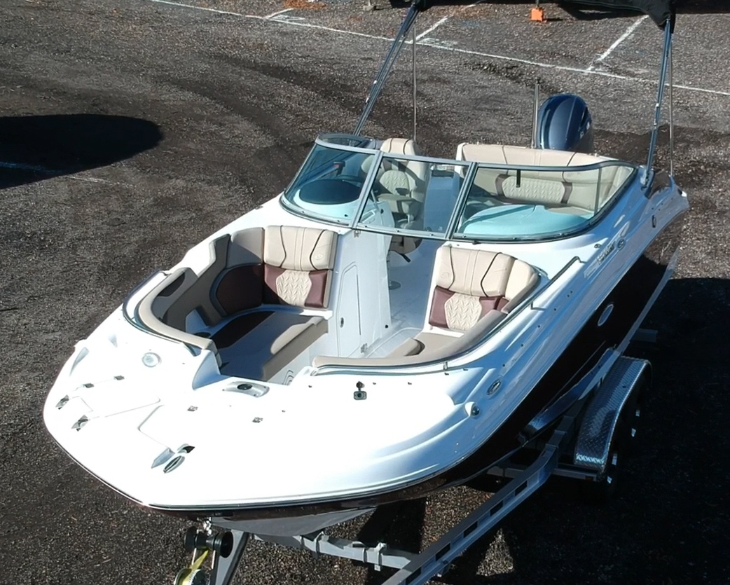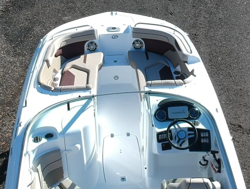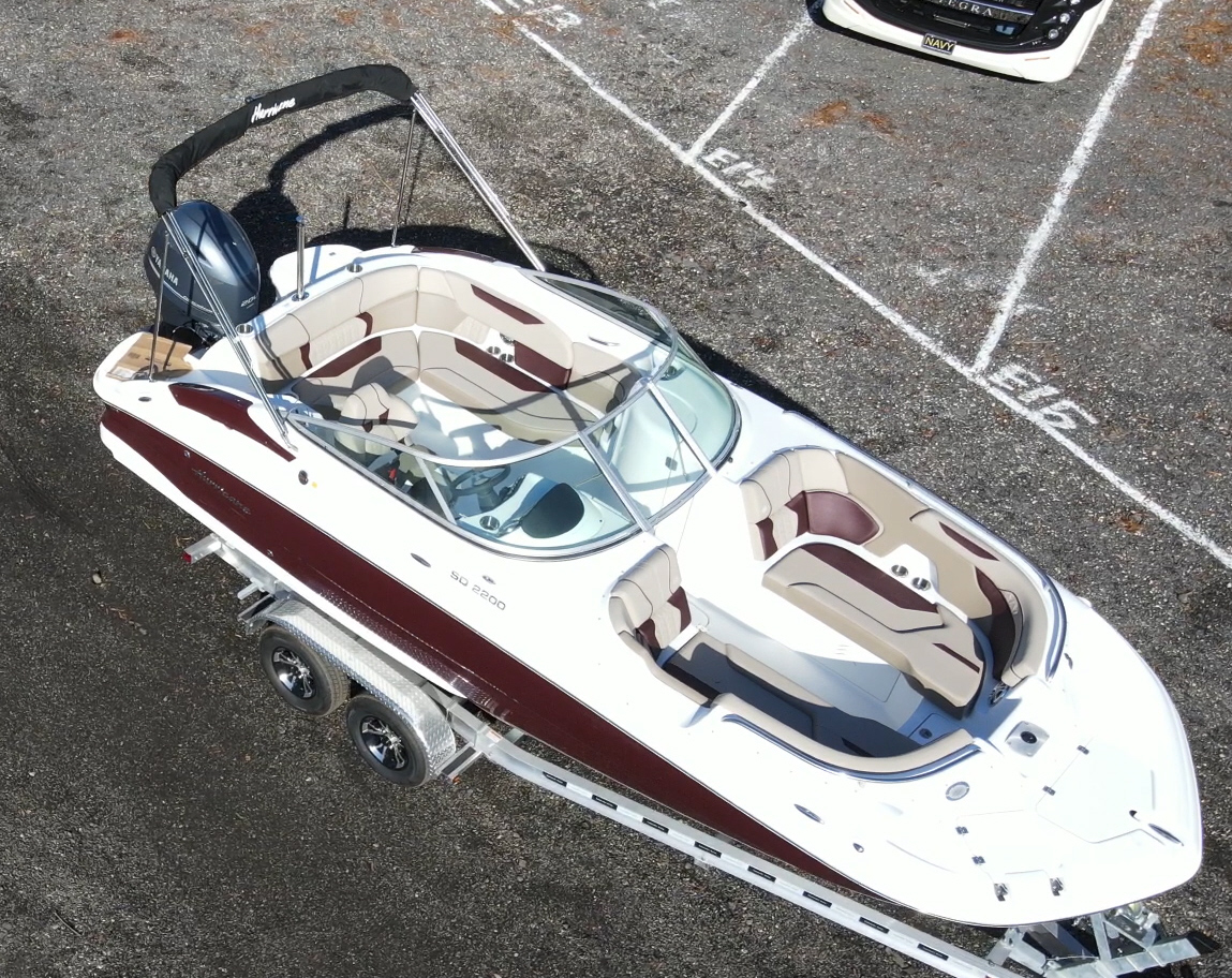 Complete with: Fishing Package, Boat Cover, Stern Wash Down, Dual Battery Switch. Porti Potti, Stainless Steel Black Canopy with Protective Boot , Garmin EchoMap Plus 63 Fishfinder/Chartplotter, Hydraulic Sea Star Steering with Tilt, Stereo and a Dual Axle Aluminum Trailer. Max HP: 250 hp