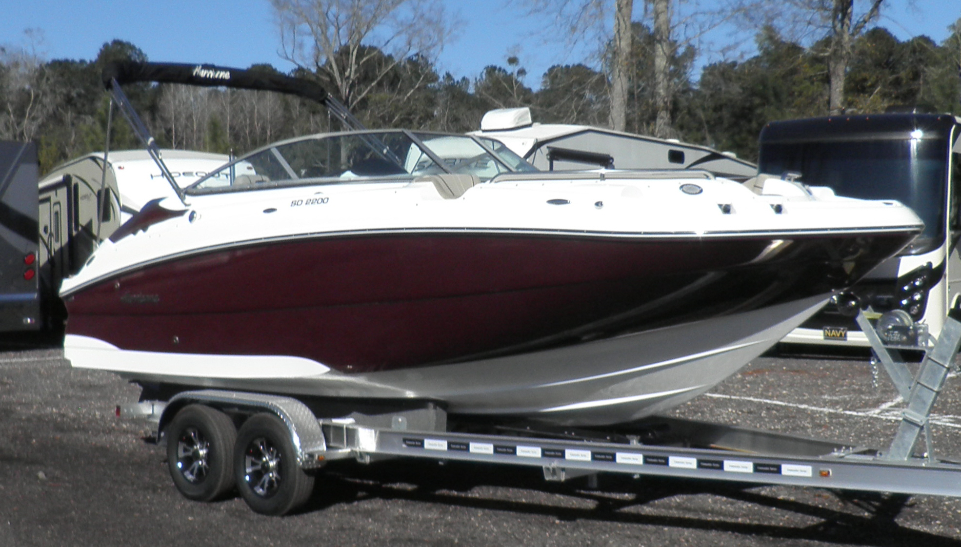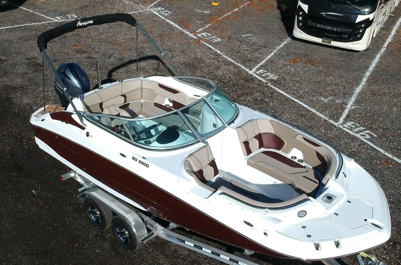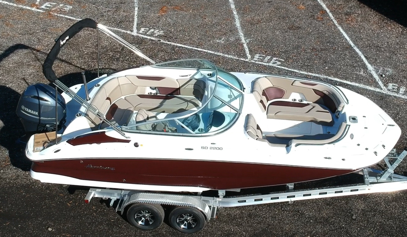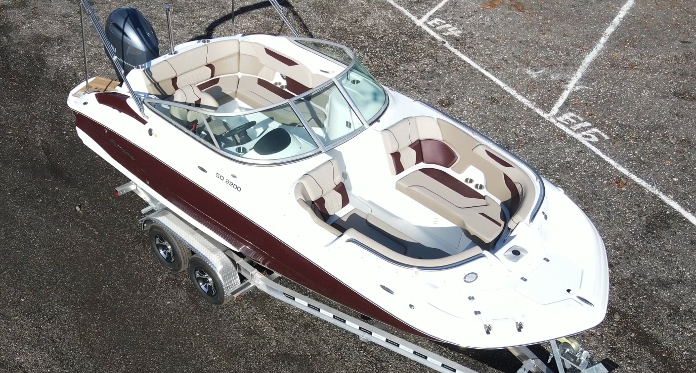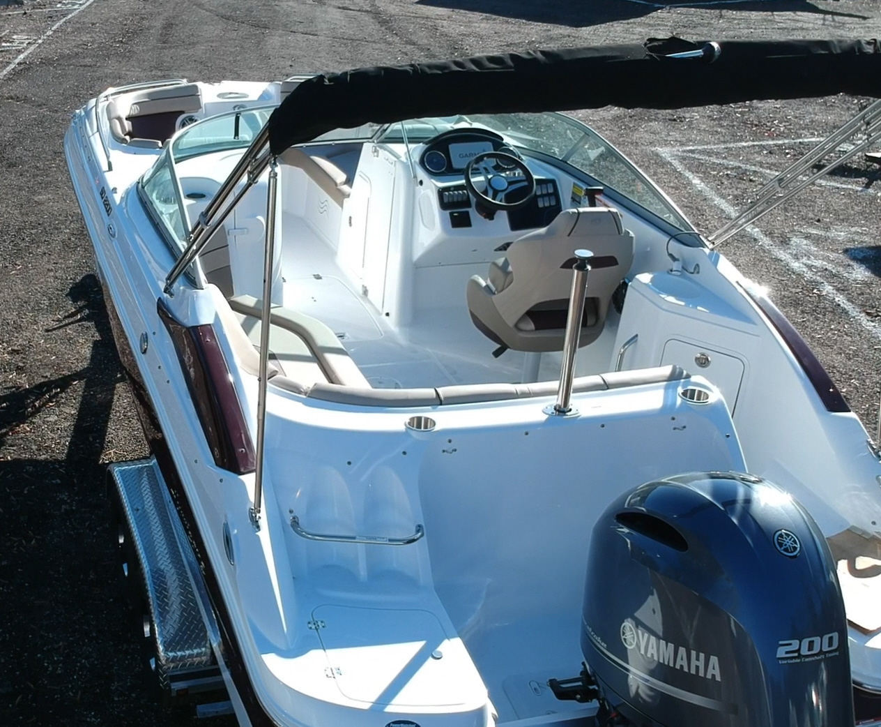 Complete with: Fishing Package, Boat Cover, Stern Wash Down, Dual Battery Switch. Porti Potti, Stainless Steel Black Canopy with Protective Boot , Garmin EchoMap Plus 63 Fishfinder/Chartplotter, Hydraulic Sea Star Steering with Tilt, Stereo and a Dual Axle Aluminum Trailer. Max HP: 250 hp