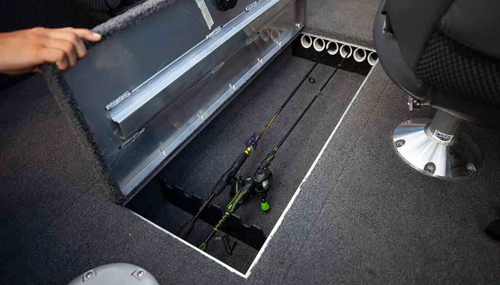 The Lowe FM 1625 SC’s tournament-inspired design provides unbelievable value and performance at a believable price. It features a huge in-floor rod locker that can carry up to (6) 8’ rod lockers, two ultra-comfortable pedestal fishing seats with 6 bases, and a large 23-gallon bow livewell. Its Deep-V aluminum hull handles rough water with ease, while its massive deck provides serious anglers a competitive edge to reel fish in. It also comes packed with plenty of smart storage space, a durable side console with chrome bevel gauges, and convenient flip-up stainless steel cleats. The professional-grade FM 1625 SC is a fishing machine that lives up to its name. It’s everything you love about Lowe in a compact-sized, ready-for-action fish boat.