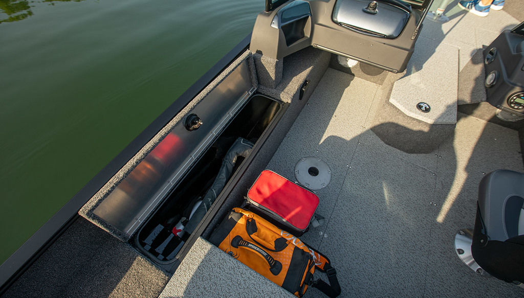 There is abundant storage throughout including a side storage compartment, a roomy center rod locker, trolling motor battery storage in the rod locker, and an optional cargo net in the bow. The rear deck conversion bench option was redesigned and we added a much more versatile adjustable gunnel cleat system so you can put those cleats right where you need ‘em.