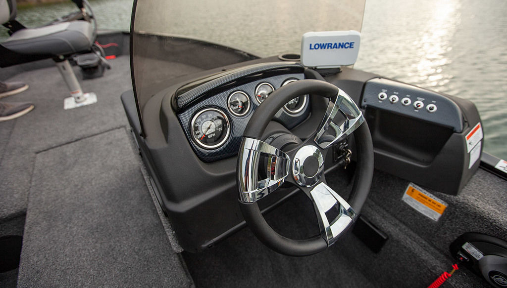 Why compromise when you can get all the performance you demand in a full-feature, mid-sized fishing boat. The FM 1800 SC reinvents what amenities, features, deck space and fishability you should expect in your next fishing boat. The FM 1800 SC features a driver’s side console with tournament level performance in a perfect size aluminum boat. At 17’ 10” long with a 95” beam, it is designed to be a tournament-class performer in a medium format design with ample storage and legendary Lowe ride. The FM 1800 SC features a durable aluminum Deep-V hull, handsome side console with chrome bezel gauges, and wide-open deck for easy bow and stern access, each with an aerated livewell. Take up to 10 total rods and store them in lockable center and port side rod lockers. Convenient built-in storage compartments including an in-deck storage space keeps your gear safe and stowed. Available with an array of quality fishing options including your choice of an optional Lowrance® Hook2 4X fish finder, MotorGuide® or Minn Kota® trolling motors, and Mercury® power, the FM 1800 SC can be geared up for your style of fishing. Hit the water this year in the FM 1800 SC – they’ll know that you came for the trophy.
