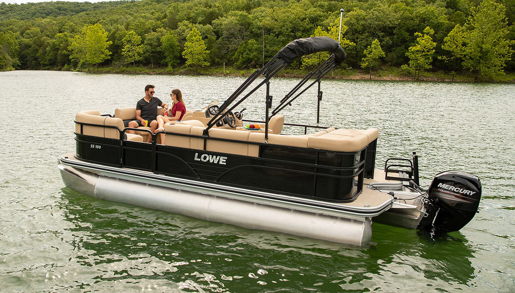 NEW 2021 LOWE 190 SS! A 90 hp Mercury Command Thrust 4-Stroke EFI outboard with power trim and a 3-year factory warranty powers this pontoon package. It also features a weld and deck limited lifetime warranty.