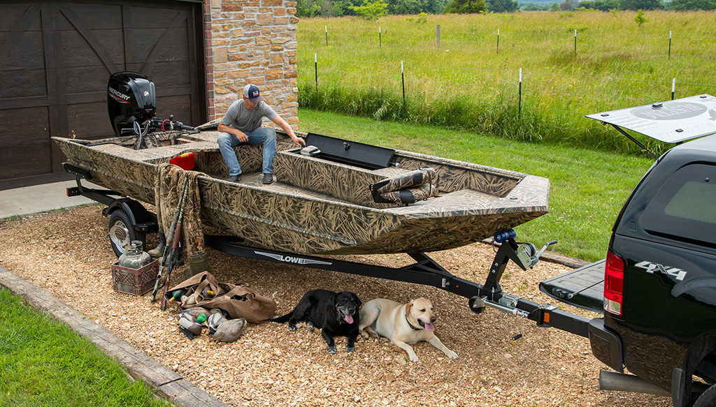 The ducks officially have nowhere to hide: Introducing the all-new Roughneck 2070 Waterfowl Tiller, only from Lowe. Designed with sportsmen in mind, this rugged, all-aluminum fishing boat is engineered to be equipped for the serious duck hunter. Enjoy loads of room to maneuver: With its tiller engine and extended deck, the 2070 Waterfowl is as huge as it is reliable. An array of premium options including a portable fuel tank, rod box and Mercury Vessel View Mobile allow for easy customization and optimal value. For duck hunting success, look no further than the Lowe 2070 Waterfowl Tiller.