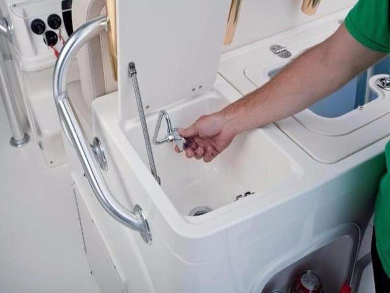 Console interior w/gelcoat-finished surface, sink, battery switch panel & 6' (1.8 m) head room