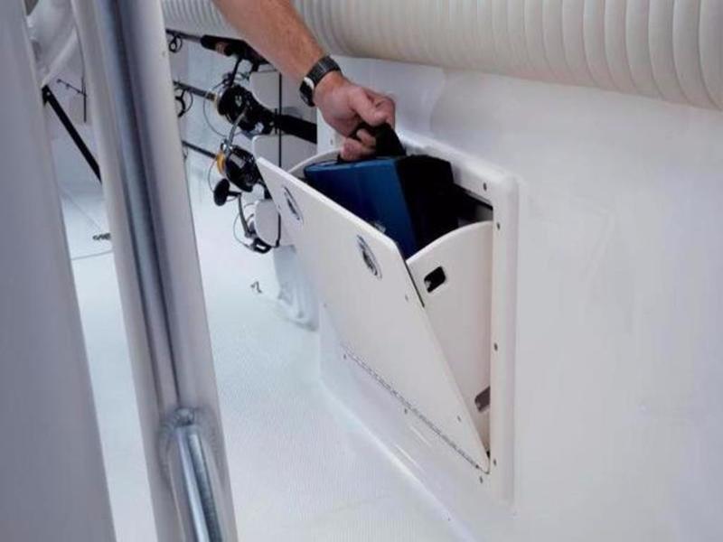 Console interior w/gelcoat-finished surface, sink, wiring access hatches, battery switch panel, battery access & 6' (1.8 m) head room