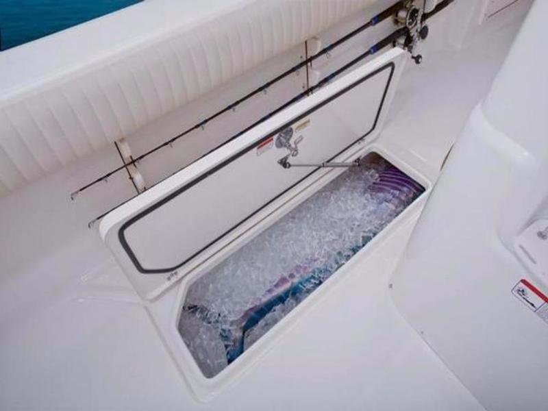 The 284 CC is well-equipped to fish, with aft in-deck port and starboard 390-quart fishboxes, an outrigger-ready fiberglass hardtop and a full-featured baitstation. And the quality of construction (100% composite) is unparalleled, the hull and deck are chemically bonded and mechanically fastened every 6" with stainless steel fasteners. The 1-piece, molded, gelcoated stringer grid reinforces the hull for a lifetime of fine performance. And it's backed by MAKO Assurance?the best factory warranty in the business.