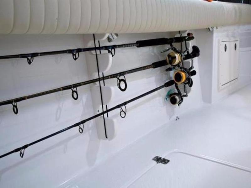 Outrigger-ready fiberglass hardtop w/5 rod holders, electronics box & 3 spreader lights