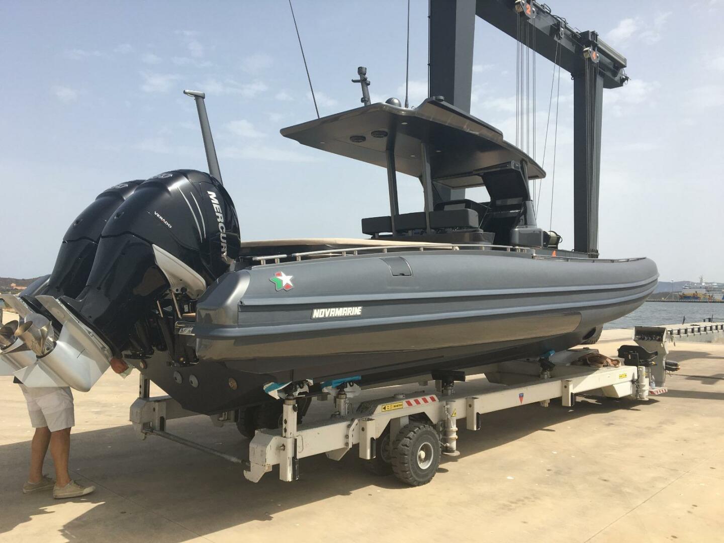 Black Shiver line is the flagship of Nova marine manufacturing: a complex product dedicated to whoever is looking for the best of technology, design and functionality.Last uniqueness, but not least in order of importance, the tubes used for the entire Black Shiver line use a special shock-resistant rubber foam that is resistant to punctures and does not deflate thus offering greater safety and stability and allowing a larger interior space because of its semicircular shape. Everything is controlled from a console which is the quintessence of technology.The Black Shiver 100 combines elegance, performance and flexibility of use. The distinctive features of the 100 are beauty, high quality of materials used, speed and safety.Such a luxurious and high-tech maxi-tender will blend perfectly with any large luxury yacht. The Black Shiver 100 combines elegance, performance and flexibility, making it perfect for long rides and daily use.With a high-tech and elegant design, it fits any mega yacht thanks to the customizations available. This inflatable boat offers reliability and safety even in rough sea conditions, ensuring unparalleled comfort. Equipped with two 350 Mercury Verardos, its hull is tested to ensure optimal performance in every situation, transforming every boat into a unique and exciting experience.Deck accessories designed make it comfortable and pleasant, ideal for both sailing and relaxing at anchor. At Nova marine, they know that true greatness is not measured in meters. The BS 100 embodies this philosophy: it is proof that compact dimensions can offer emotions and performance comparable to those of larger boats.The hull was obtained with water lines capable of facing the sea formed in absolute safety and without ever giving passengers excessive sensations. Among the fittings, another thing we appreciated is the toilet inside the deck structure that also houses the bridge, a small room that also offers a sink and the space to change and take a showerThe black livery goes very well with the teak of all walkable surfaces, also highlighting the excellent quality steels used both for the bollards and for the handrailsOn this model, the windshield, thanks to the folding upper part, gives the driver and co-pilot the opportunity to adjust the ventilation of the driver's seat in a very efficient way.As far as the dashboard equipment is concerned, the shipyard has selected products of excellent quality well integrated with the instruments and maneuvering devices of the Mercury. Even the systems are made with care, everything is arranged in professional order and clearly identifiable in its functions.The most striking thing about this rib is the ease of conduct at all speeds, also thanks to the electronic throttles of the Mercury that allow millimetric throttle controls. The hull never breaks down and never beats, it always maintains its trim and its course.OPTIONS AND FEATURESSide-Power Bow thrusterDeck in solid teakBow converting tableStern converting tableFull Carbon Hard-TopManually foldable windscreenPolished stainless-steel anchorPolished stainless-steel anchor chainStern Maxi FlagpoleAdditional stern swim ladderRefrigerated thermal lockerBow towing system on 3 pointsLifting system with ringsInstall handrail on driving console for co-pilotPair of side teak step on the tubeRemovable bow ladderCHARGEMASTER battery chargerLumi shore Supra SMX53 underwater lightsAdjustable searchlight installed on the T-TopUpgraded audio system JL MARINEGarmin Electronics Package:Garmin touchscreen display GPSMAP® 8412Fixed VHF 315iEcho sounder moduleGarmin AIS 800 TransceiverFlir Thermal Camera IP M332Ray marine Radar antenna patch E92142Cover for bow couchCover for stern couchCover for seat front part of the driving consoleCover for drivers' seatsCover for helm instrumentsBow sunshadeStern sunshade