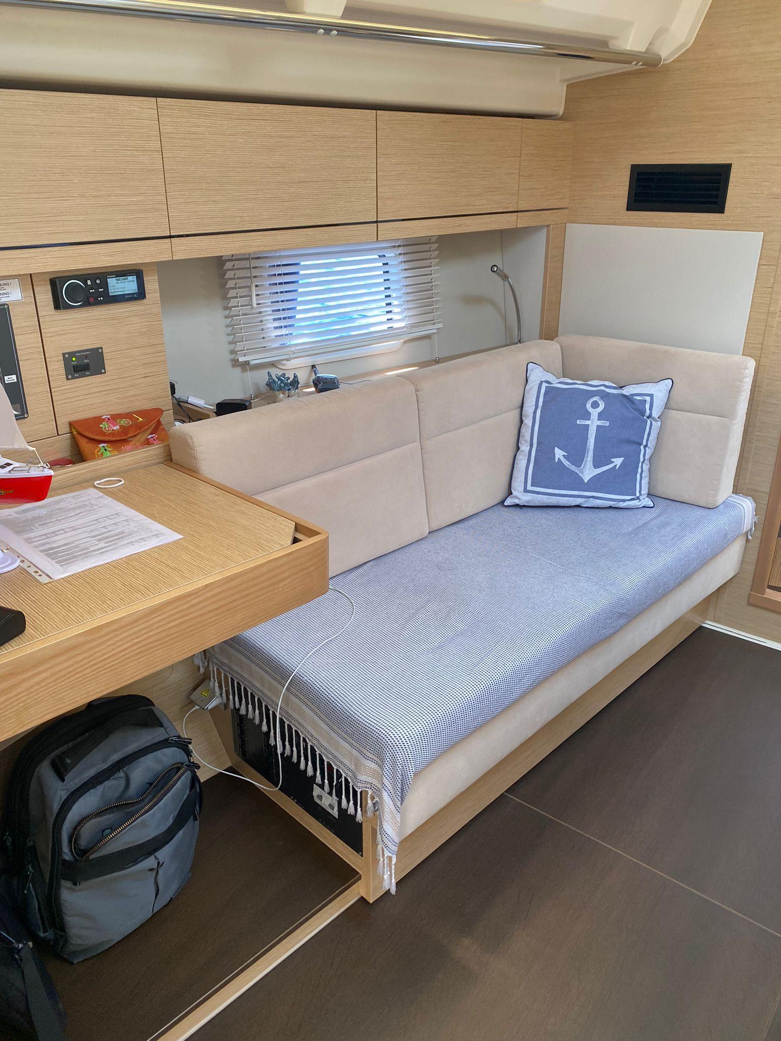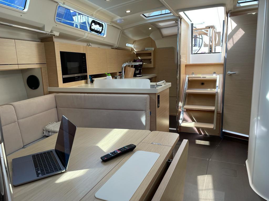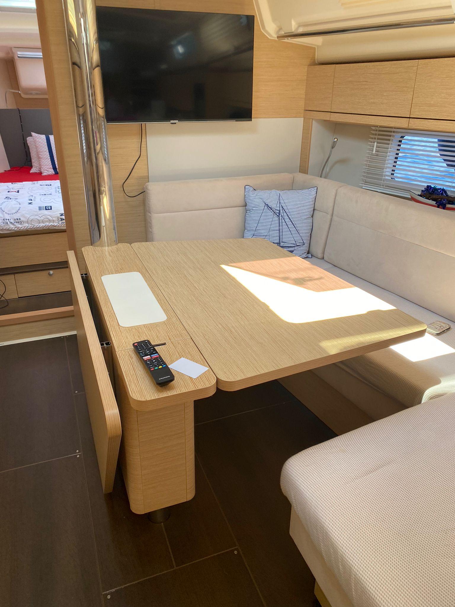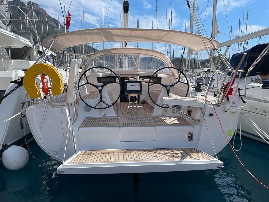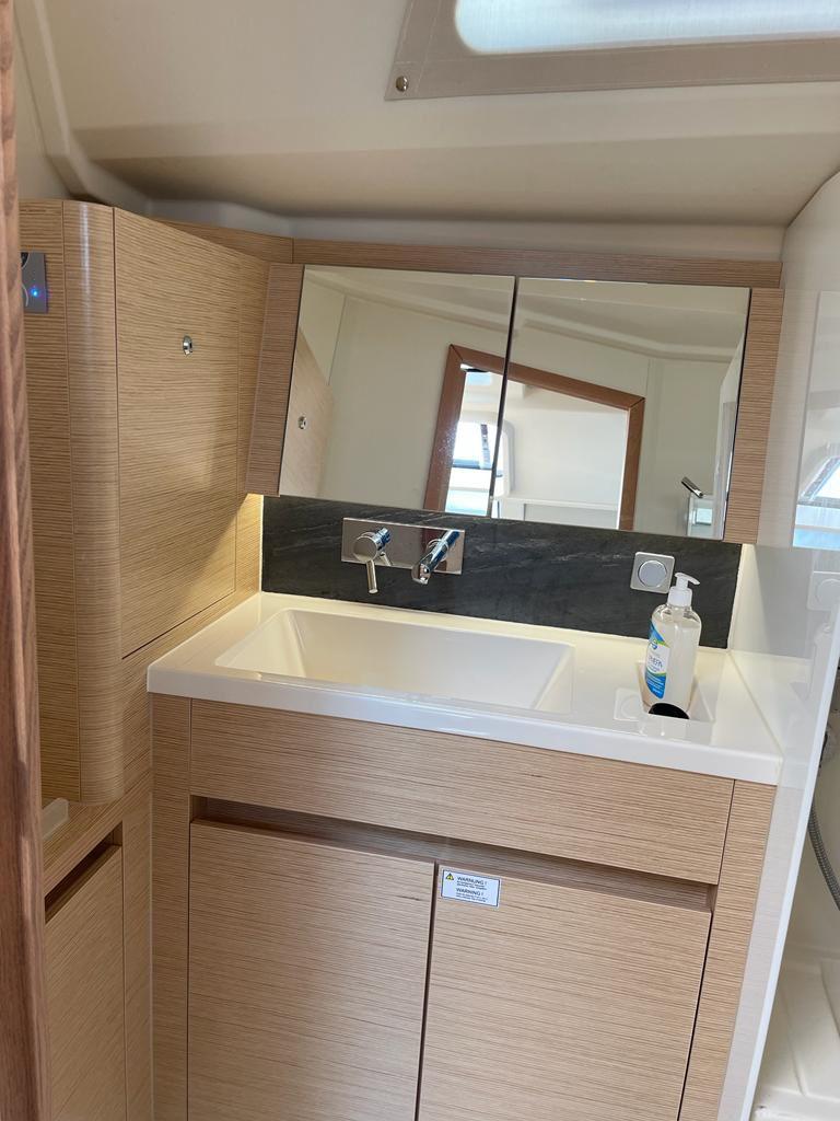 2 385w solar panels have been added on the chrome bar and work smoothly with Victron Mppt. As you can see in the attached specifications, many option packages have been added to the boat as factory-issued. For example air conditioning, additional battery, inverter, ladder for swimming platform, bow thruster and separate battery, microwave oven, extra refrigerator, carbon rudders, extra hand radio, extended batteries and inverter, electric winches, roller furling sail, 57hp Yanmar engine, saildrive and interior furniture colors, foldable double and single extra bed in the saloon etc.