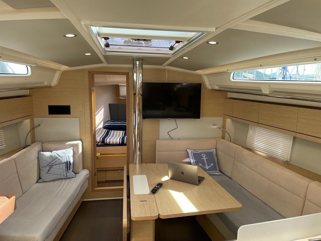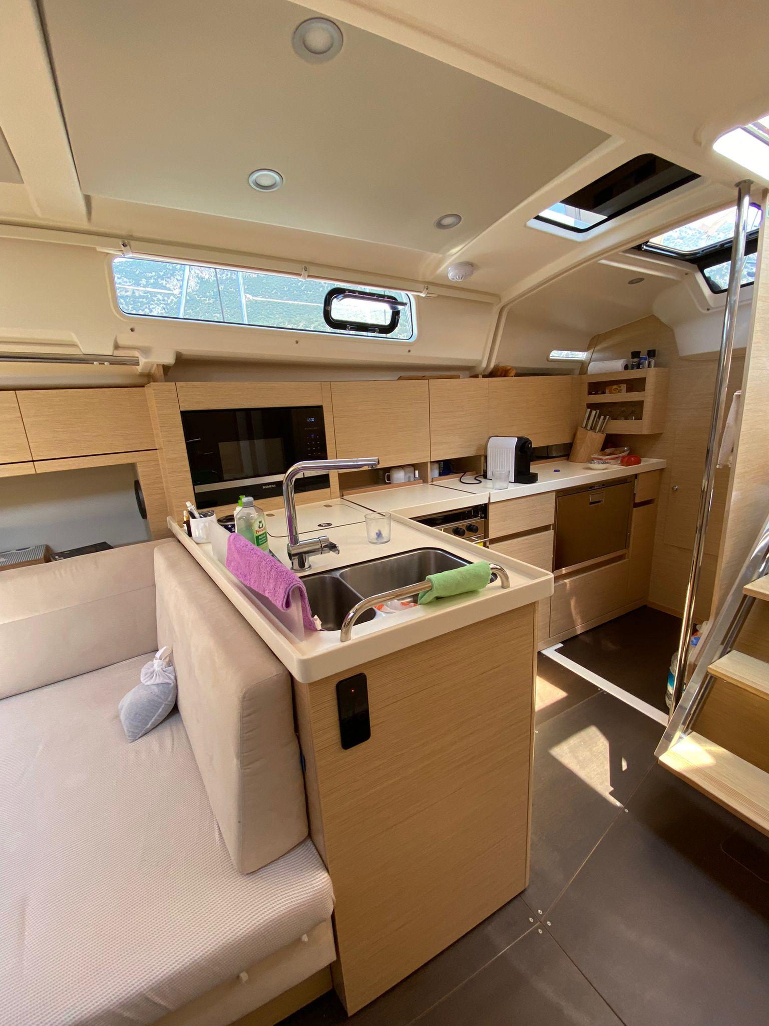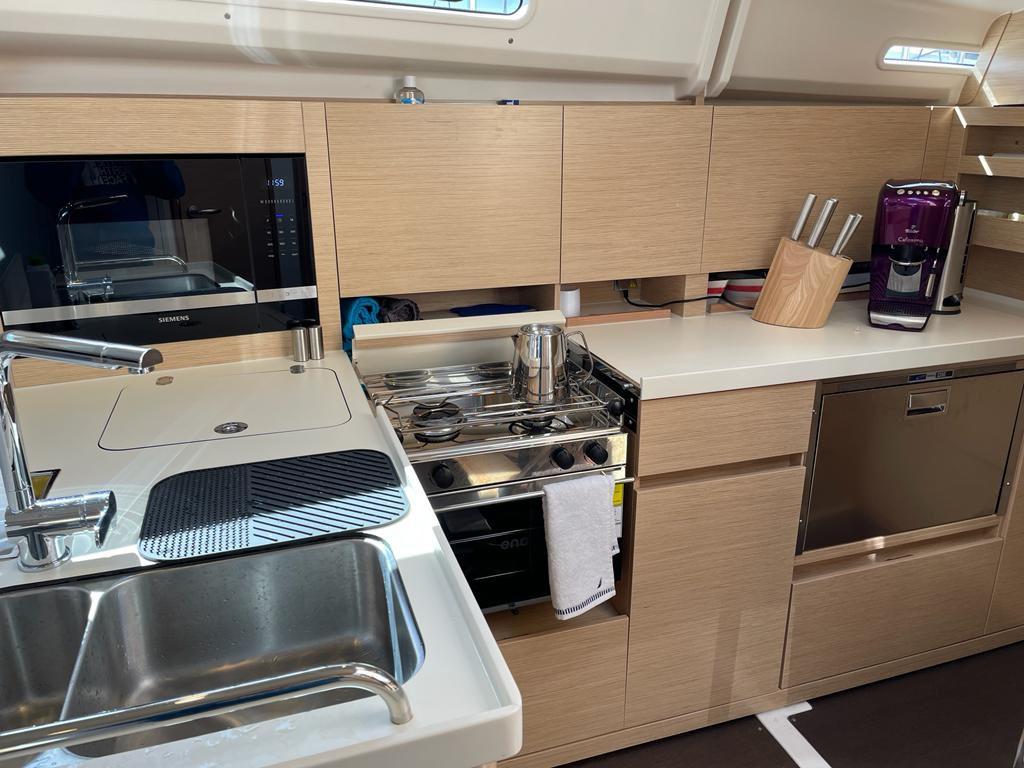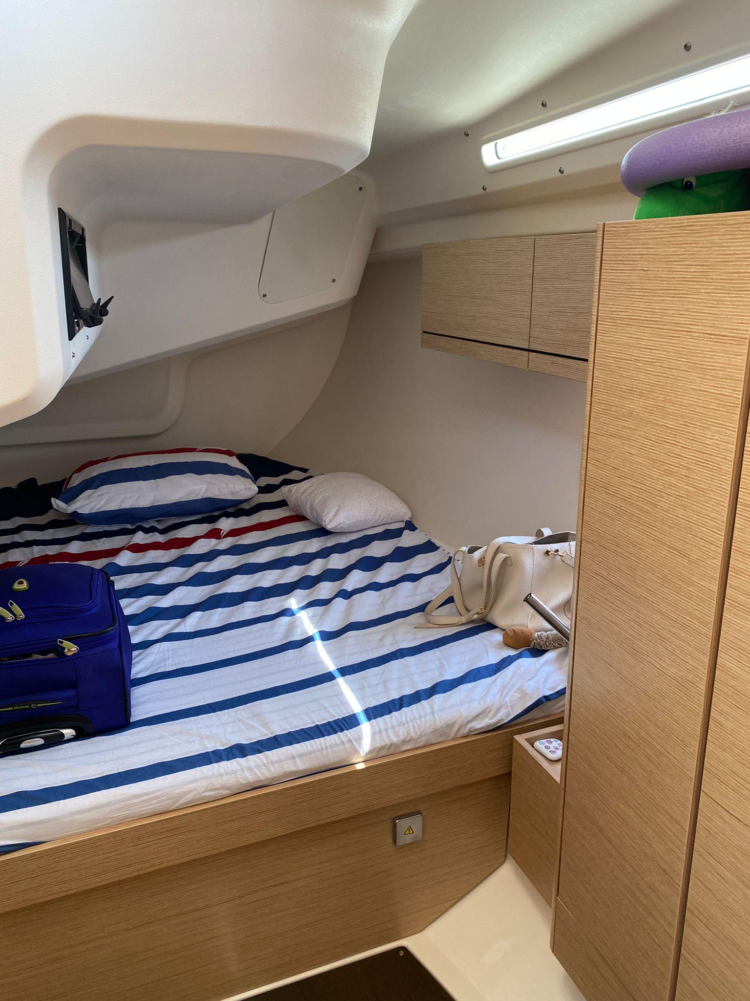 2 385w solar panels have been added on the chrome bar and work smoothly with Victron Mppt. As you can see in the attached specifications, many option packages have been added to the boat as factory-issued. For example air conditioning, additional battery, inverter, ladder for swimming platform, bow thruster and separate battery, microwave oven, extra refrigerator, carbon rudders, extra hand radio, extended batteries and inverter, electric winches, roller furling sail, 57hp Yanmar engine, saildrive and interior furniture colors, foldable double and single extra bed in the saloon etc.