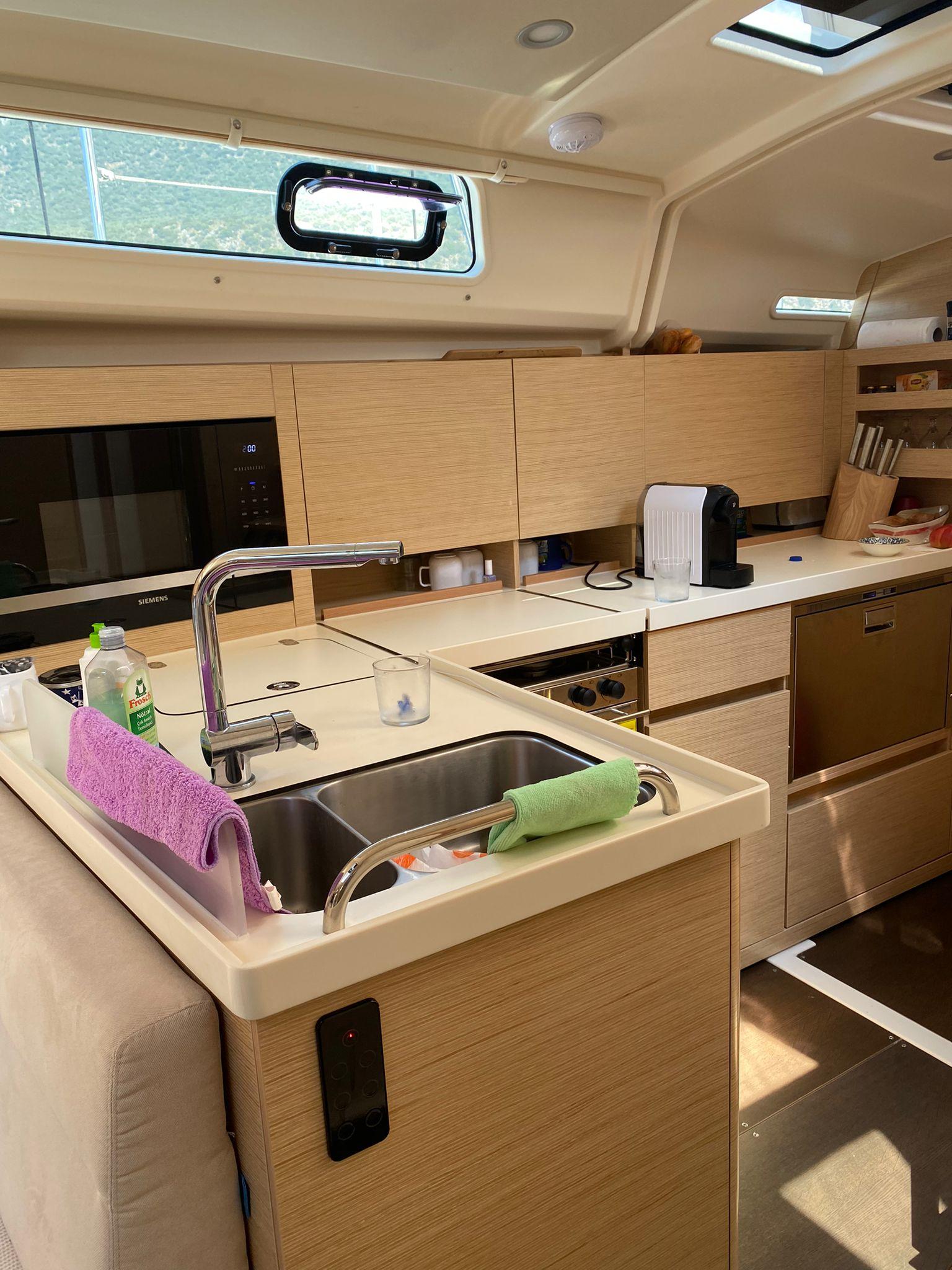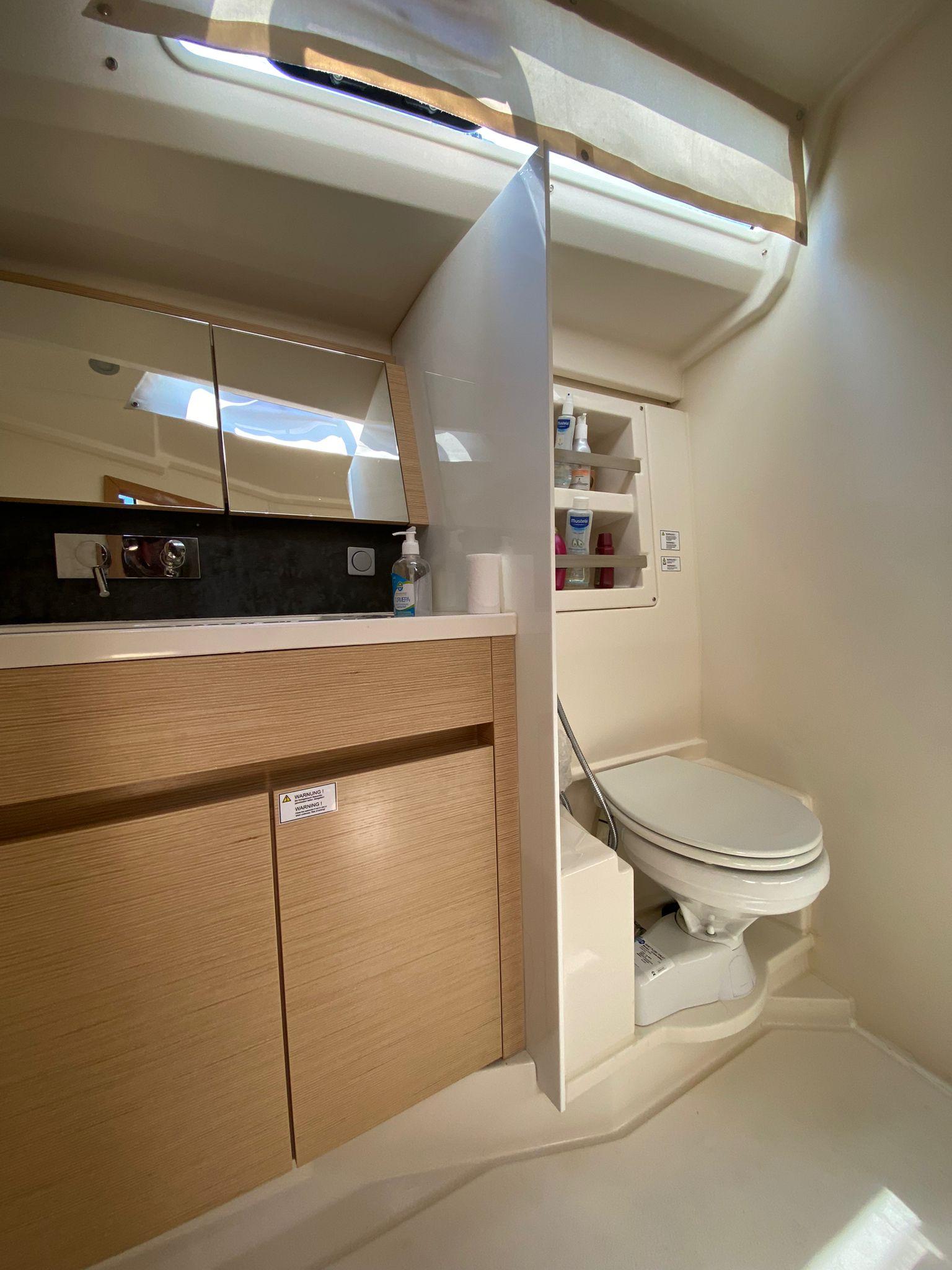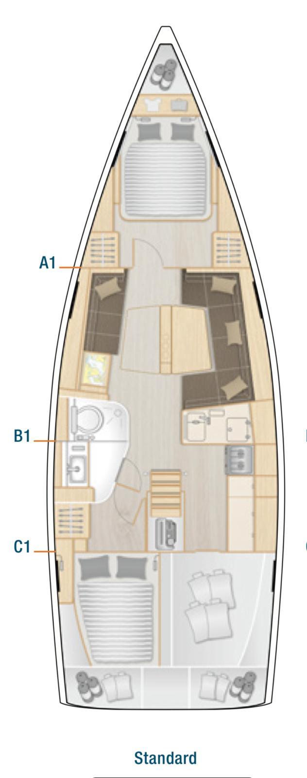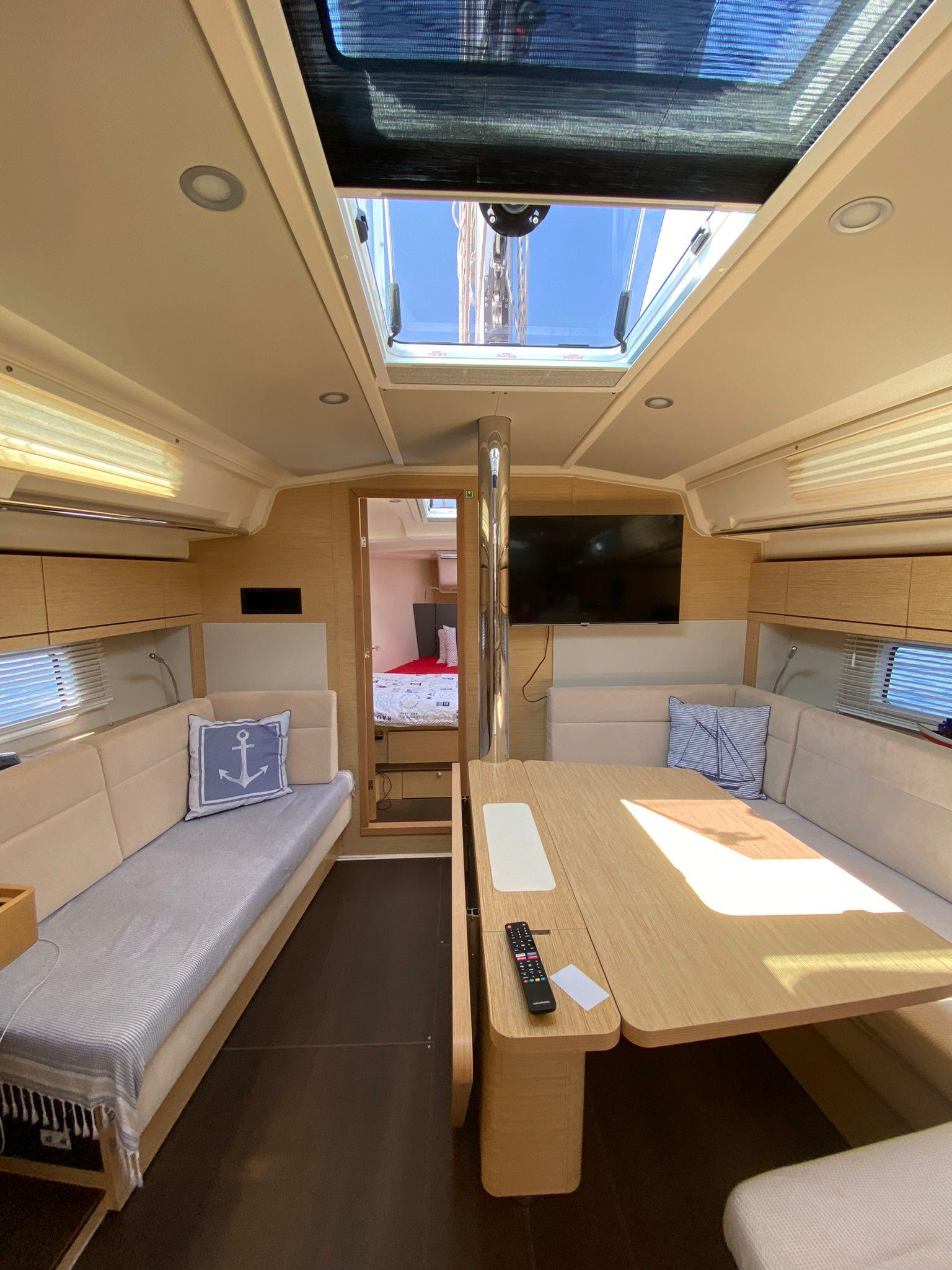 2 385w solar panels have been added on the chrome bar and work smoothly with Victron Mppt. As you can see in the attached specifications, many option packages have been added to the boat as factory-issued. For example air conditioning, additional battery, inverter, ladder for swimming platform, bow thruster and separate battery, microwave oven, extra refrigerator, carbon rudders, extra hand radio, extended batteries and inverter, electric winches, roller furling sail, 57hp Yanmar engine, saildrive and interior furniture colors, foldable double and single extra bed in the saloon etc.