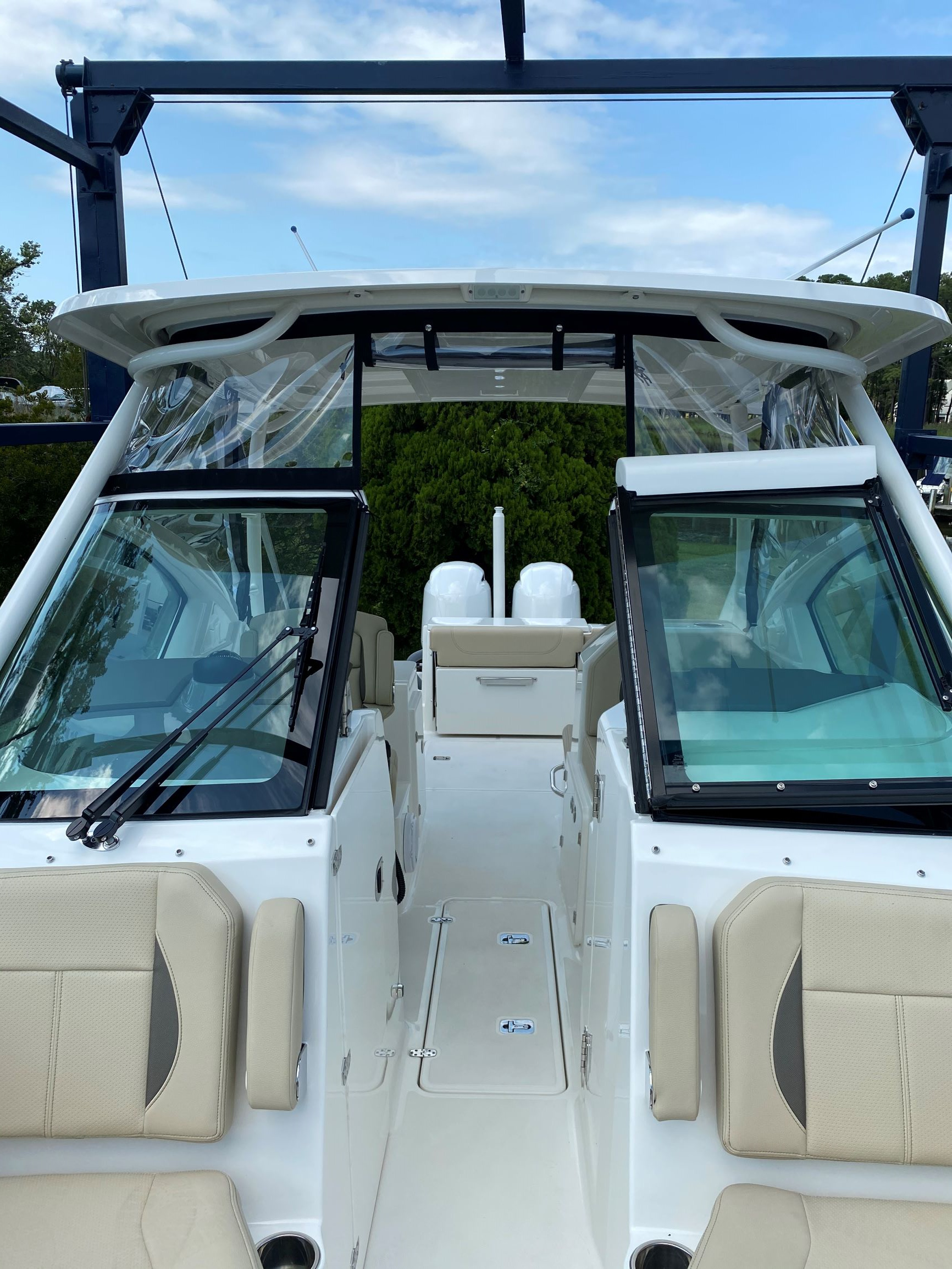 Featuring a fiberglass hardtop, tempered glass windshield engineered with a vacuum infused fiberglass frame with roomy walkthrough and plenty of storage, the DC 266 has an LOA of 27' and is powered by dependable twin Yamaha Outboards. The adjustable helm seat allows for excellent access to the instrumentation and controls as well as the optional Garmin electronics. The exterior seating is complemented by the open bow design that has full wrap around seating with plenty of room for family and friends. Add the sunpad option and the social zone quickly converts to a private oasis. A head and sink allow for freshening up dockside.