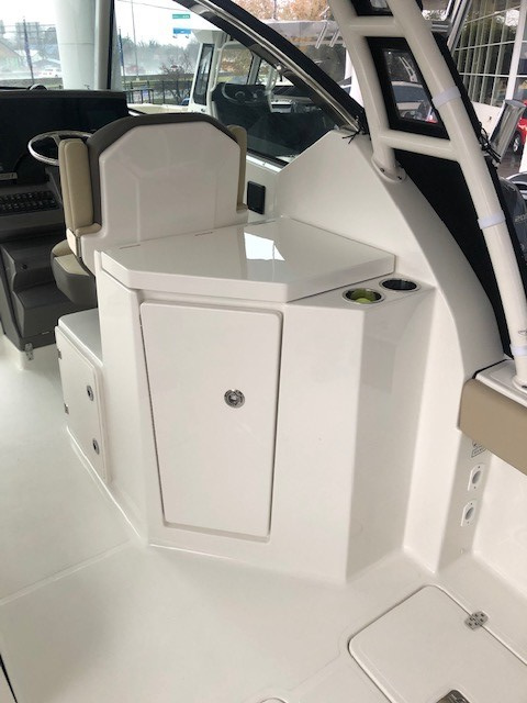 Integrated hardtop, a crystal–clear tempered windshield, convertible seating arrangements and product specific storage are a few of the highlights in Pursuit’s luxury dual console. The forward bow seating is perfect for lounging when the weather is right or you can dip behind the protection of the full windshield and hardtop arrangement to escape the elements. The wide-open layout is built around sport utility, fish, cruise dive and entertain in a luxury dual console that sets the standard for the category. Give us a call at 410-286-1350 for more information