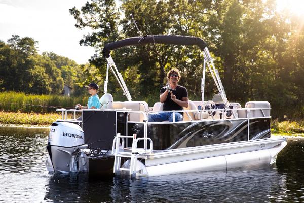 Upgrades Include: Black Pearl Fence, Individual Seat Covers, High Pressure Washdown System, Garmin Striker, Honda Pre-Rig, Gen II Tritoon Package, Honda 150 HP motor