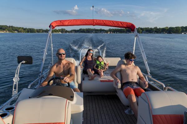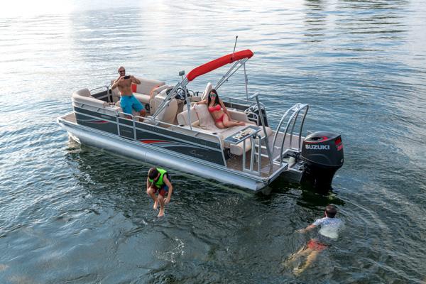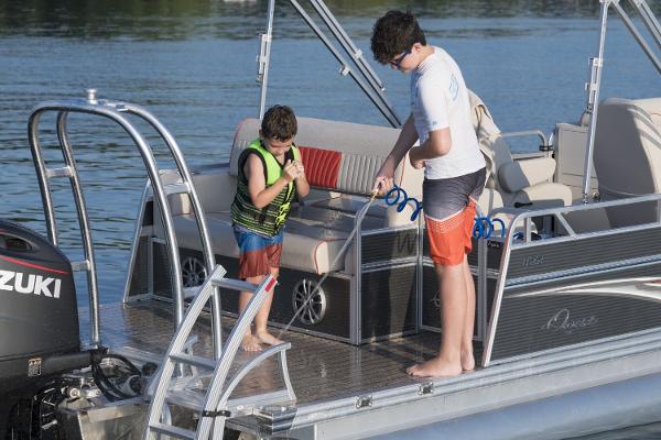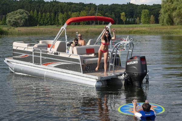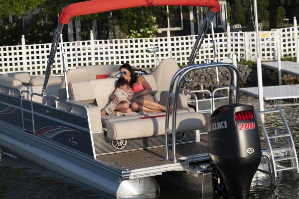 The Splash Pad models all feature a large rear multi-position lounger that can quickly convert from a bench, to lounging, to a large flat bed. It is an ideal feature to have while cruising, relaxing, and hanging out at the sandbar. The enclosed RW models have a rear wall which allows full enjoyment of the lounger while under power.