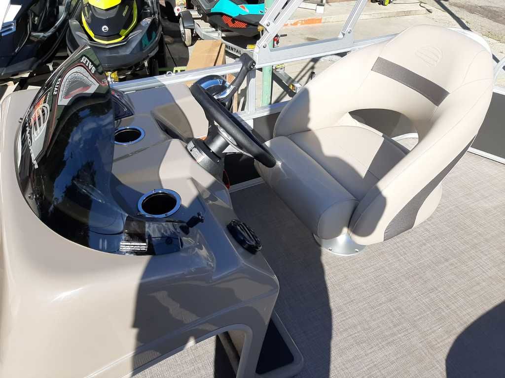 Young kids? No problem. All the gates open inward for maximum safety, and the fencing is tall enough to keep little wanderers inside the playpen. Inside that playpen, you’ll find three lounge seats, all with spacious, rotomolded storage below—plenty of room for water toys, safety equipment and snacks. Speaking of snacks, there’s room for an optional cooler under the console.