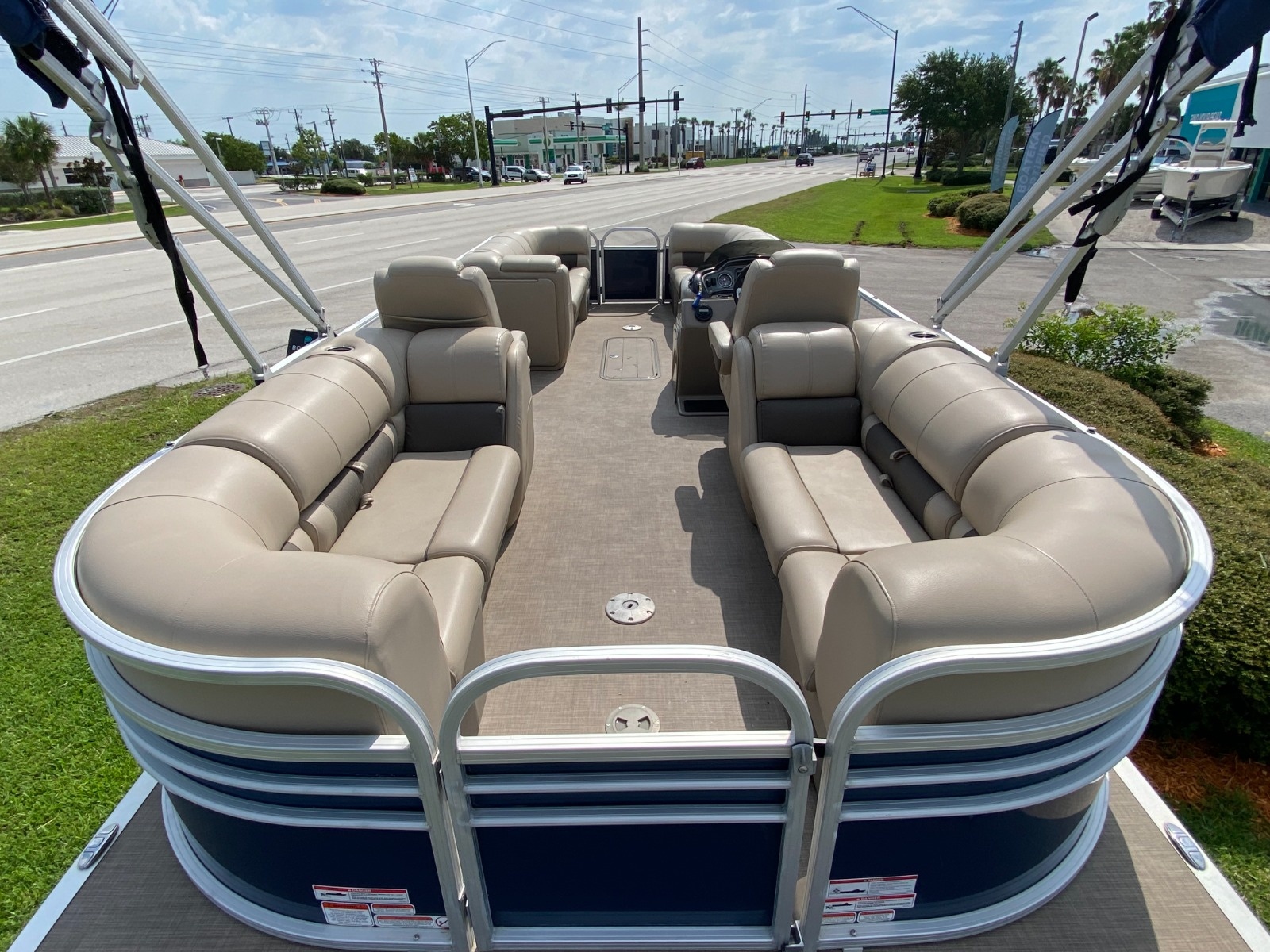 The PARTY BARGE 22 XP3 offers everything from four lounge seats to the new 10' Bimini top to swim platform to the new stereo and more. All that, combined with things like three inward-swinging gates, padded woven flooring and cooler storage, ensures this pontoon boat is ready for a full day of fun. Then, it adds in the XP3 performance package, which includes three 26” pontoon logs with lifting strakes, underpinning and hydraulic steering to raise the horsepower rating to 200 and provide the performance needed for tubing and cruising! The XP3 package also includes in-deck storage, perfect for stowing watersports gear.
