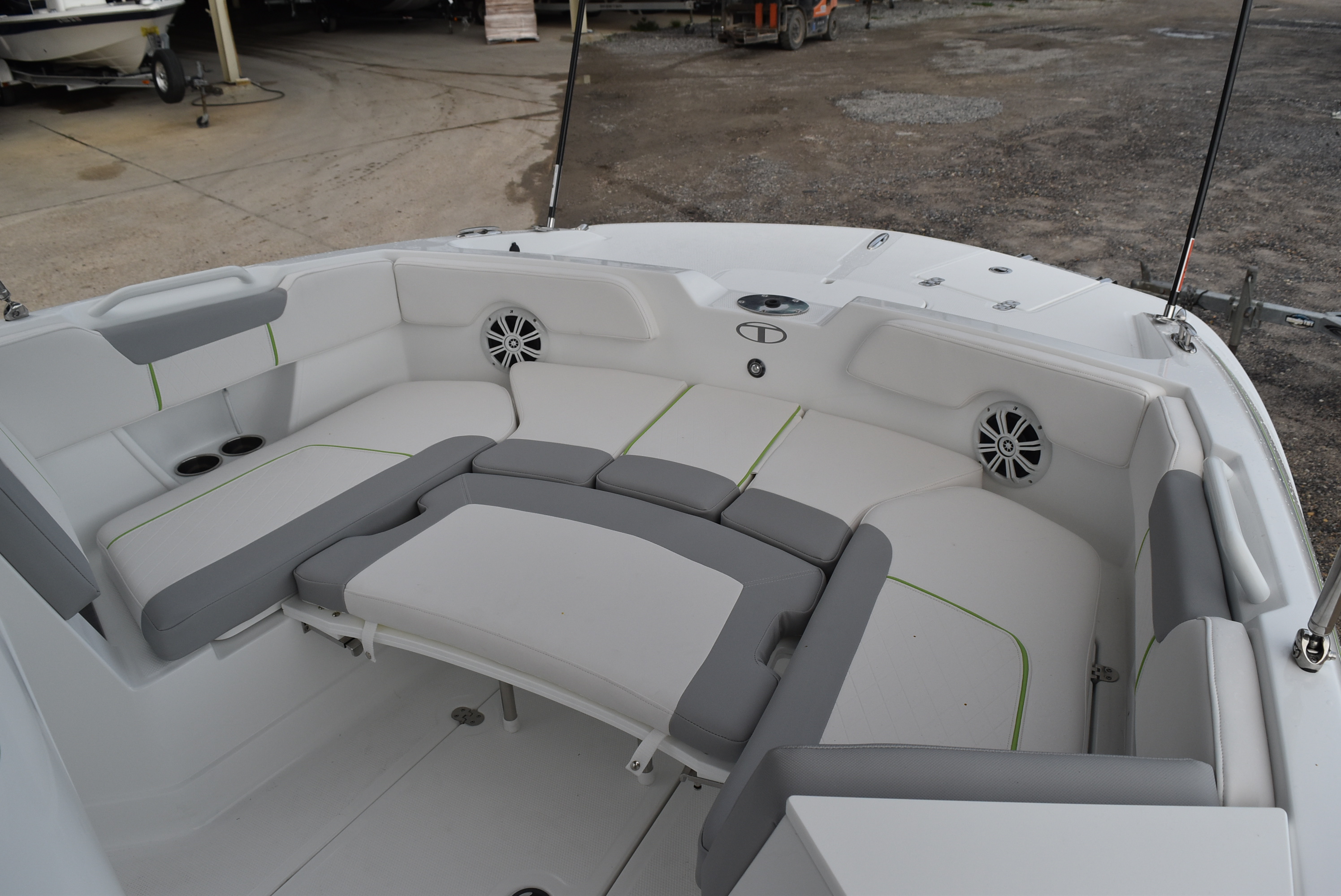 Aft lounge w/two 56-qt. (53.00 L) storage compartments (starboard being dry storage) & 36-qt. (34.07 L) cooler