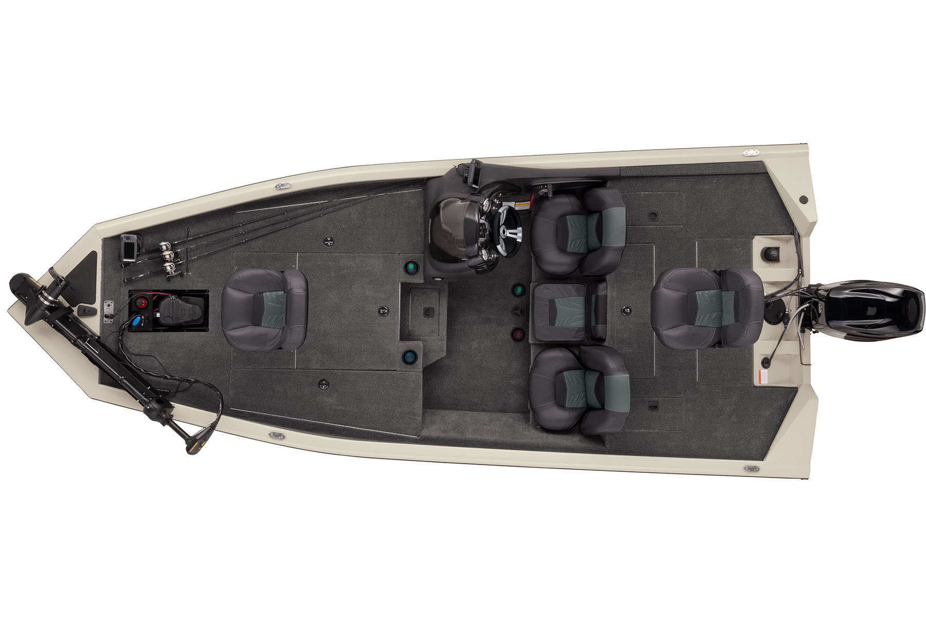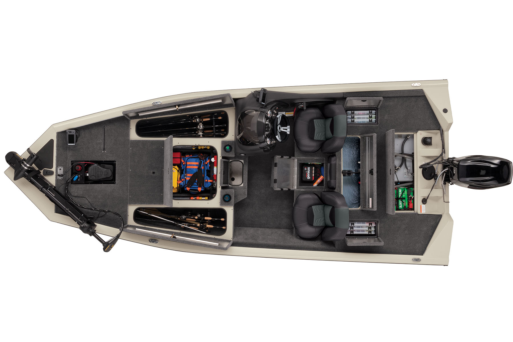We’ve taken America’s favorite boat and optimized it for tournament performance with bow and console fishfinders, a 24V, 70-lb. thrust trolling motor and custom aluminum trailer wheels to improve your tourney experience. The TRACKER® Pro Team™ 175 TXW Tournament Edition features a brand new, tournament-style deck layout—port and starboard 7’ rod boxes with tip organizers, a giant center bow tackle box and bag organizer, a cooler in the step up to the bow deck flanked by 2 drink holders