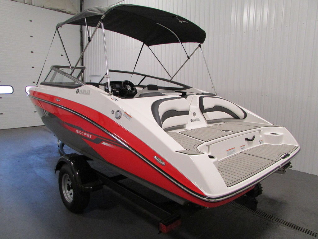 NEW 2021 YAMAHA 195 SX! A 1,812 cc Yamaha SVHO (Super Vortex High Output) 4-stroke EFI marine engine powers this jet-powered fiberglass bowrider. This is the best value on the water! A top selling 19 foot family runabout packed with value and Yamaha innovation. Notable features include Yamaha’s patented Articulating Keel, spacious stern lounge, bimini top, and trailer—all at no extra cost. Standard features include: removable bimini top w/storage boot, full walk-thru windshield, fiberglass passenger console w/large storage compartment, passenger glove box, fiberglass driver console w/under storage, 4.3” Connext touchscreen, integrated smart phone holder, Jensen AM/FM Bluetooth stereo w/AUX and USB ports, (4) Polk speakers, Yamaha “No-Wake” mode and Cruise Assist system, blower, bilge, electric horn, navigation/anchor lights, 12-volt power outlet, tilt steering, bow seating w/under storage, bow filler cushions, bow anchor storage, driver/passenger swivel bucket seats w/sliders (driver’s seat has flip-up bolster), L-shaped cockpit seating w/under storage, removable cushion for center walk-thru transom, large in-floor ski/board storage compartment, bring-aboard igloo cooler, removable table w/beverage holders, fiberglass no-slip floor w/snap-out seagrass flooring, stainless beverage holders, passenger safety handles, integrated padded swim platform w/3-step telescoping boarding ladder and padded seat backs, stern wet storage, transom stainless ski/tow hook, (6) stainless pop-up mooring cleats, 40-gallon fuel tank, marine cranking battery, fire extinguisher, on-off battery switch, 8-person carrying capacity, 5-year hull warranty, and 1-year engine warranty. Also included is a Shorelandr bunk trailer including: swing tongue, 14” wheels, composite fenders w/steps, swivel jack, surge disc brakes, LED lights, tie down straps, and bearing buddies. Trades will be considered and delivery is available. Competitive financing rates and terms are also available. Approximate payment of $323/mo. w/20% down for 144 mo. (WAC). Leaders RPM is one of the largest marine and powersports dealers in the Midwest with over 70,000 sq ft of showroom, parts, and service under one roof located in Kalamazoo, MI. Price is plus freight, prep, and sales tax/fees and is subject to change without notice. All rebates to dealer. Contact Us with questions or to request more information.