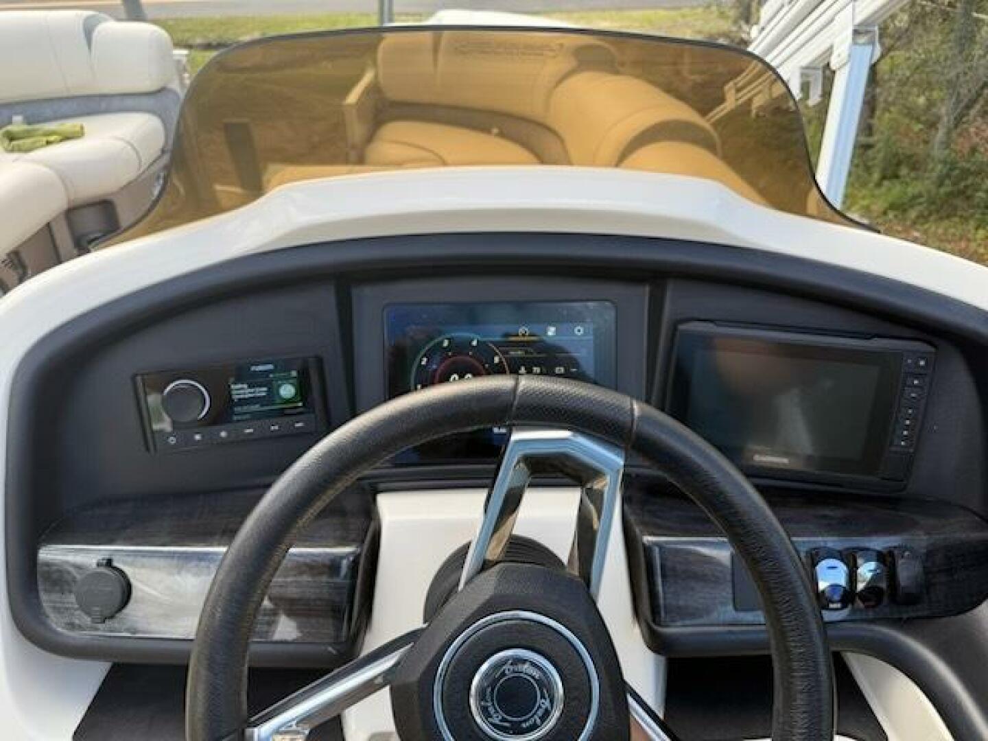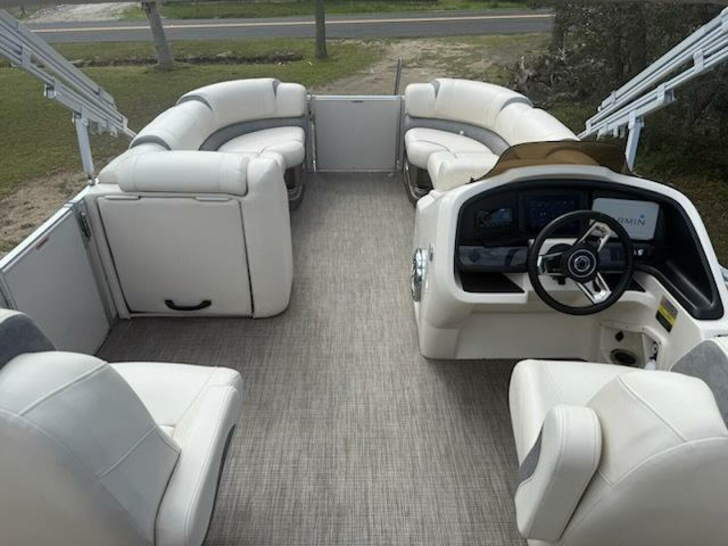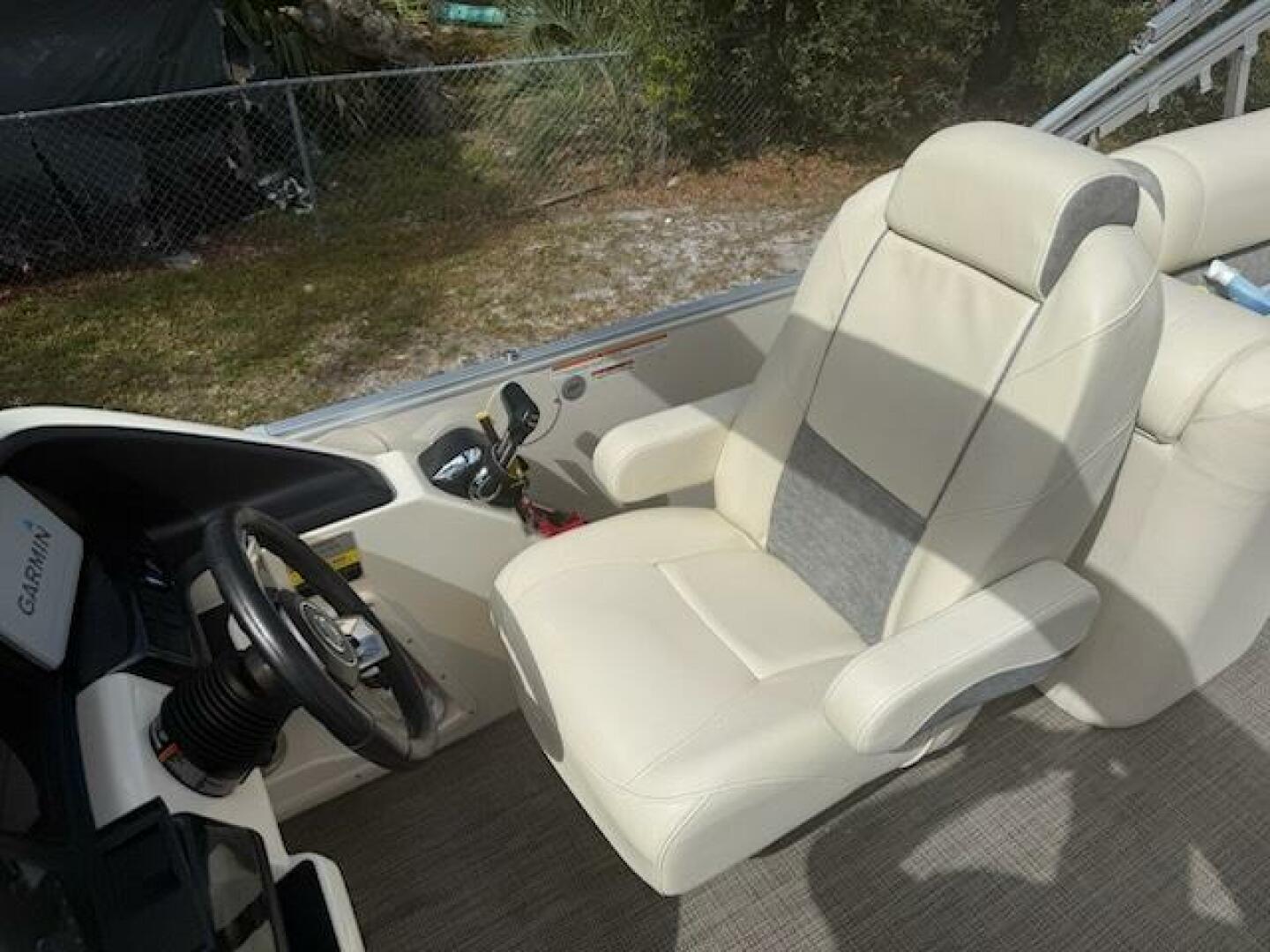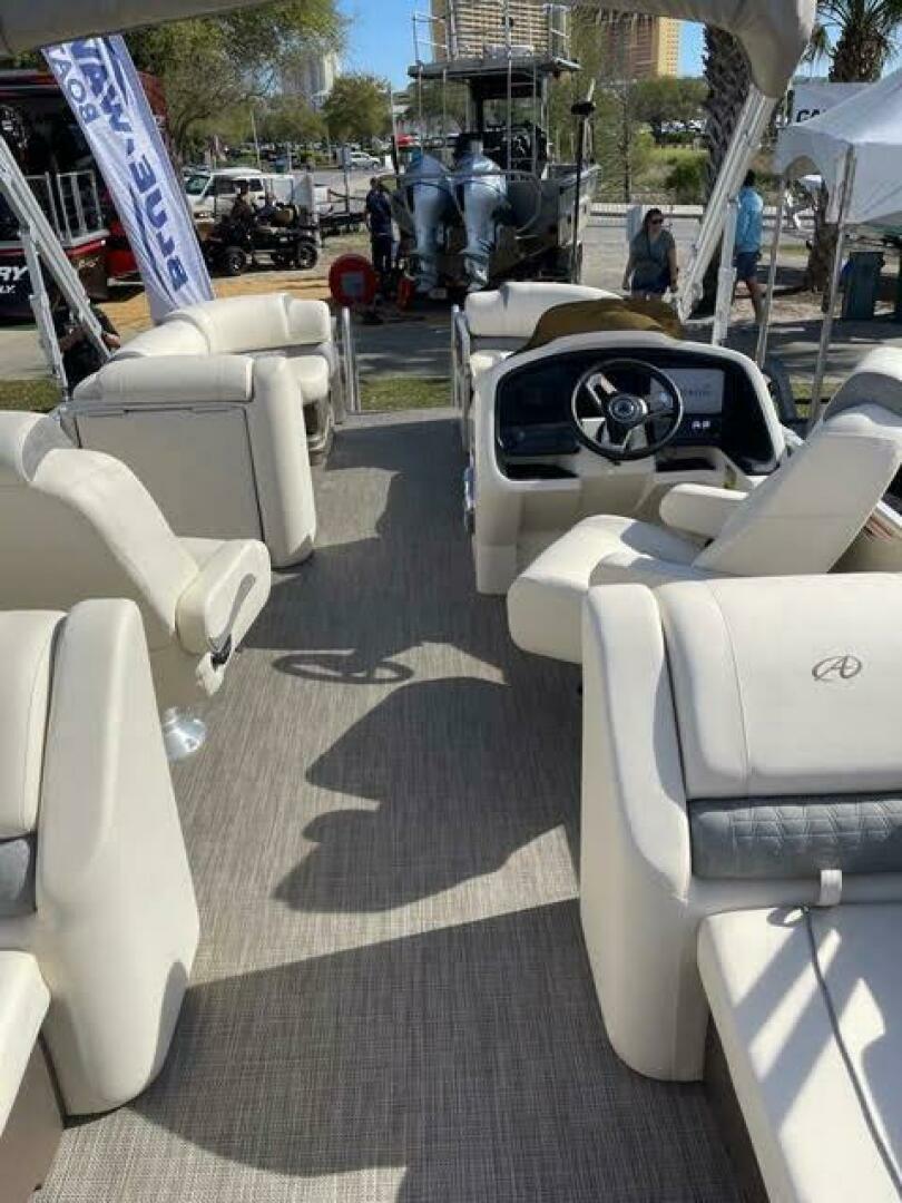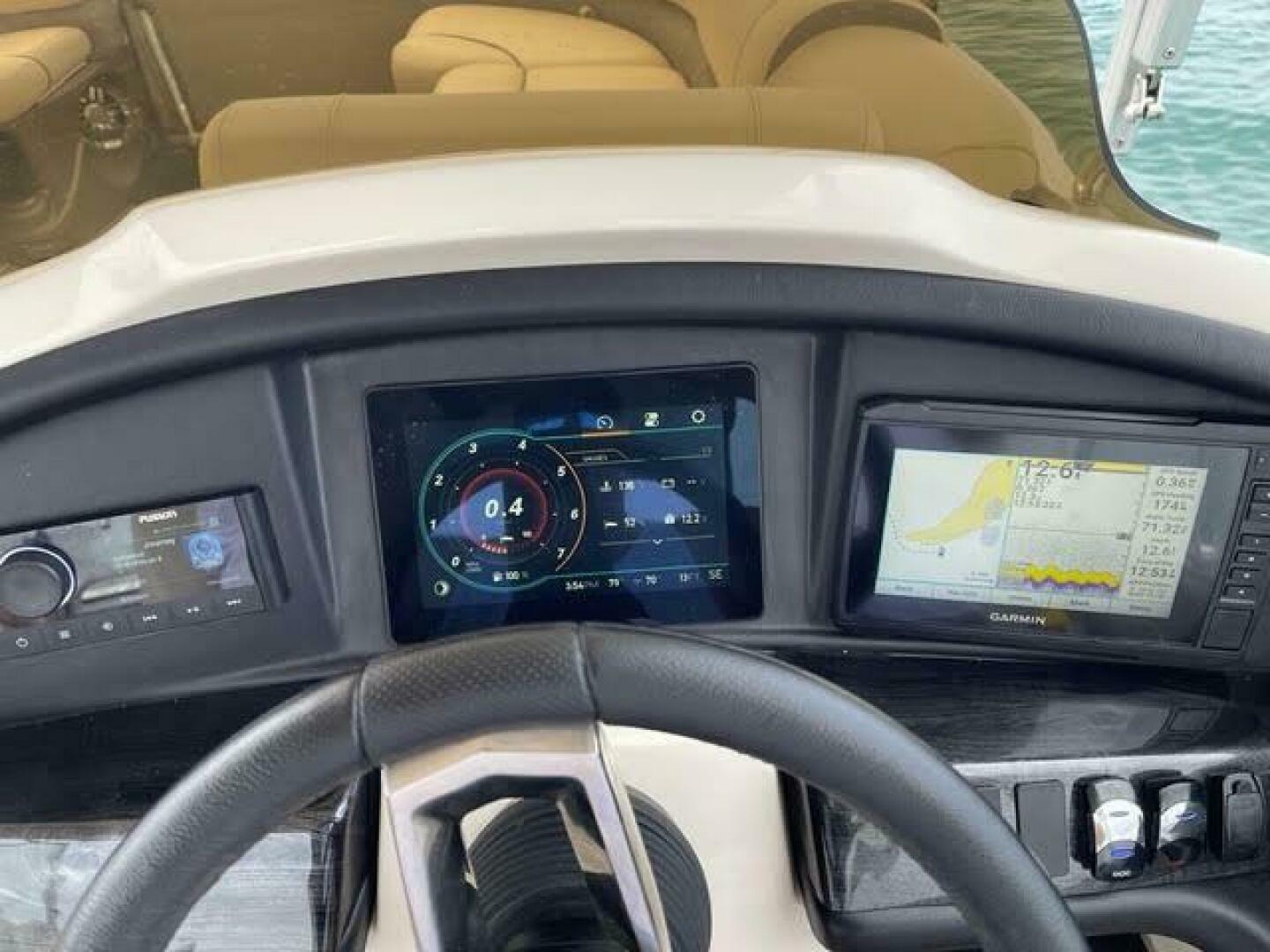 Avalon Saltwater series Catalina Platinum QL series Tritoon.This boat is loaded and only has 19.4 hours on it. It just had its 20-hour service and is ready to go for the water.This is a 25' Tritoon with Dual Bimini tops, and a 300 HP Suzuki Outboard. It was purchased New in March of 2023 and I am the original owner. Motor was flushed after every use. Boat comes with remainder of the transferable factory warranty. Includes all the safety gear needed for the water. This has rated capacity for 17 peoplePrice includes matched Aluminum Trailer!! List of Options included:Ultra Fine Interior Package -features a premium vinyl upgrade with a focus on comfort and style, including option Ultrafine touch vinyl, high-back reclining chairs, and upgraded flooring. Fusion 1000W High Performance sound PackageGarmin GPS/ Depth FinderElectric Power Assist SteeringBlack Out PackageWave Glider 27 Package- features triple 27-inch pontoons with high-performance lifting fins, designed for superior buoyancy and performance, offering a stable and smooth ride, even in rough waters, with enhanced fuel efficiency. Under Rub Rail Lights Saltwater Upgrade Package-include zinc anodes, additional fuel/water separators, and sealed keels. 6 Fully Welded FinsSki Tow BarDouble Bimini TopsFuel Capacity 58 gallonsRated for 400HPDual BatteriesUnder Seat StorageChanging Curtain All required Coast Guard equipment plus Anchor, Dock Bumpers, Dock Lines!The interior is flawless, all seats are in like new condition. Boat was cleaned and wiped down after each use. Boat runs perfectly and it really moves. Top speed is 45MPH and handles great. Boat was always covered when not in use. Boat comes with custom cover.