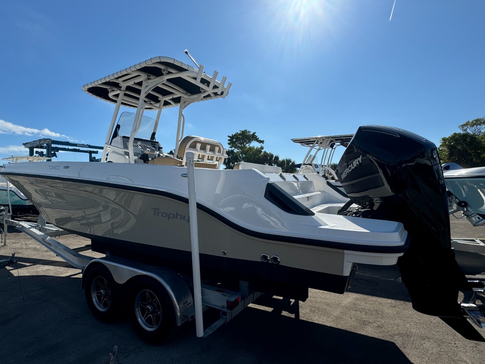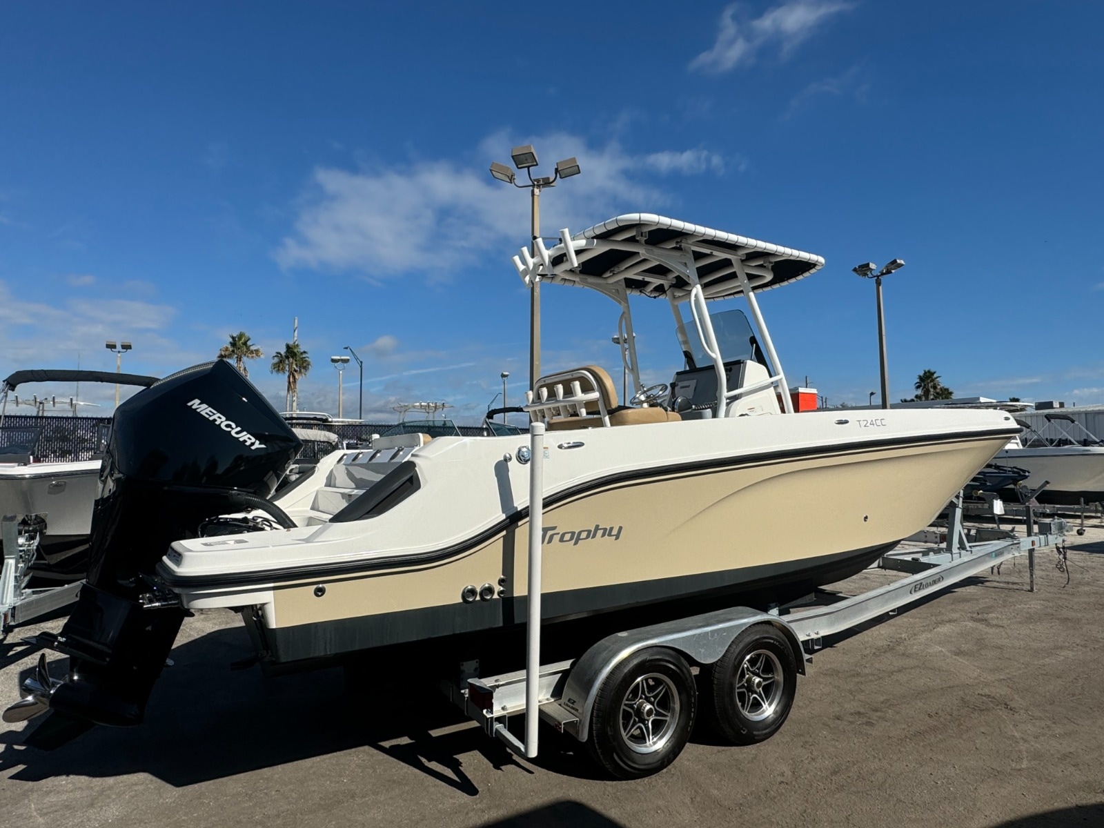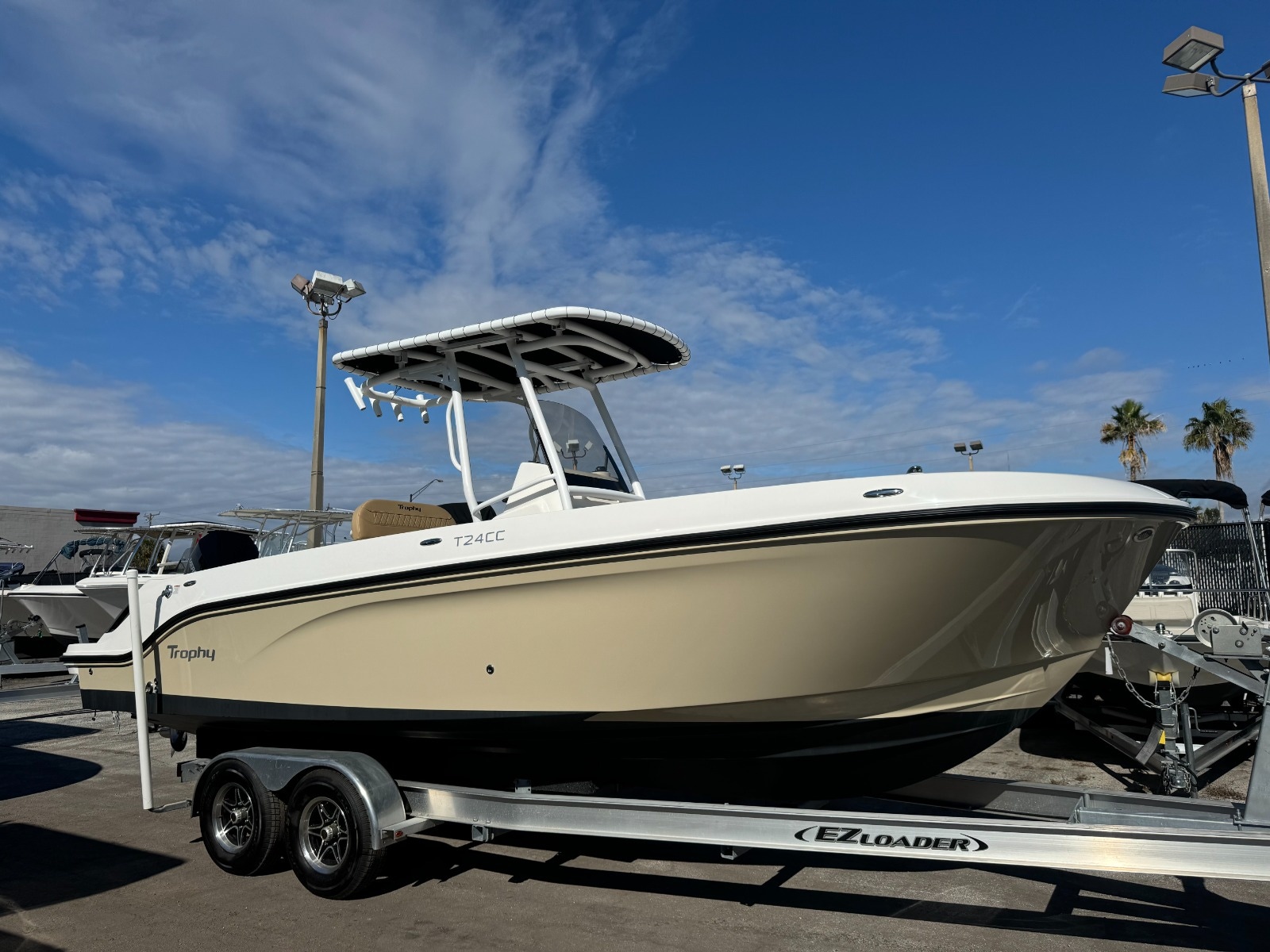 The newest addition to the Trophy series innovation expands their center console capabilities with increased fuel capacity, rugged fishability, increased storage and amplified cruising comfort adding up to incredible value. Built on a deep V-hull foundation, the T24CC accommodates up to 12 people on board, making this the perfect family fishing boat for inshore and coastal angling as well as entertaining. Discover the same user-friendliness and convenience features found in other Bayliner models in addition to new options designed to give you greater confidence in all your pursuits.