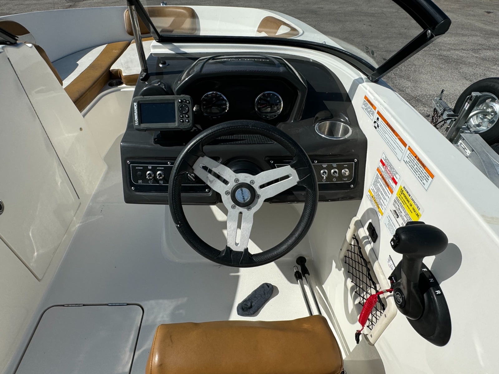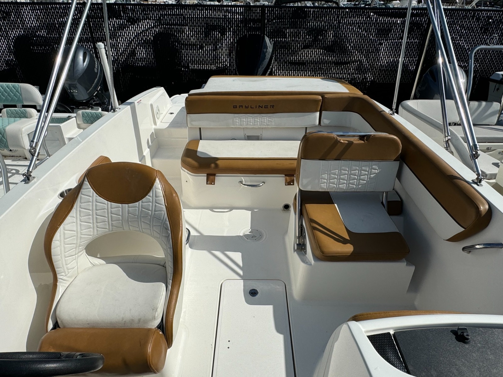A larger version of our VR5, the VR6 is also all about space and unparalleled roominess. It combines Bayliner’s category-leading BeamForward™ design and AftAdvantage™ concept—which increases the self-draining cockpit’s seating area by adding the swim platform at the end of the running surface. This boat maximizes space and value like never before—regardless of whether you choose outboard or sterndrive power. You’ll also find pleasant surprises like a lockable enclosed changing room (head optional), and aft-facing companion/observer seat that’s ideal for water sports and—with the addition of a filler cushion—creates a comfortable U-lounge that turns the whole aft section into an inviting gathering area. This boat is powered with a brand new 200HP Mercury motor and includes a 3 Year Warranty!