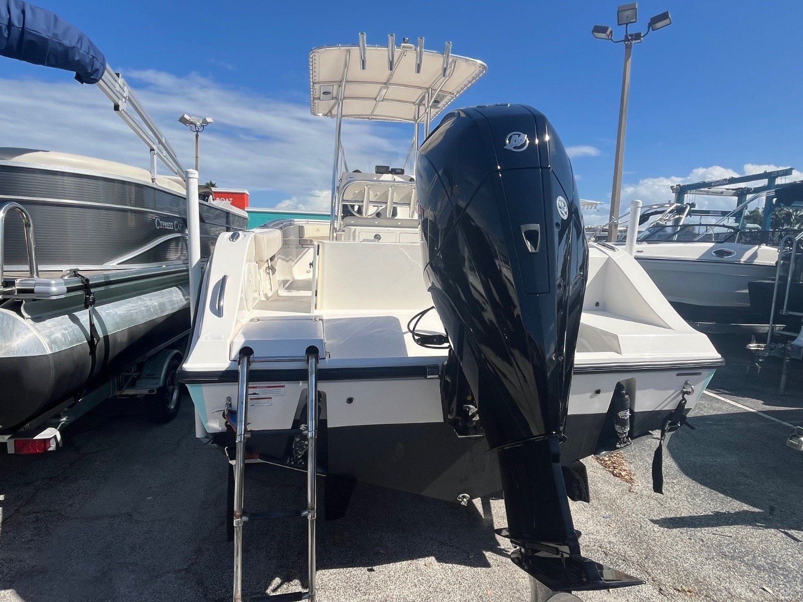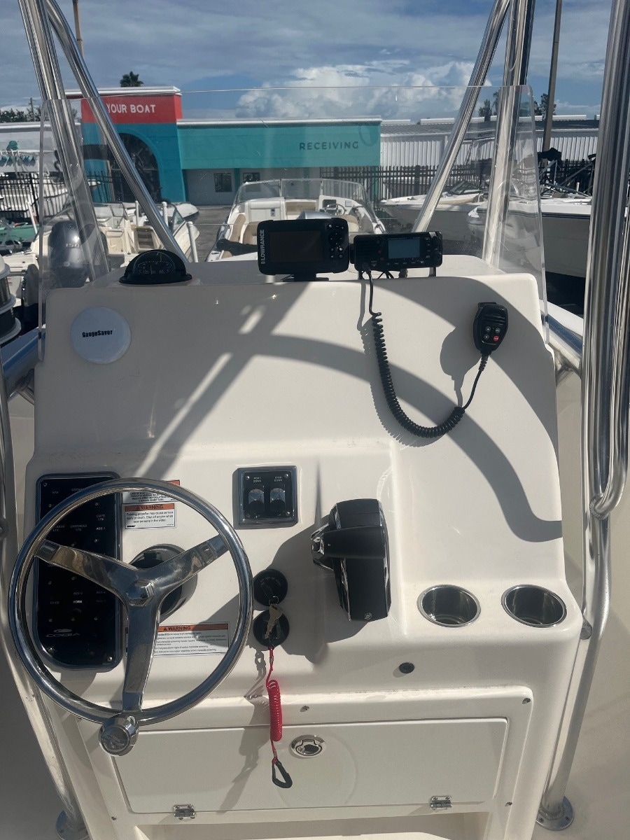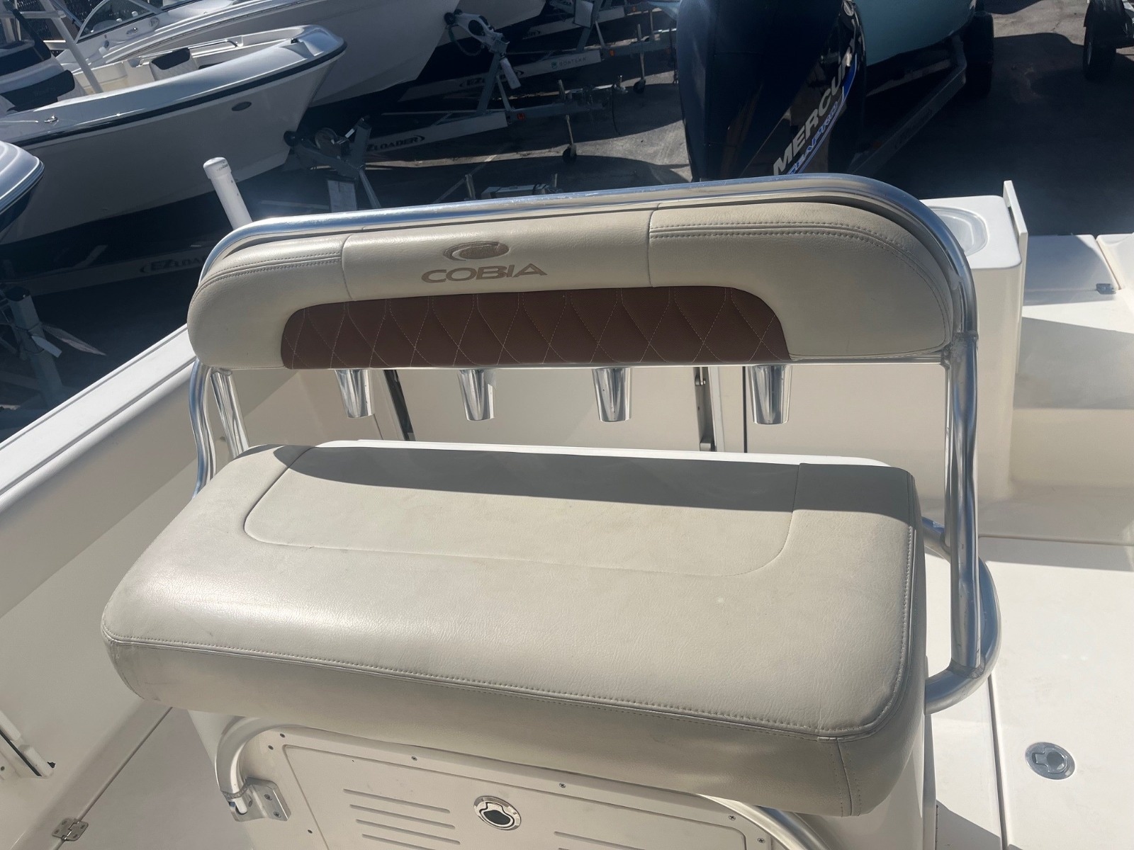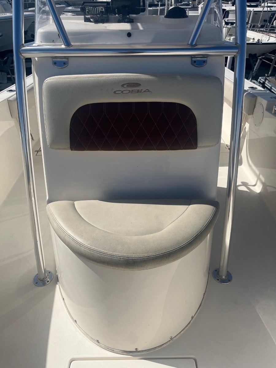 This certified pre-owned Cobia 237 CC is eligible for Boateka's limited-time financing offer! Secure this center console today with financing as low as 4.99% APR* now through August 8. Use promo code "FINANCE25" to claim at your local Boateka dealership. Tried and true, the venerable 237 CC gives you all you need in fishability and family cruising comfort. A stem to stern level deck, flush mount hardware, recessed bow rail, and hideaway aft bench seating provide a roomy and uncluttered fishing platform. Add to that standard features like an aerated 28 gallon livewell and two, in-deck 40 gallon fish boxes and this boat comes tournament ready. This boat is powered by a New 300HP Mercury Sea Pro motor with 0 hours & includes a 3 Year Warranty!