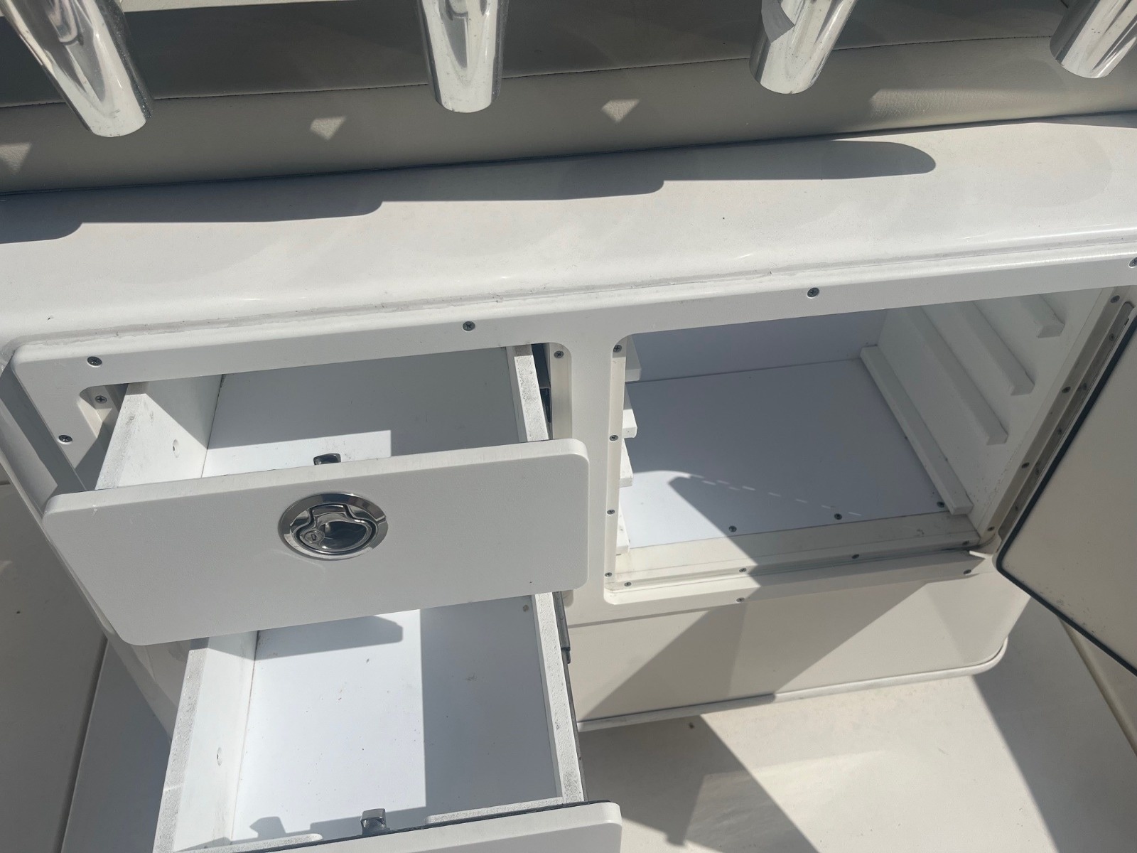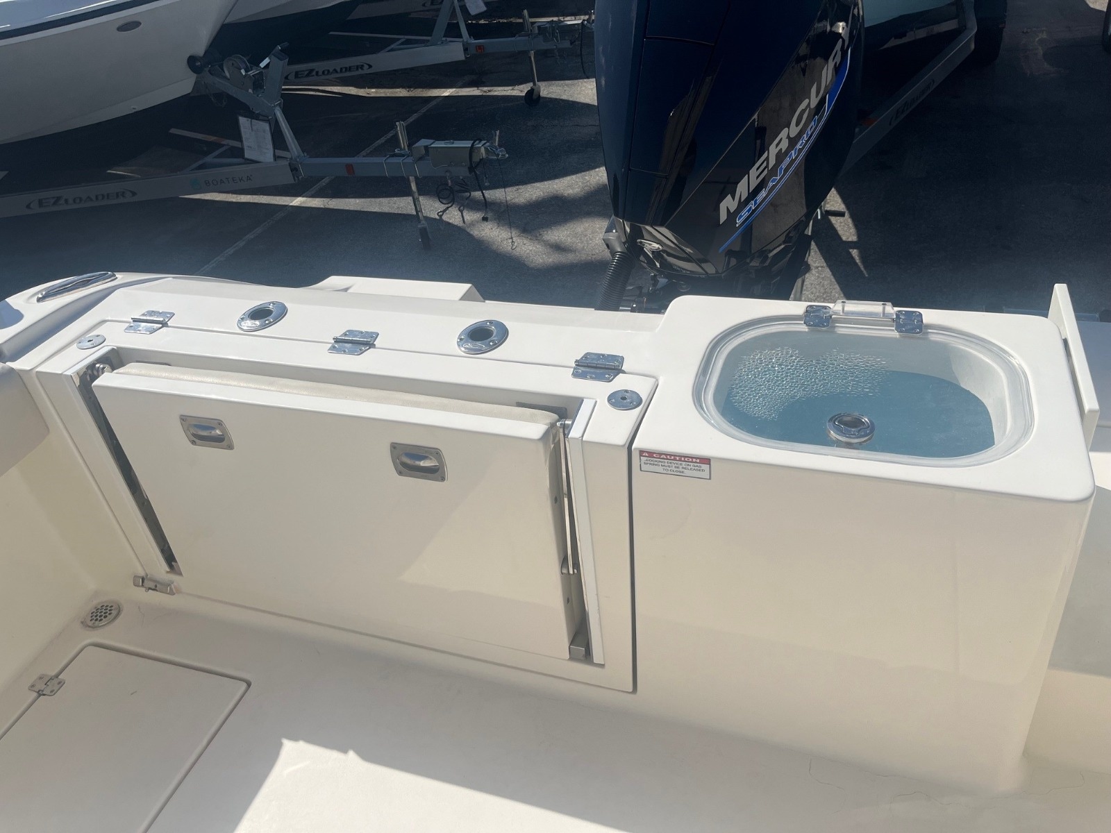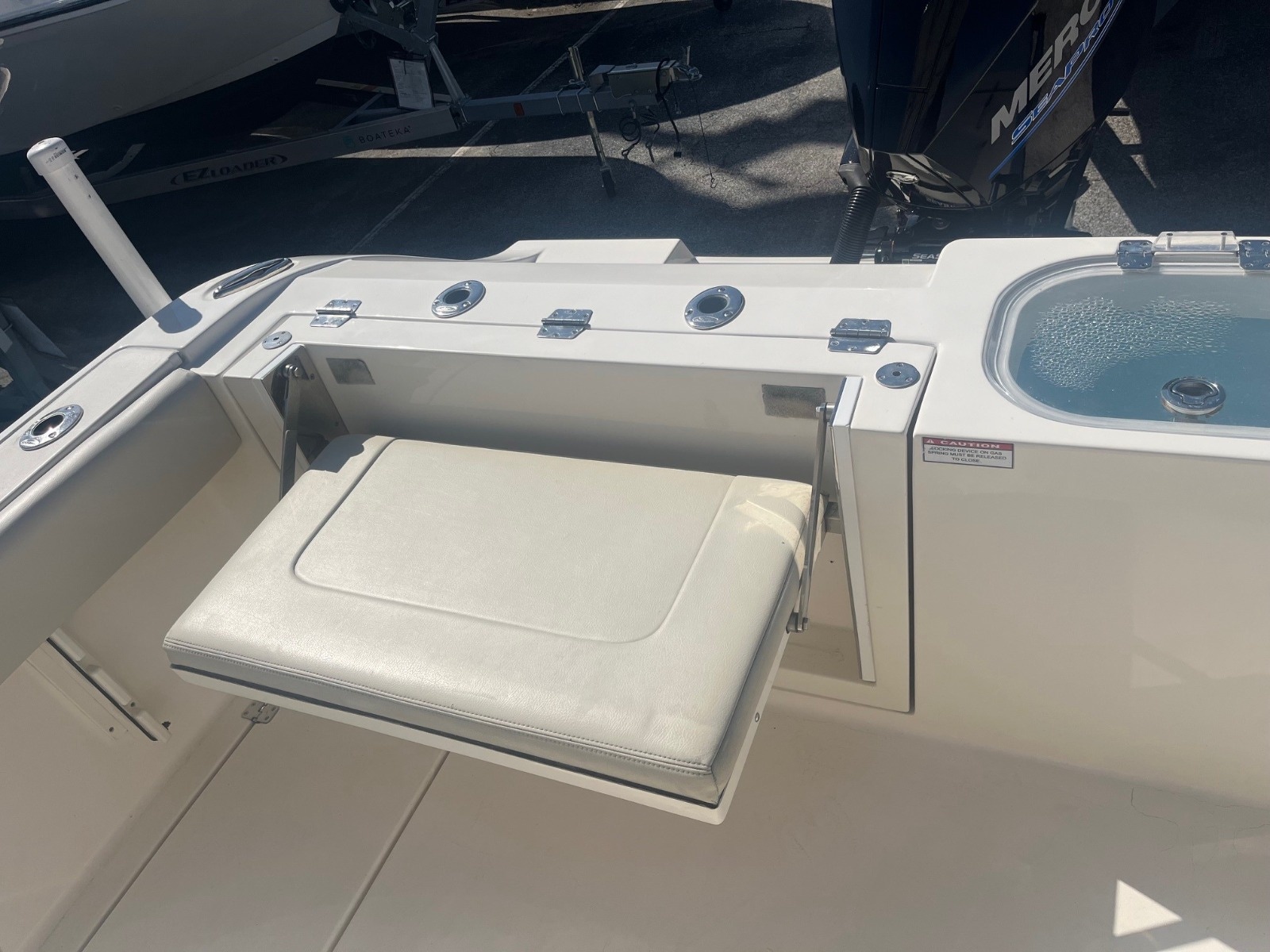 This certified pre-owned Cobia 237 CC is eligible for Boateka's limited-time financing offer! Secure this center console today with financing as low as 4.99% APR* now through August 8. Use promo code "FINANCE25" to claim at your local Boateka dealership. Tried and true, the venerable 237 CC gives you all you need in fishability and family cruising comfort. A stem to stern level deck, flush mount hardware, recessed bow rail, and hideaway aft bench seating provide a roomy and uncluttered fishing platform. Add to that standard features like an aerated 28 gallon livewell and two, in-deck 40 gallon fish boxes and this boat comes tournament ready. This boat is powered by a New 300HP Mercury Sea Pro motor with 0 hours & includes a 3 Year Warranty!