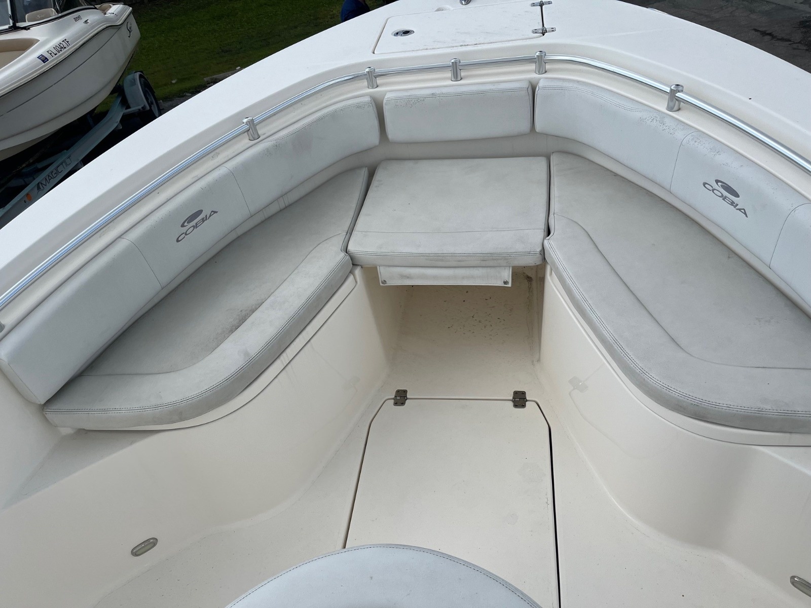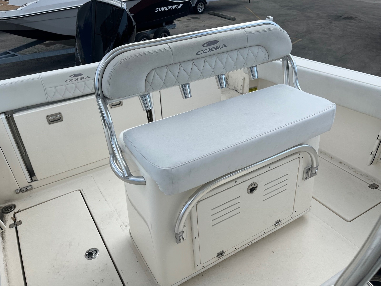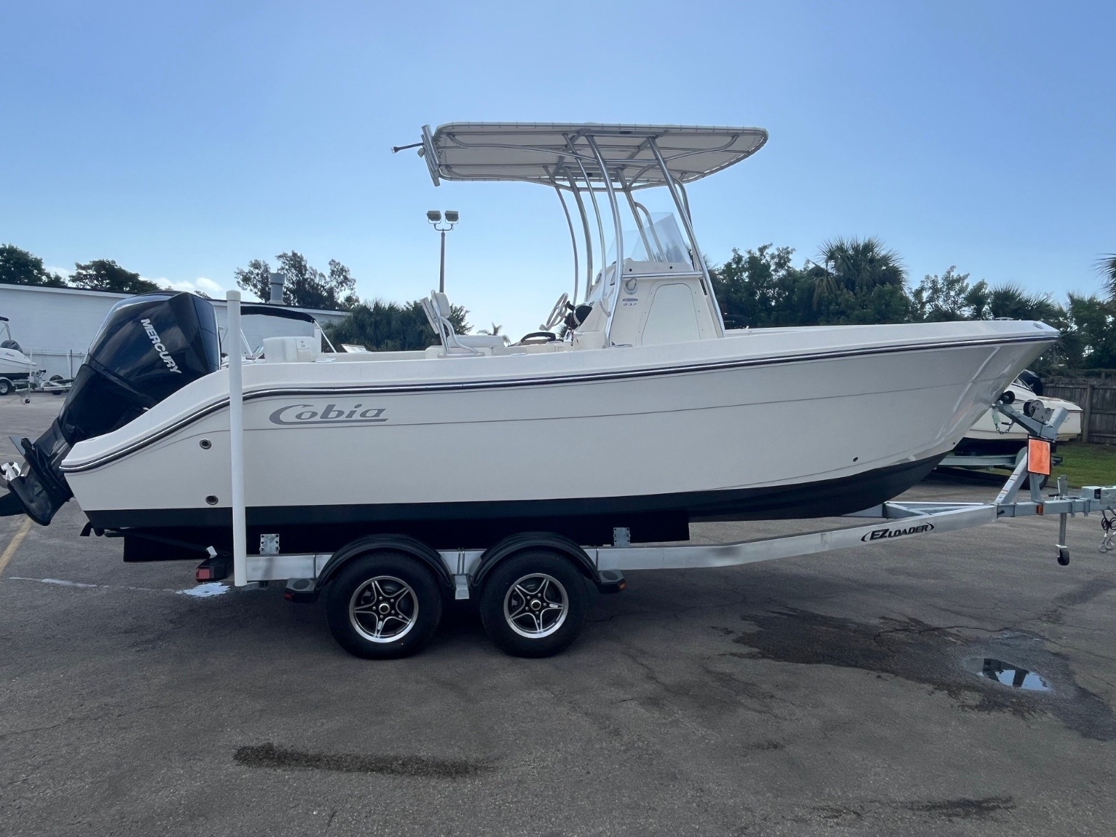 This certified pre-owned Cobia 237 CC is eligible for Boateka's limited-time financing offer! Secure this center console today with financing as low as 4.99% APR* now through August 8. Use promo code "FINANCE25" to claim at your local Boateka dealership.  Tried and true, the venerable 237 CC gives you all you need in fishability and family cruising comfort. A stem to stern level deck, flush mount hardware, recessed bow rail, and hideaway aft bench seating provide a roomy and uncluttered fishing platform. Add to that standard features like an aerated 28 gallon livewell and two, in-deck 40 gallon fish boxes and this boat comes tournament ready. The 237 CC’s smart layout makes it just as comfortable as it is fishy. Whether sandbar hopping or going for a sunset cruise, a perfect blend of seating, storage space, and cockpit room makes for a relaxing and enjoyable experience. And like all Cobias, the 237 CC is built to ABYC standards, the highest in the marine industry, so you can be confident that there’s no safer or better built boat on the water.